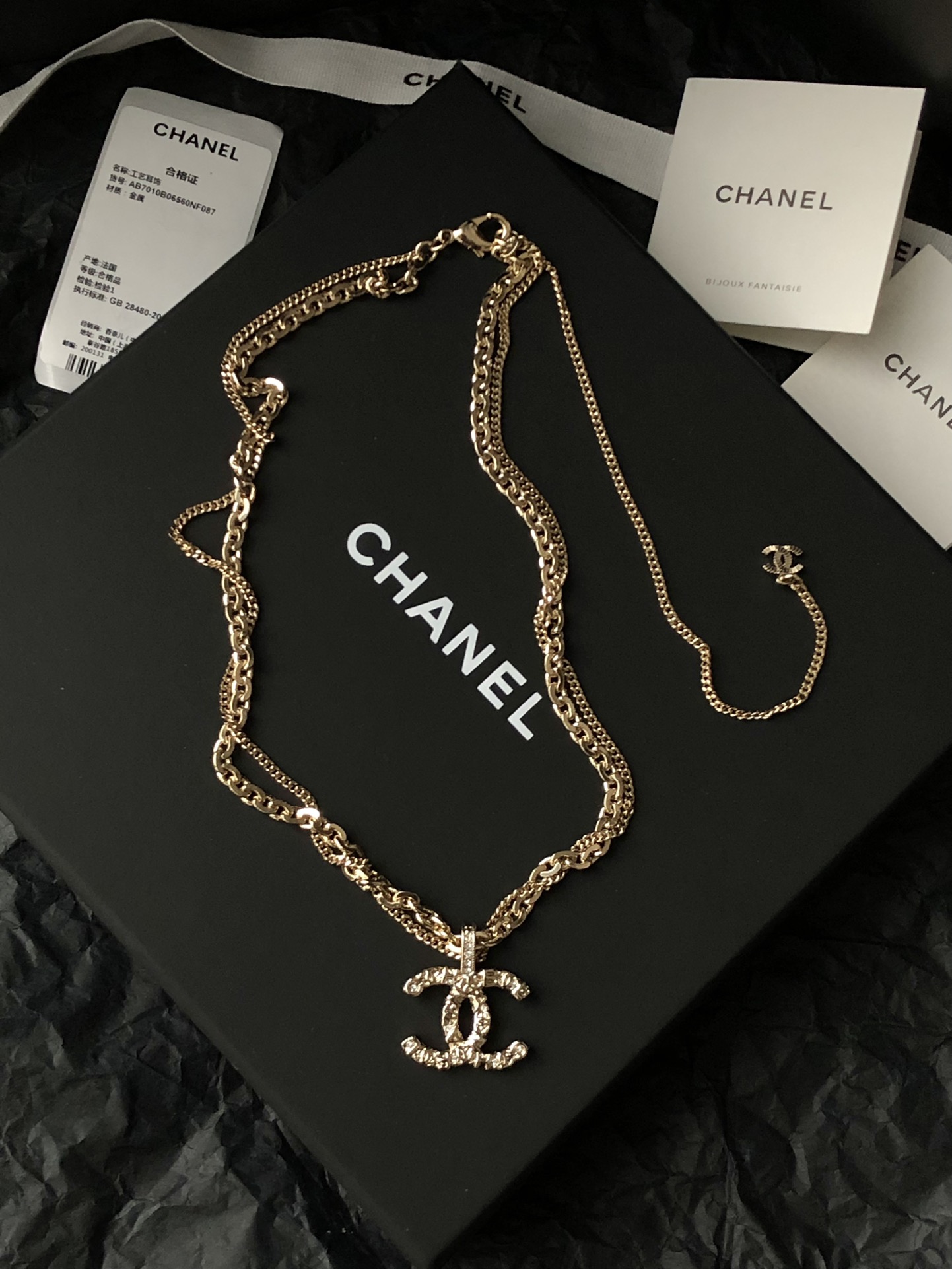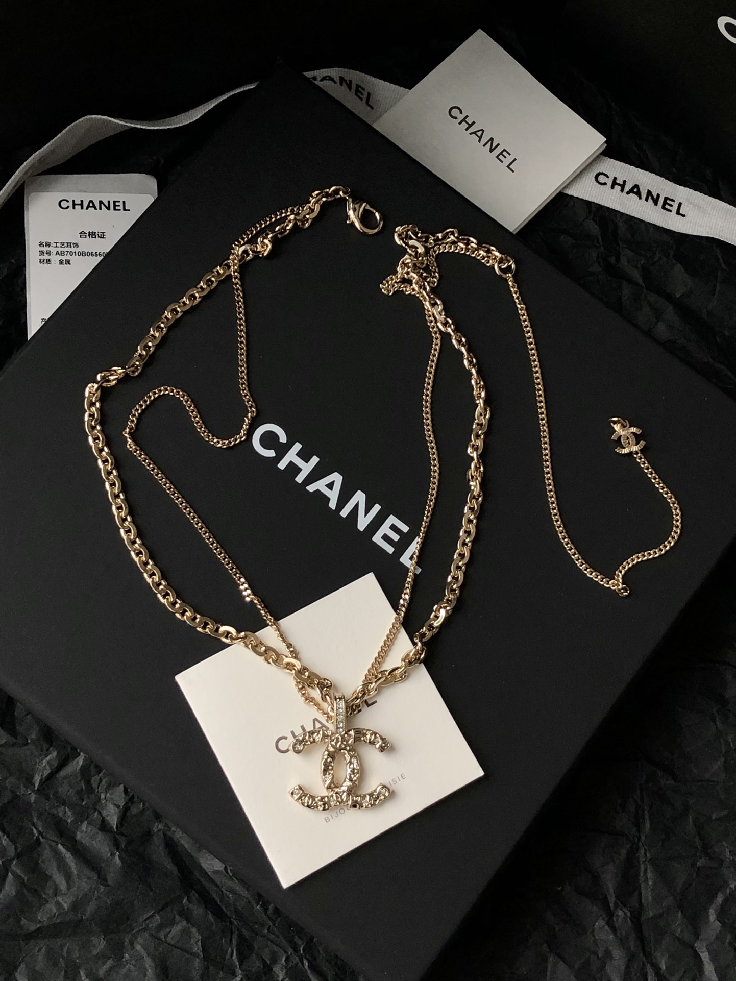 这款首饰是AAAAA 1:1 质量 (非常棒). 使用了和原版一模一样的材料. 商标部分也保持了和香奈儿/Chanel一样. 图片拍摄是实物首饰拍摄, 您所收到的实物保证和我们图片一模一样.