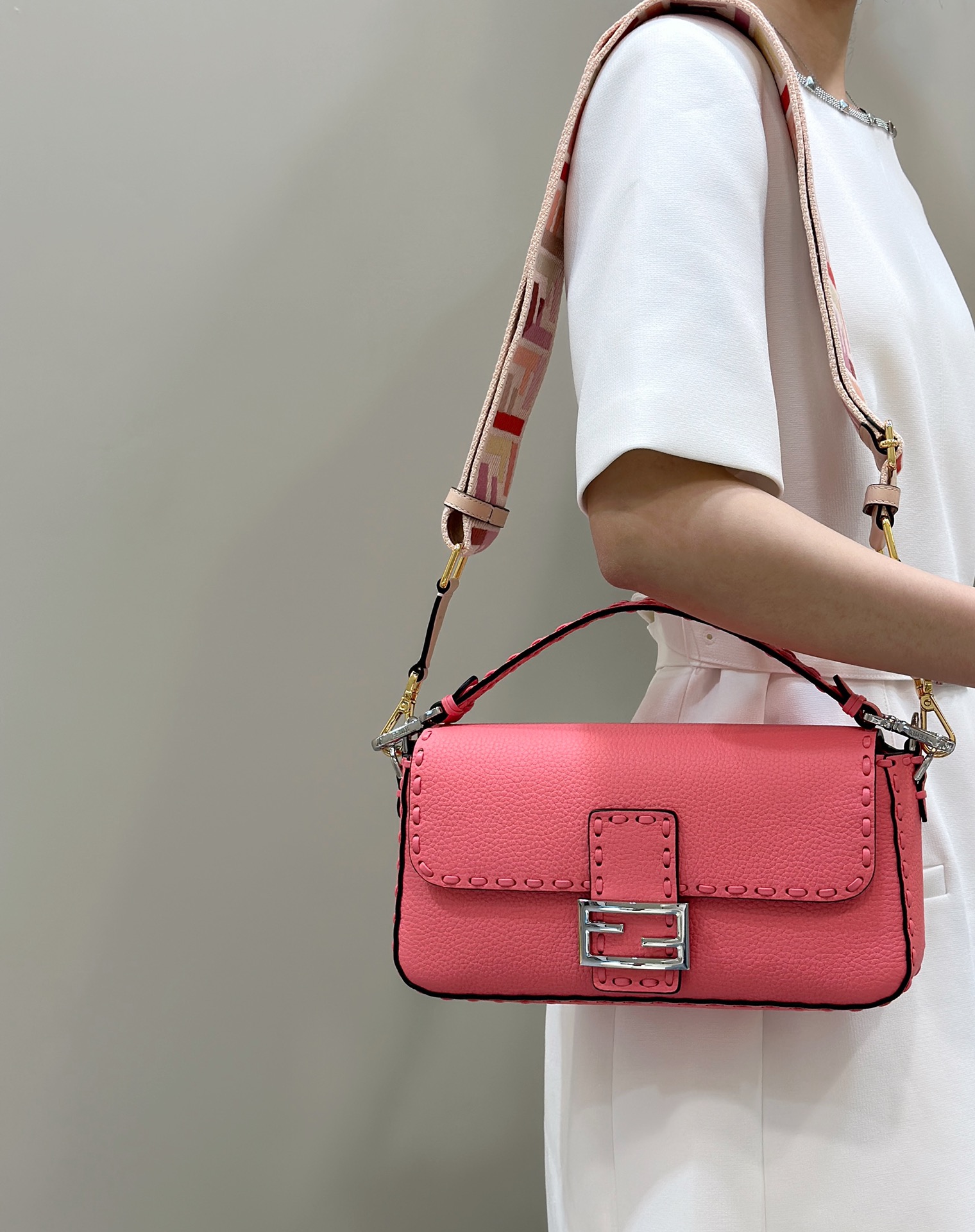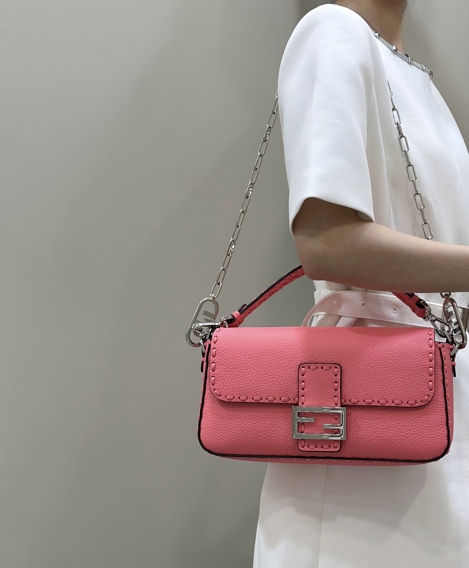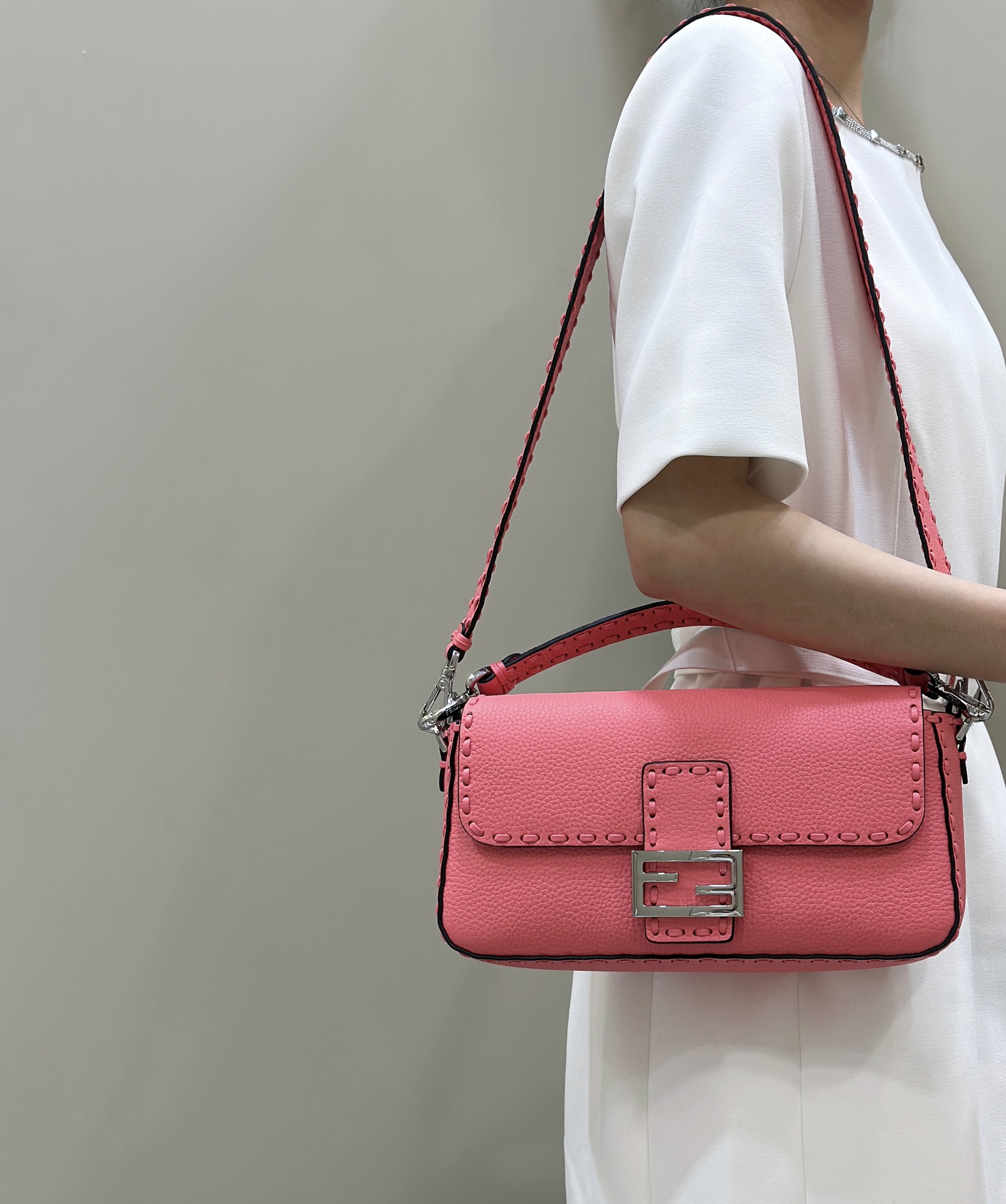 这款包包是AAAAA 1:1 质量 (非常棒). 使用了和原版一模一样的材料. 商标部分也保持了和芬迪/Fendi一样. 图片拍摄是实物包包拍摄, 您所收到的实物保证和我们图片一模一样.