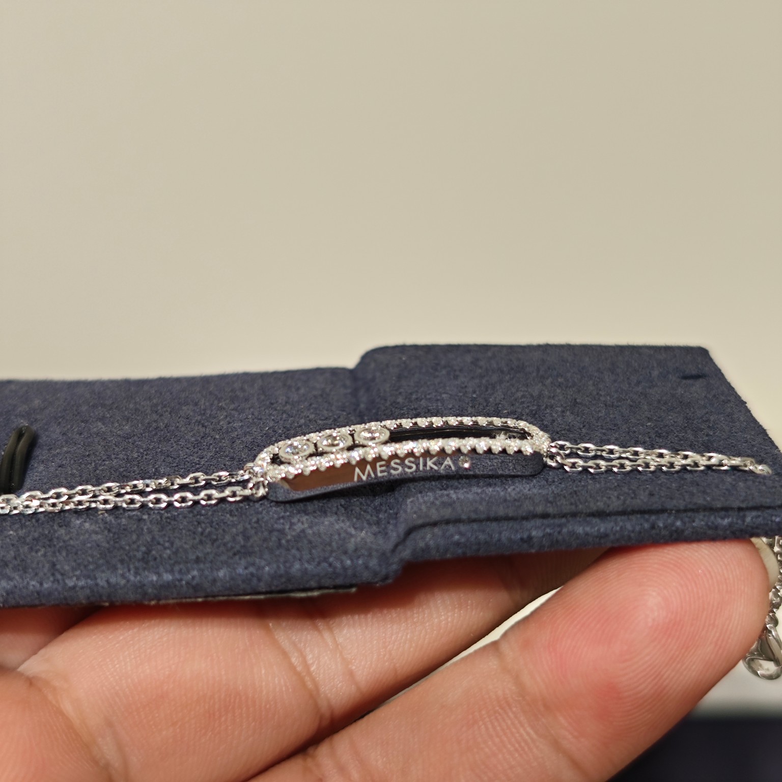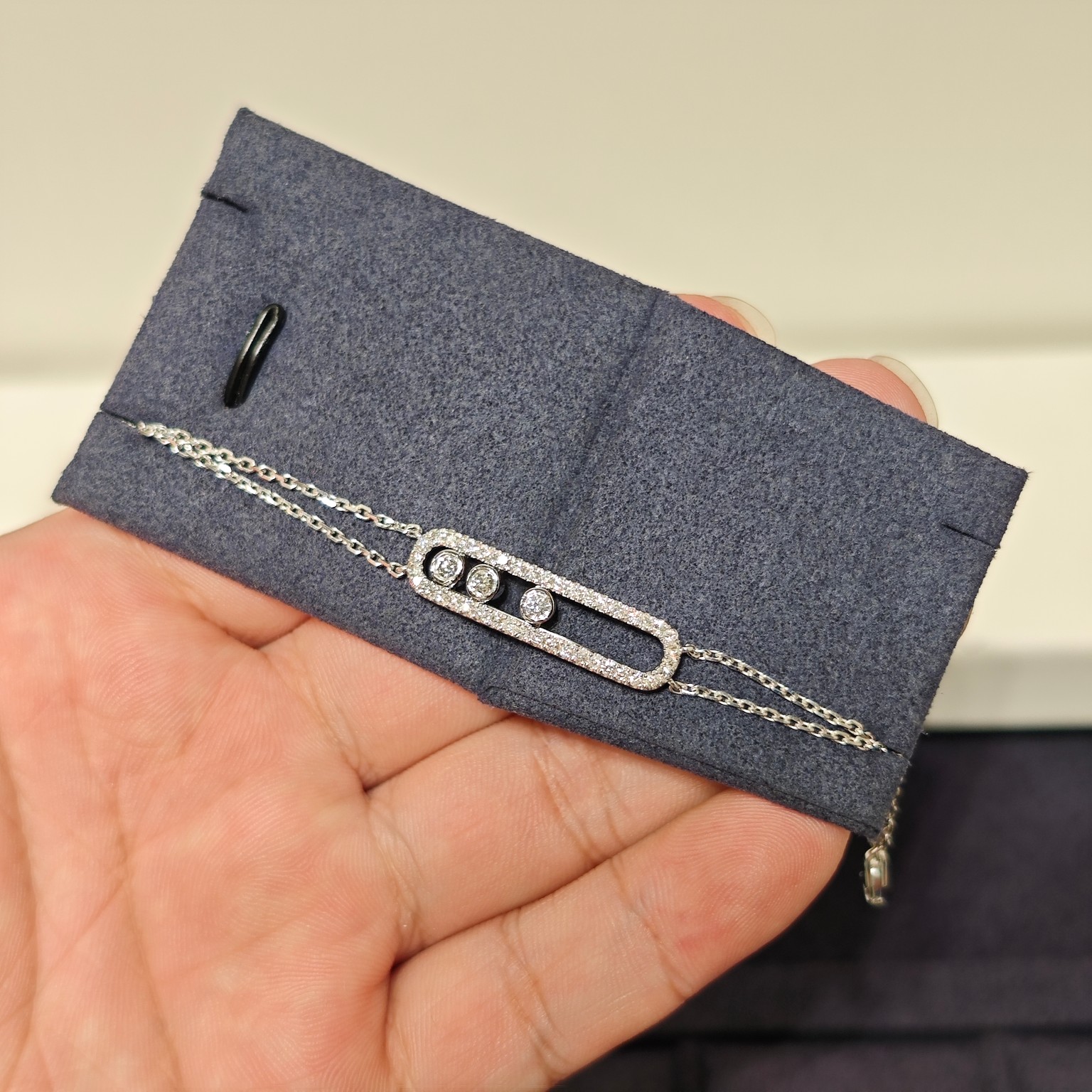 这款首饰是AAAAA 1:1 质量 (非常棒). 使用了和原版一模一样的材料. 商标部分也保持了和梅西卡/Messika一样. 图片拍摄是实物首饰拍摄, 您所收到的实物保证和我们图片一模一样.