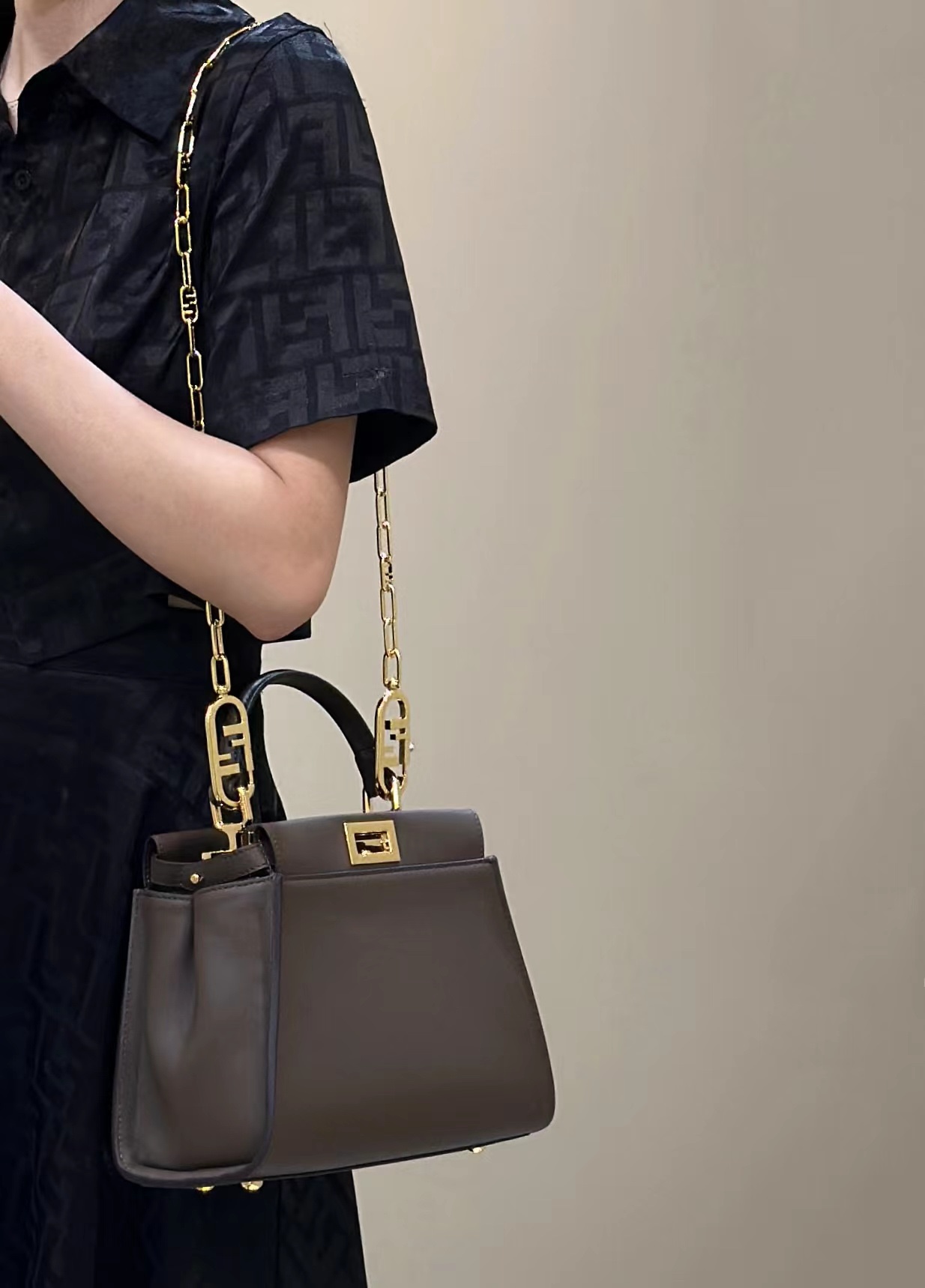这款包包是AAAAA 1:1 质量 (非常棒). 使用了和原版一模一样的材料. 商标部分也保持了和芬迪/Fendi一样. 图片拍摄是实物包包拍摄, 您所收到的实物保证和我们图片一模一样.