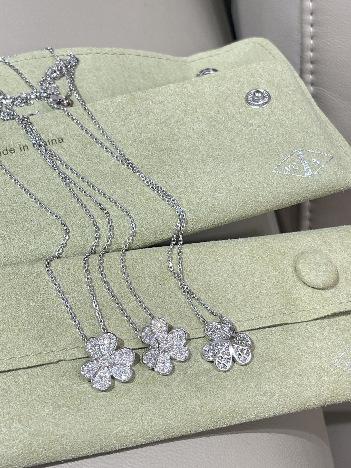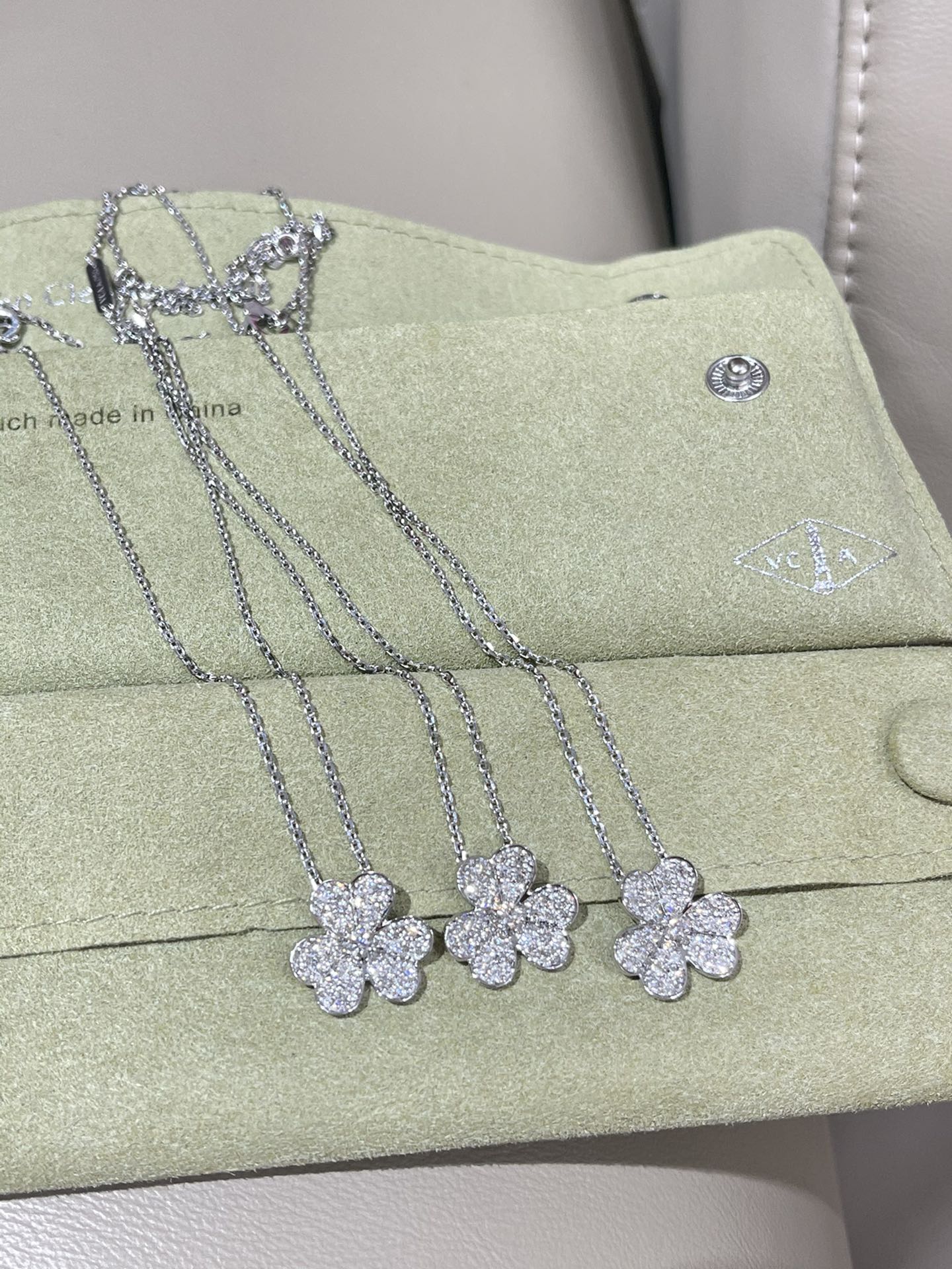 这款首饰是AAAAA 1:1 质量 (非常棒). 使用了和原版一模一样的材料. 商标部分也保持了和梵克雅宝/Van Cleef & Arpels一样. 图片拍摄是实物首饰拍摄, 您所收到的实物保证和我们图片一模一样.