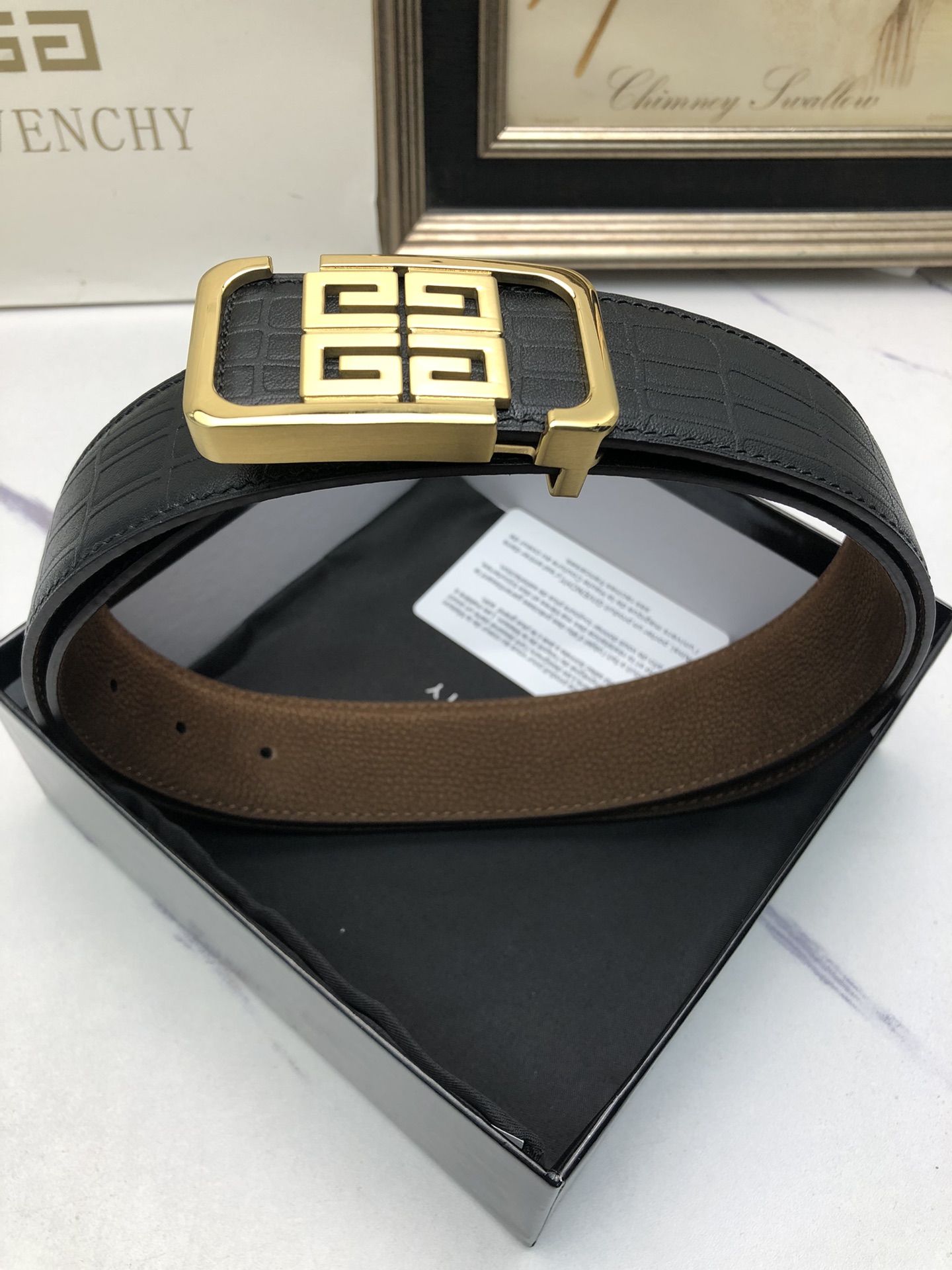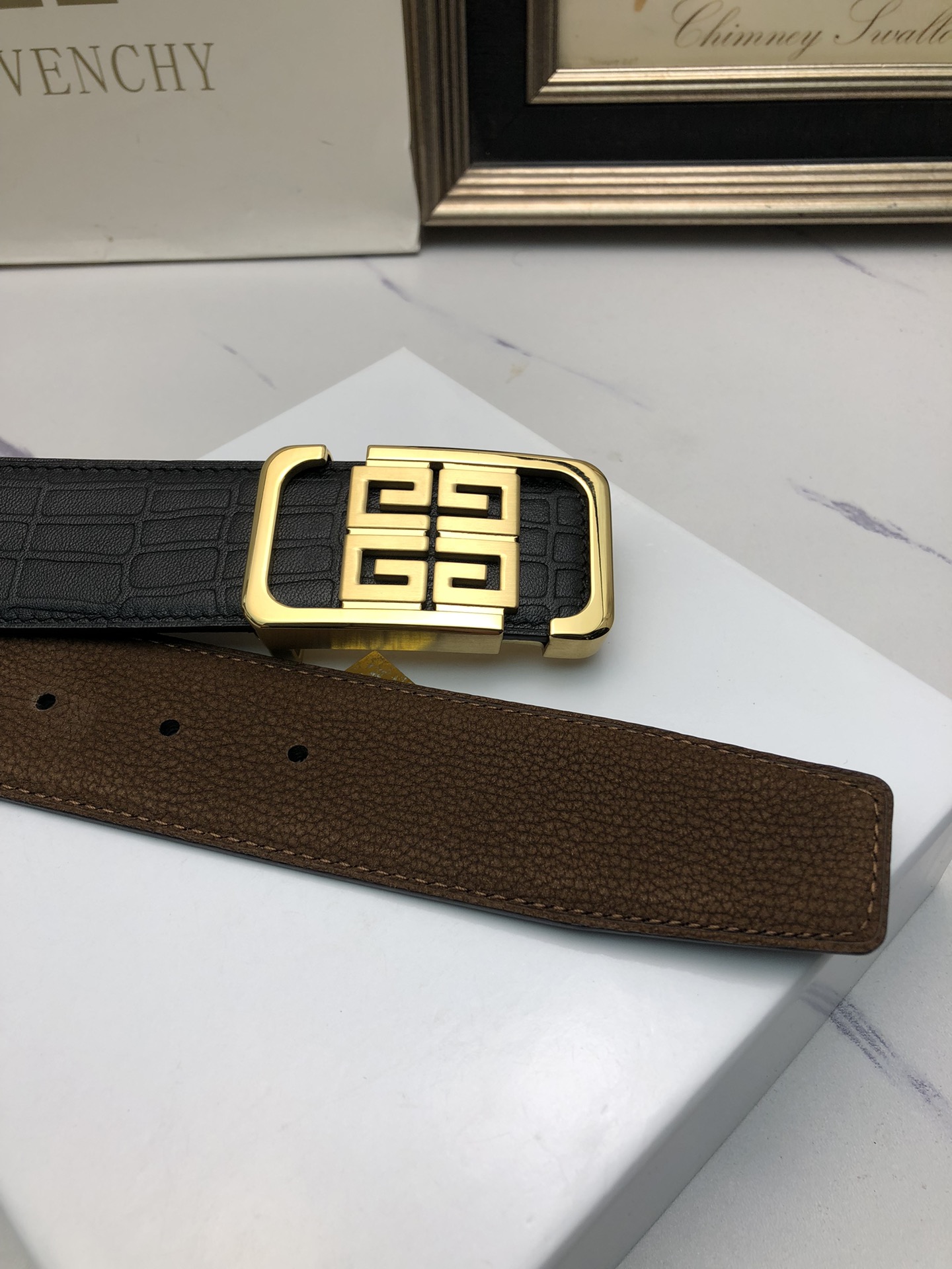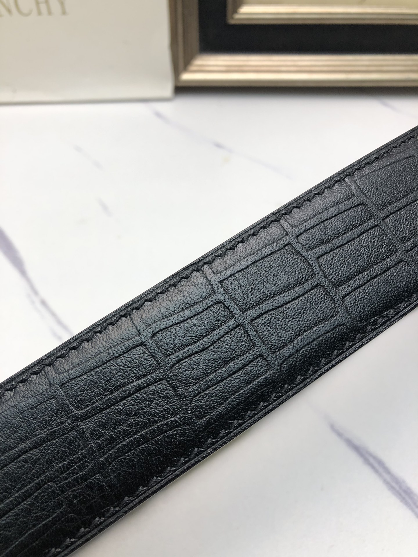 这款皮带是AAAAA 1:1 质量 (非常棒). 使用了和原版一模一样的材料. 商标部分也保持了和纪梵希/Givenchy一样. 图片拍摄是实物皮带拍摄, 您所收到的实物保证和我们图片一模一样.