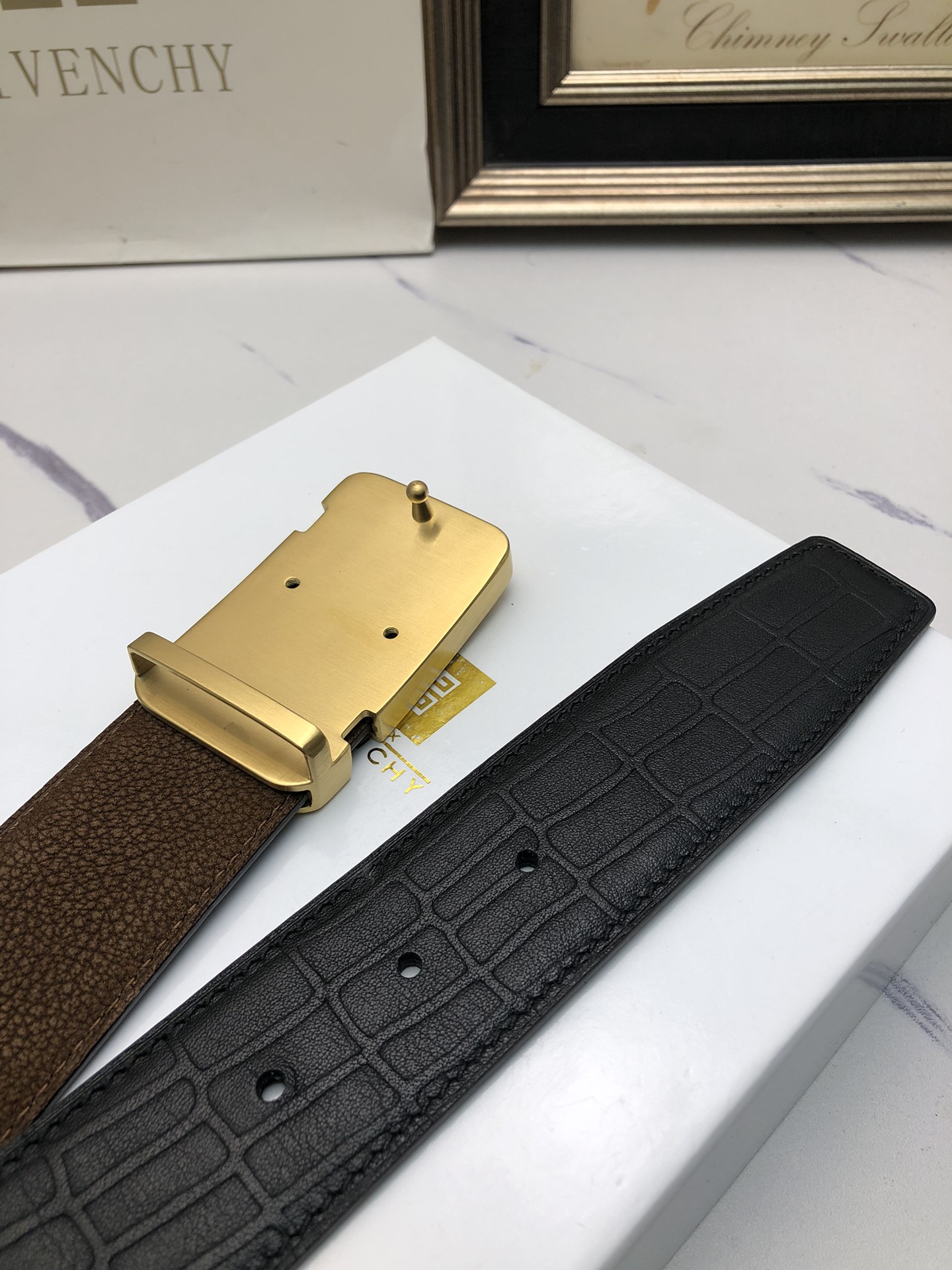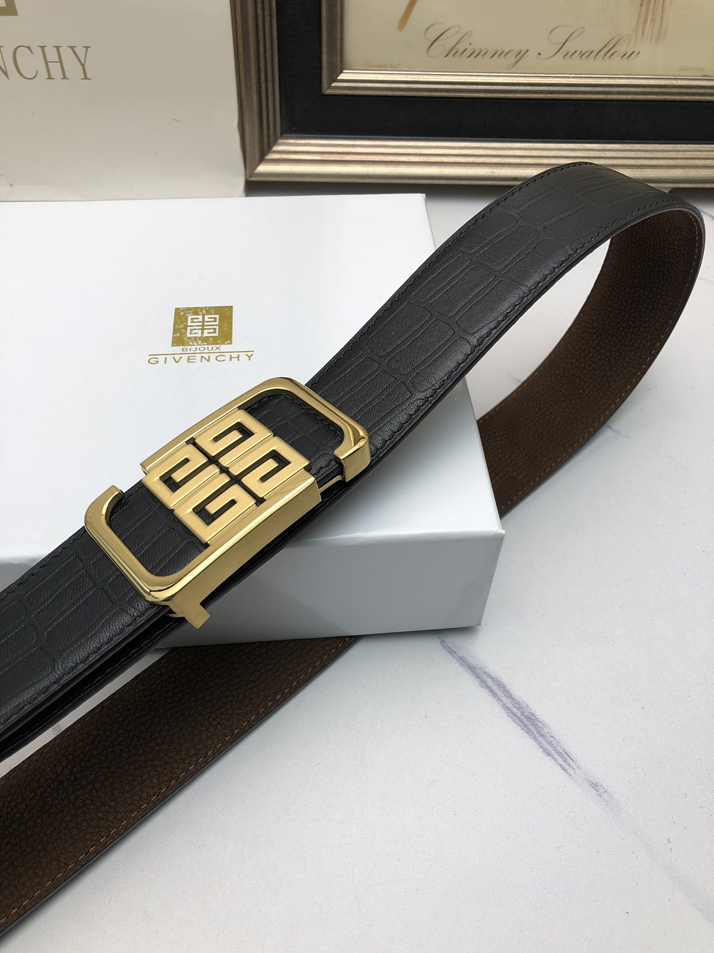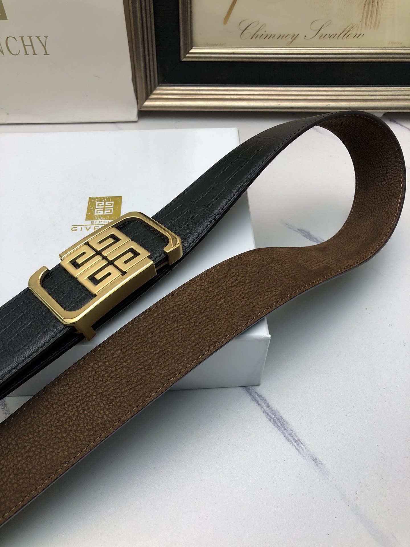 这款皮带是AAAAA 1:1 质量 (非常棒). 使用了和原版一模一样的材料. 商标部分也保持了和纪梵希/Givenchy一样. 图片拍摄是实物皮带拍摄, 您所收到的实物保证和我们图片一模一样.
