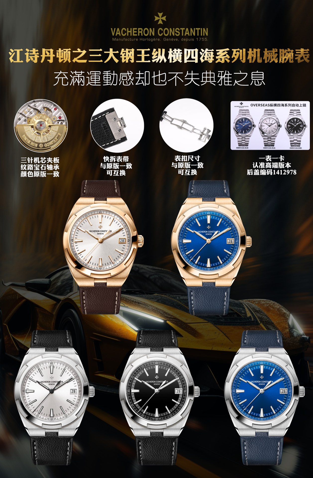 这款手表是AAAAA 1:1 质量 (非常棒). 使用了和原版一模一样的材料. 商标部分也保持了和江诗丹顿/Vacheron Constantin一样. 图片拍摄是实物手表拍摄, 您所收到的实物保证和我们图片一模一样.
