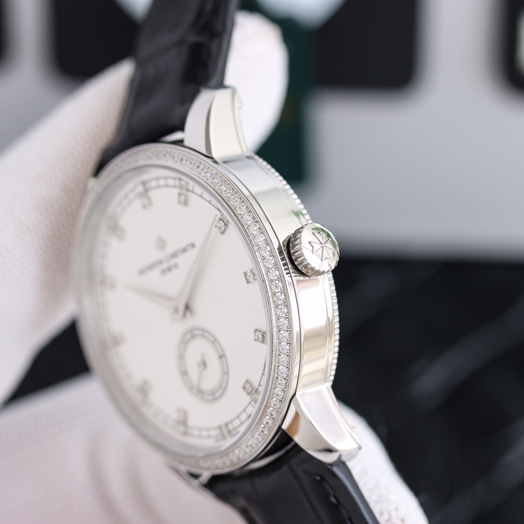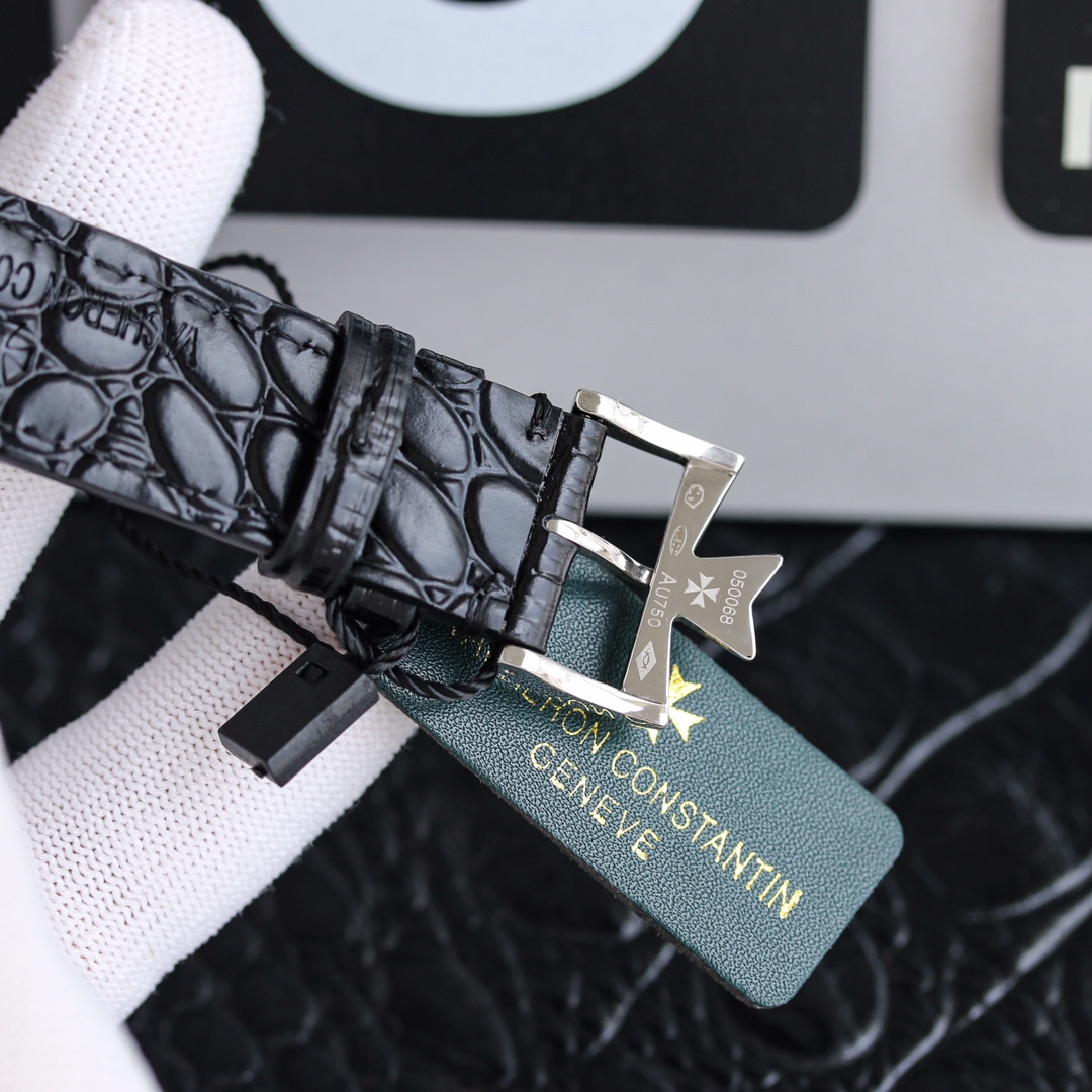 这款手表是AAAAA 1:1 质量 (非常棒). 使用了和原版一模一样的材料. 商标部分也保持了和江诗丹顿/Vacheron Constantin一样. 图片拍摄是实物手表拍摄, 您所收到的实物保证和我们图片一模一样.