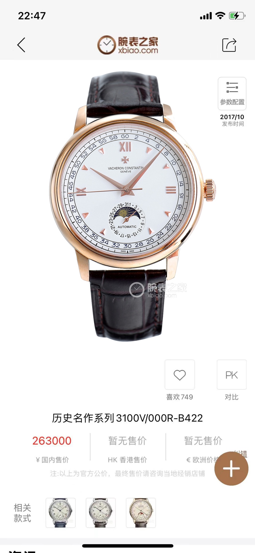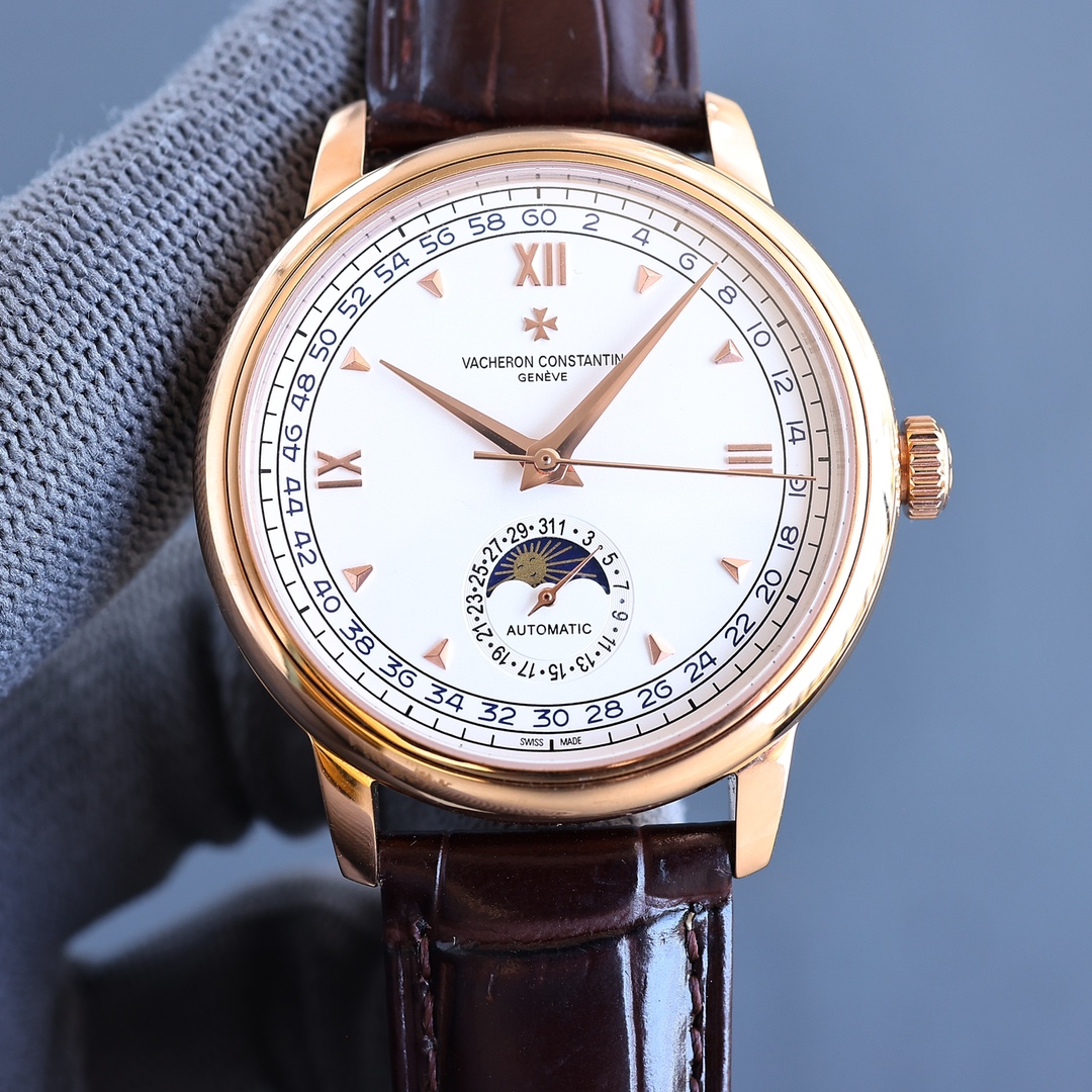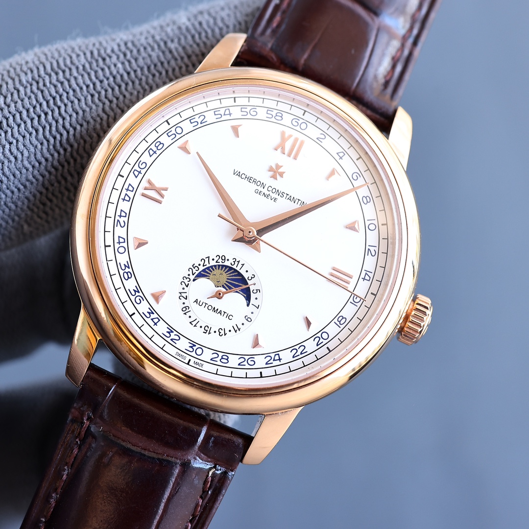这款手表是AAAAA 1:1 质量 (非常棒). 使用了和原版一模一样的材料. 商标部分也保持了和江诗丹顿/Vacheron Constantin一样. 图片拍摄是实物手表拍摄, 您所收到的实物保证和我们图片一模一样.