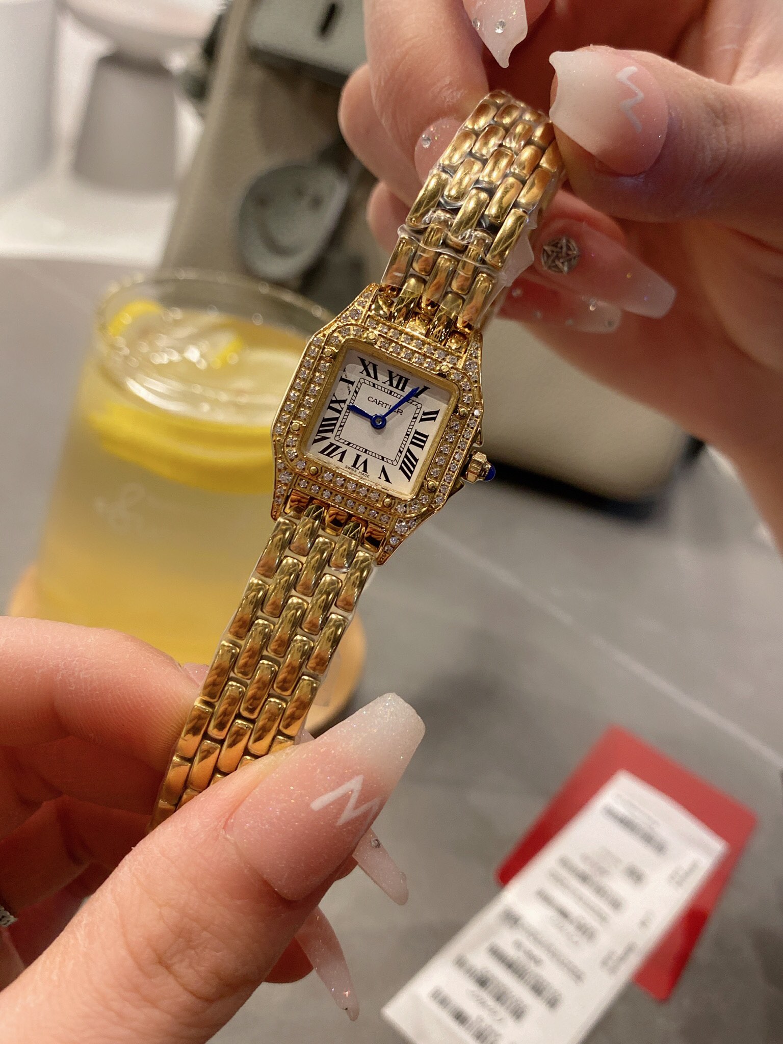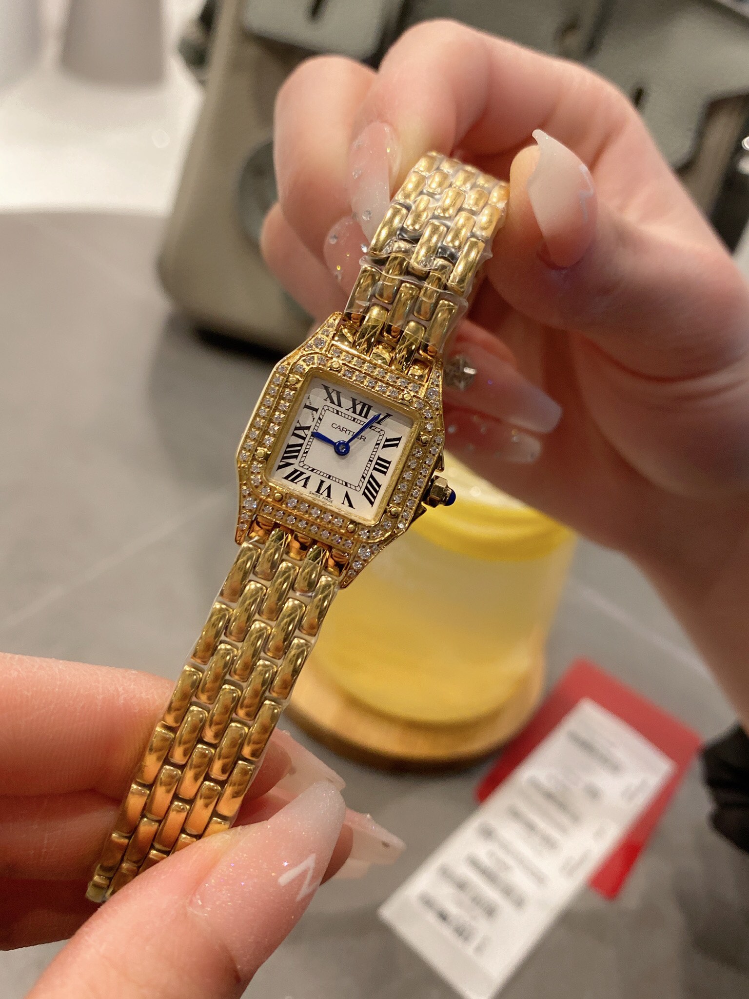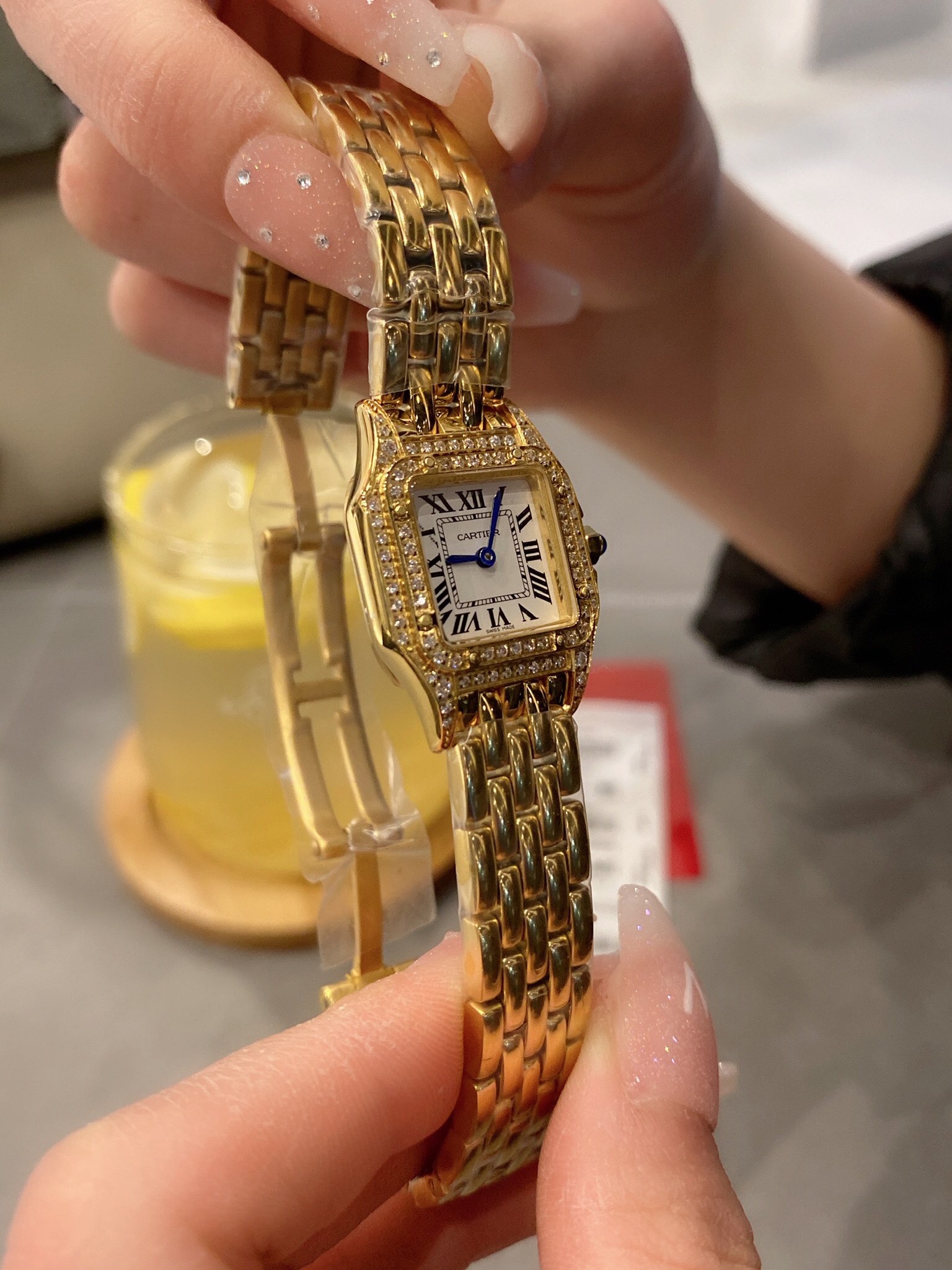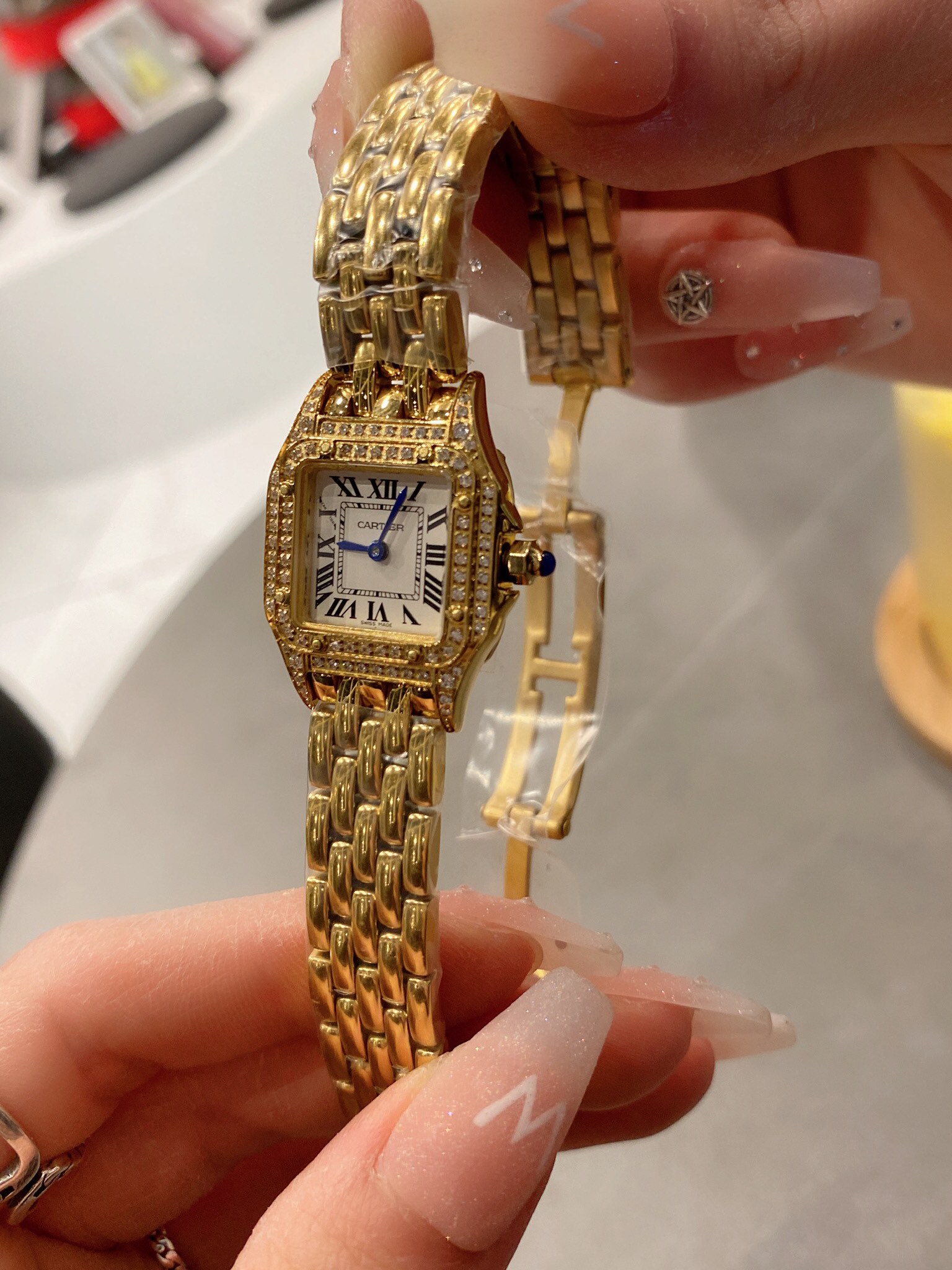 这款手表是AAAAA 1:1 质量 (非常棒). 使用了和原版一模一样的材料. 商标部分也保持了和卡地亚/Cartier一样. 图片拍摄是实物手表拍摄, 您所收到的实物保证和我们图片一模一样.