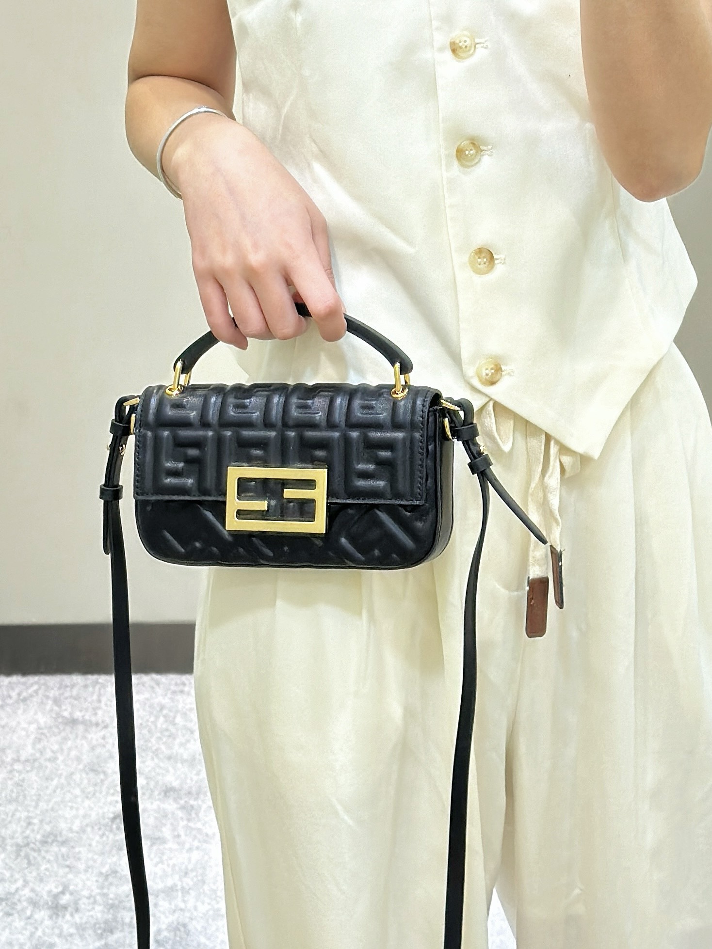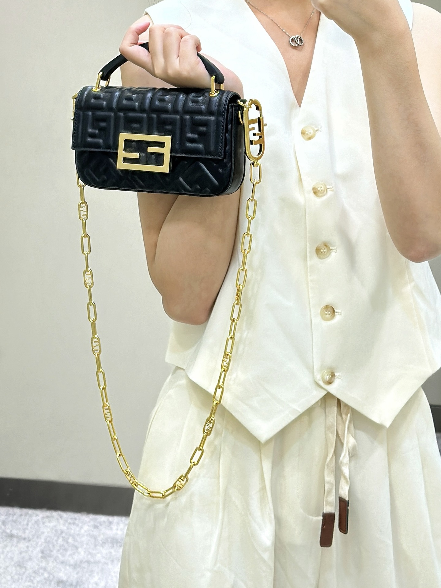 这款包包是AAAAA 1:1 质量 (非常棒). 使用了和原版一模一样的材料. 商标部分也保持了和芬迪/Fendi一样. 图片拍摄是实物包包拍摄, 您所收到的实物保证和我们图片一模一样.