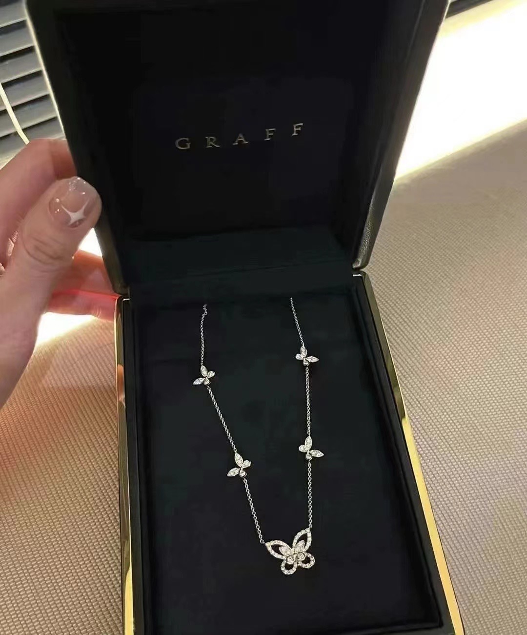 这款首饰是AAAAA 1:1 质量 (非常棒). 使用了和原版一模一样的材料. 商标部分也保持了和GRAFF一样. 图片拍摄是实物首饰拍摄, 您所收到的实物保证和我们图片一模一样.