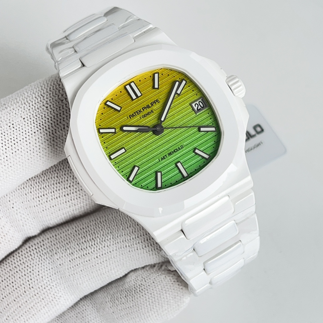这款手表是AAAAA 1:1 质量 (非常棒). 使用了和原版一模一样的材料. 商标部分也保持了和百达翡丽/Patek Philippe一样. 图片拍摄是实物手表拍摄, 您所收到的实物保证和我们图片一模一样.