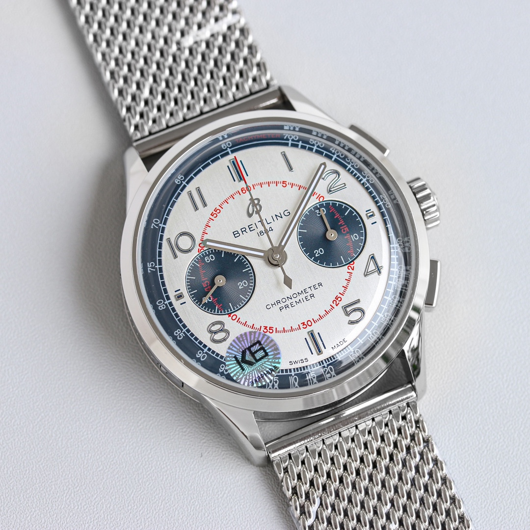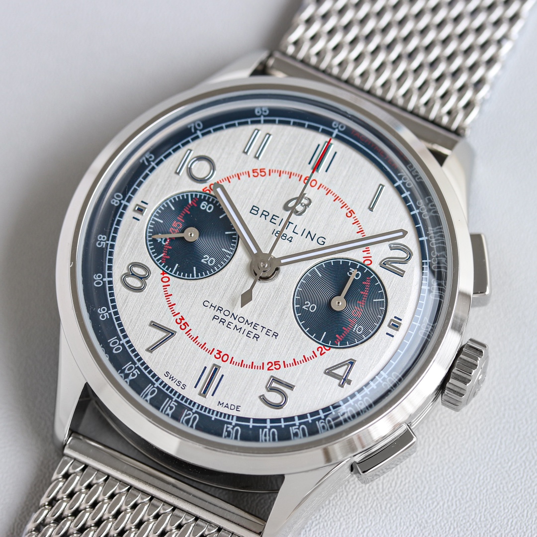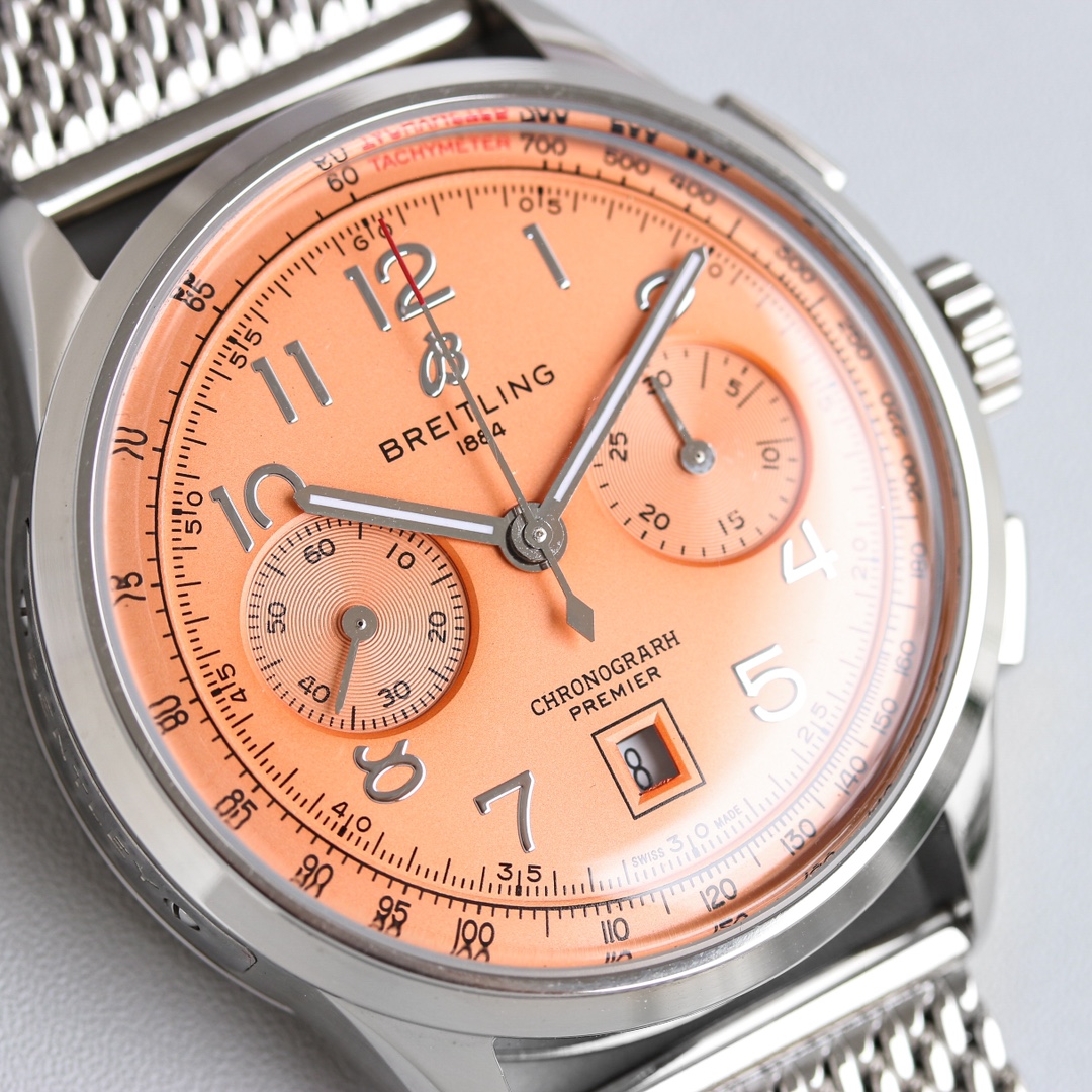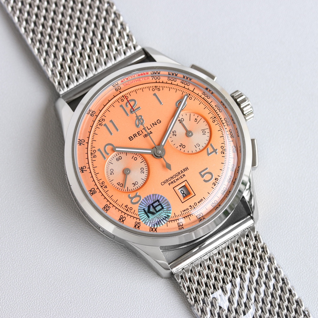 这款手表是AAAAA 1:1 质量 (非常棒). 使用了和原版一模一样的材料. 商标部分也保持了和Breitling一样. 图片拍摄是实物手表拍摄, 您所收到的实物保证和我们图片一模一样.