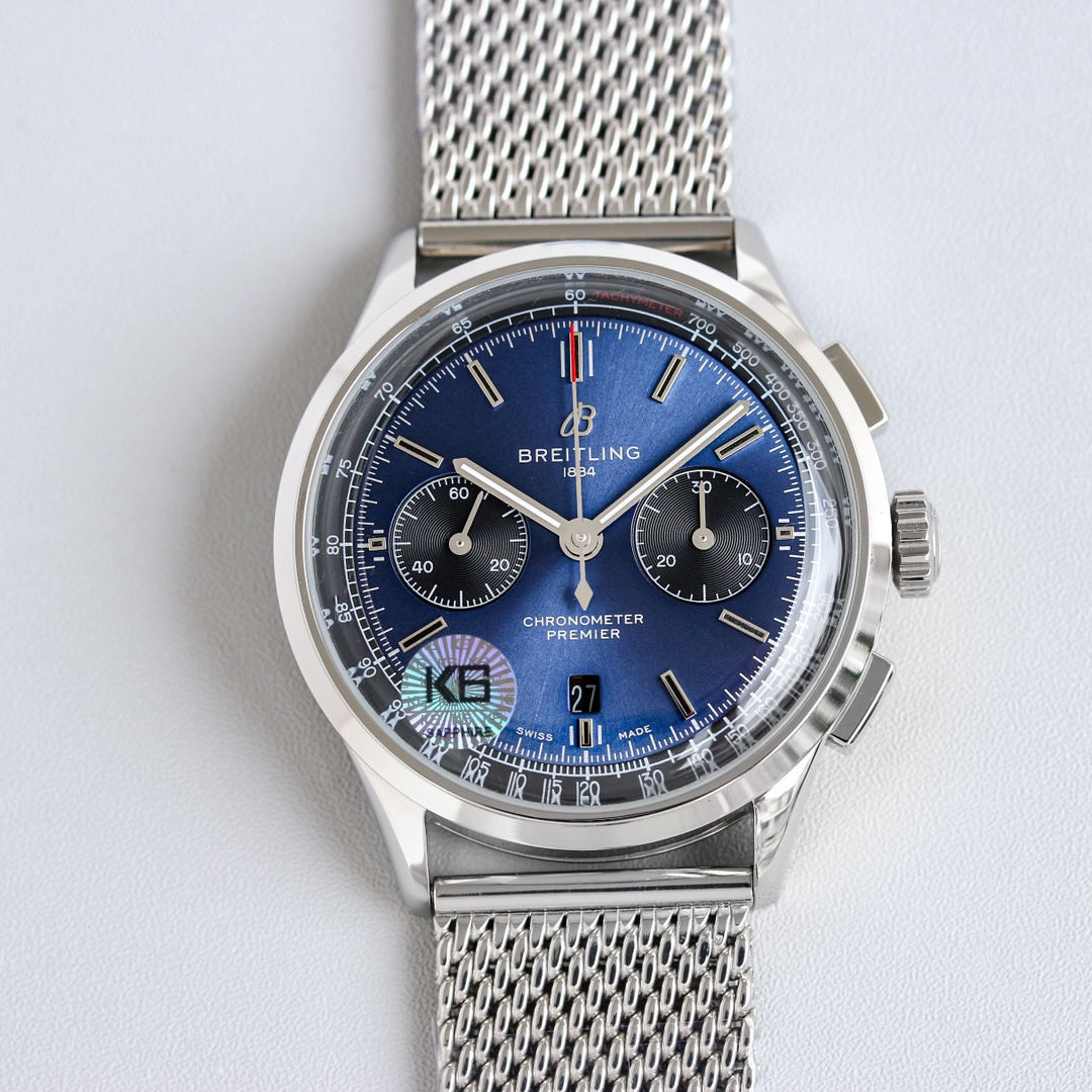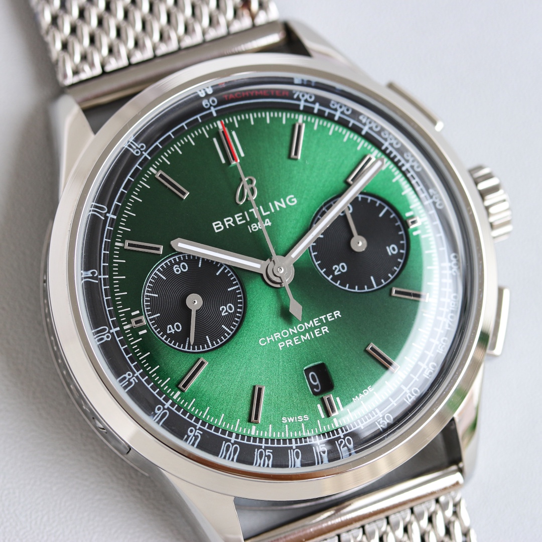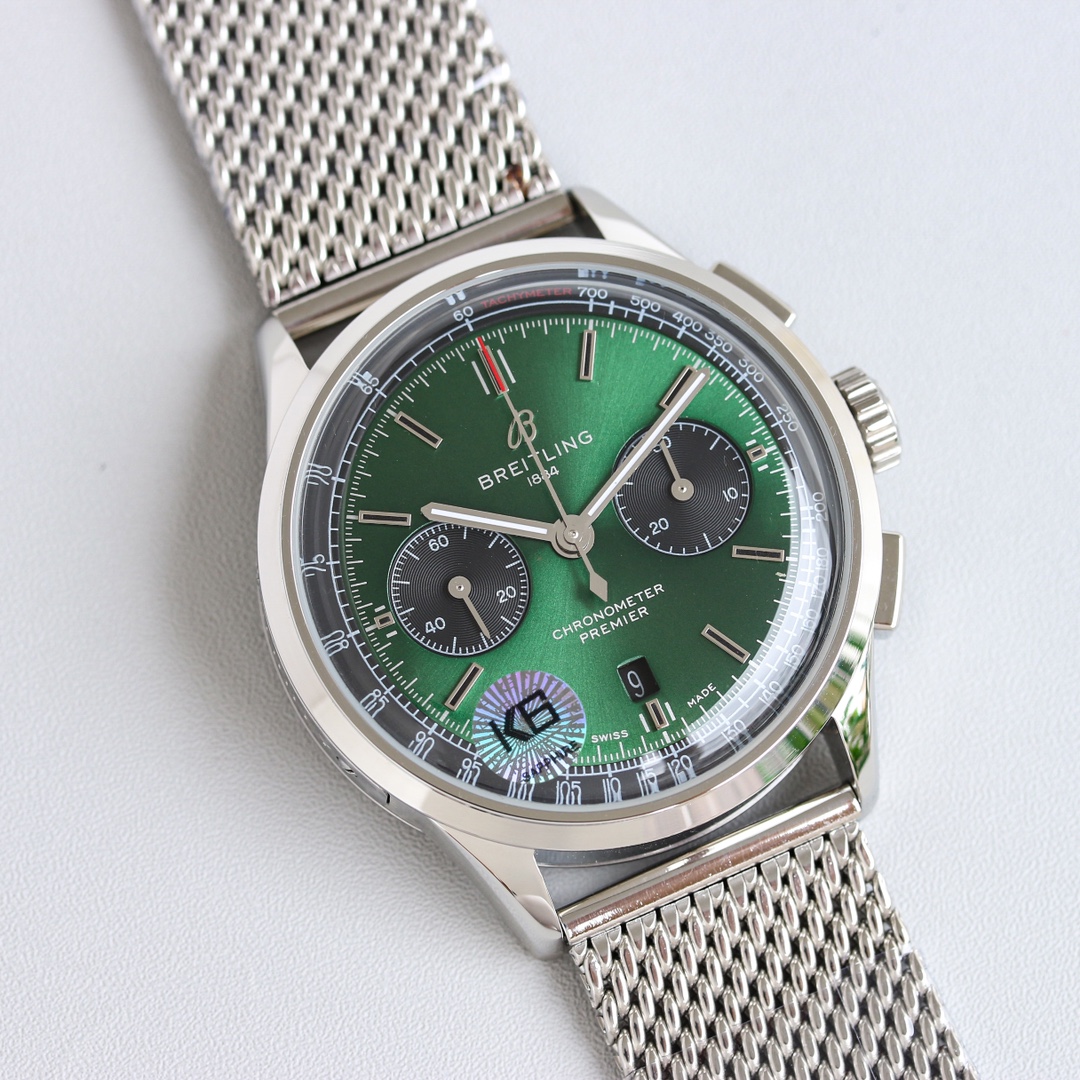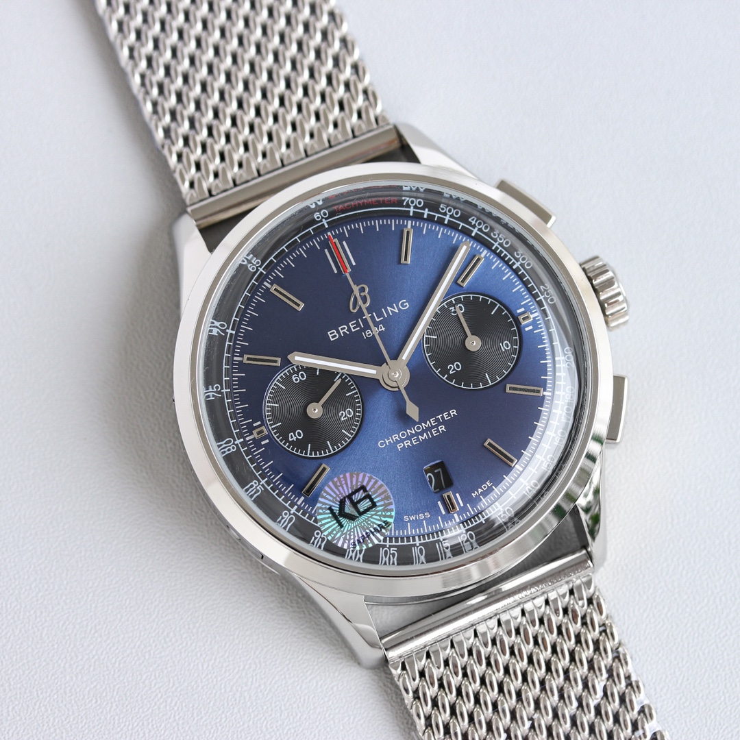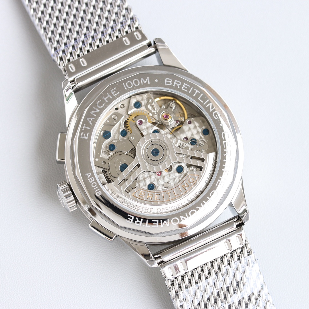 这款手表是AAAAA 1:1 质量 (非常棒). 使用了和原版一模一样的材料. 商标部分也保持了和Breitling一样. 图片拍摄是实物手表拍摄, 您所收到的实物保证和我们图片一模一样.