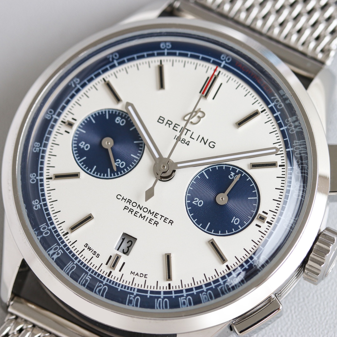 这款手表是AAAAA 1:1 质量 (非常棒). 使用了和原版一模一样的材料. 商标部分也保持了和Breitling一样. 图片拍摄是实物手表拍摄, 您所收到的实物保证和我们图片一模一样.