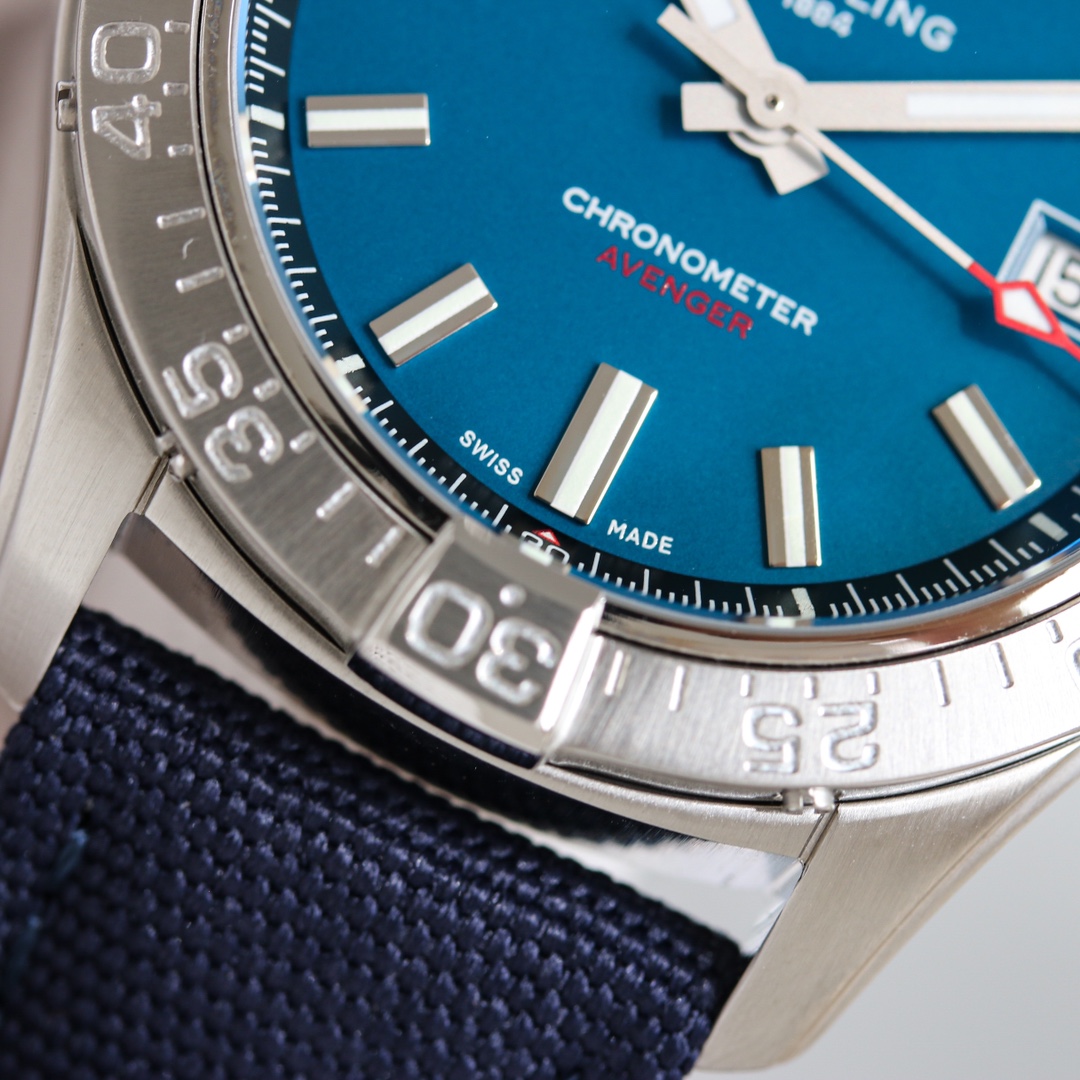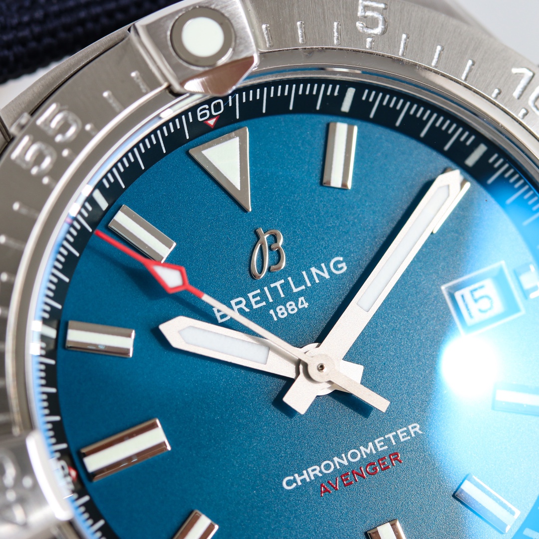这款手表是AAAAA 1:1 质量 (非常棒). 使用了和原版一模一样的材料. 商标部分也保持了和Breitling一样. 图片拍摄是实物手表拍摄, 您所收到的实物保证和我们图片一模一样.