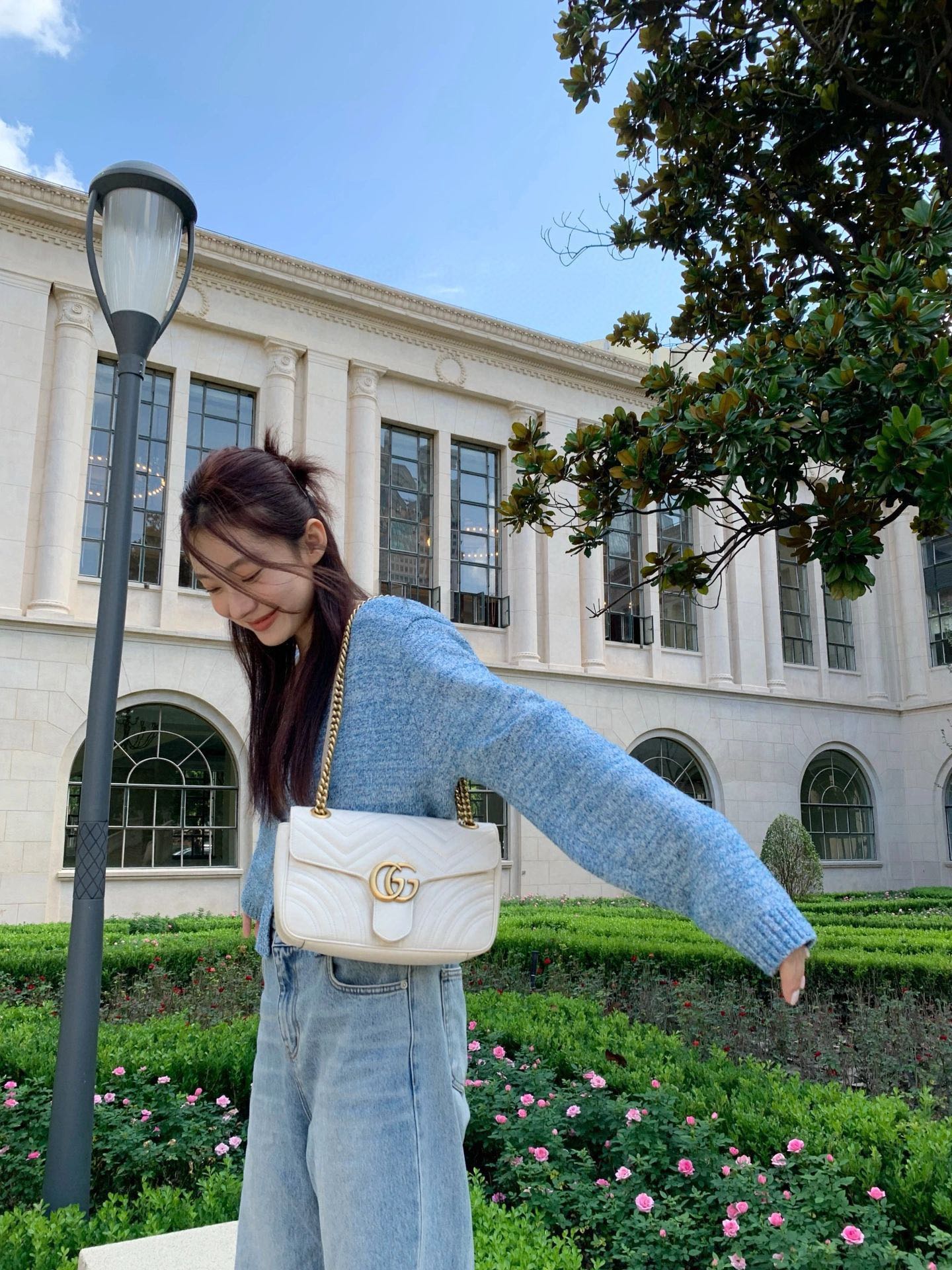 这款包包是AAAAA 1:1 质量 (非常棒). 使用了和原版一模一样的材料. 商标部分也保持了和古奇/Gucci一样. 图片拍摄是实物包包拍摄, 您所收到的实物保证和我们图片一模一样.