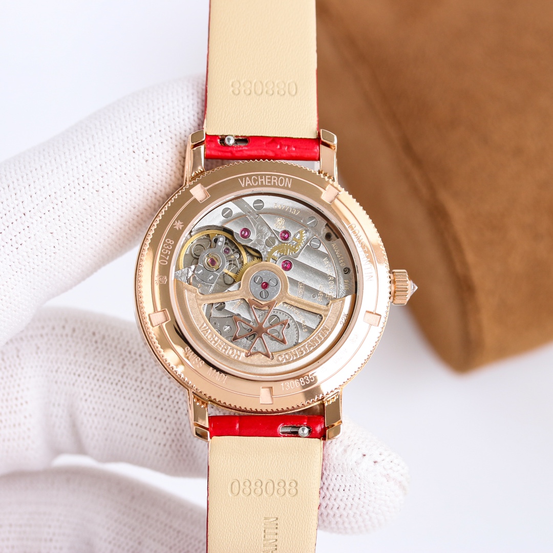 这款手表是AAAAA 1:1 质量 (非常棒). 使用了和原版一模一样的材料. 商标部分也保持了和江诗丹顿/Vacheron Constantin一样. 图片拍摄是实物手表拍摄, 您所收到的实物保证和我们图片一模一样.