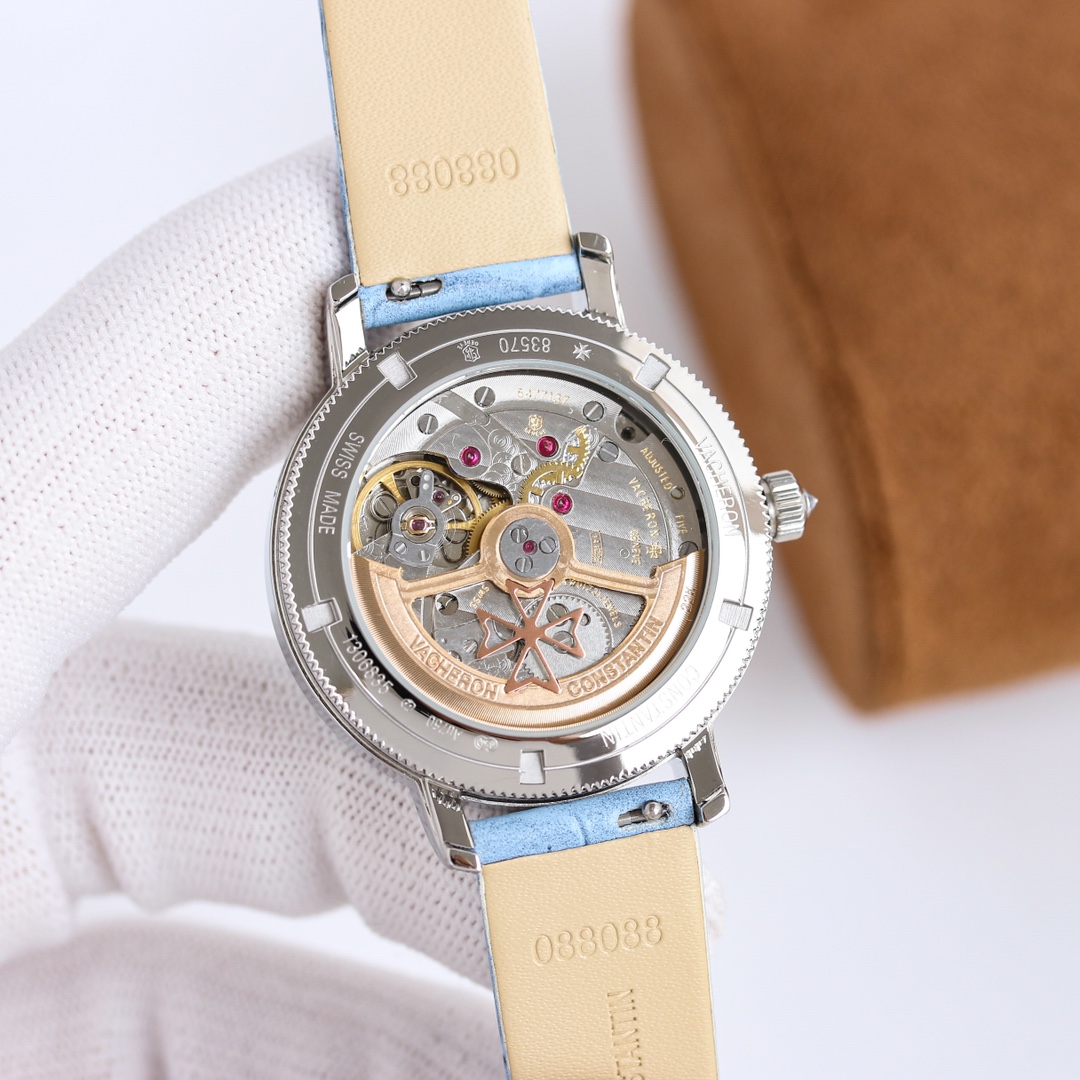 这款手表是AAAAA 1:1 质量 (非常棒). 使用了和原版一模一样的材料. 商标部分也保持了和江诗丹顿/Vacheron Constantin一样. 图片拍摄是实物手表拍摄, 您所收到的实物保证和我们图片一模一样.