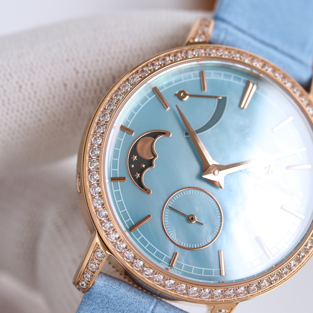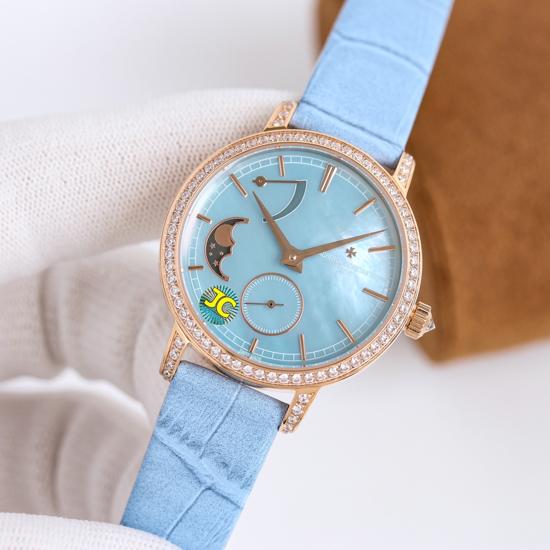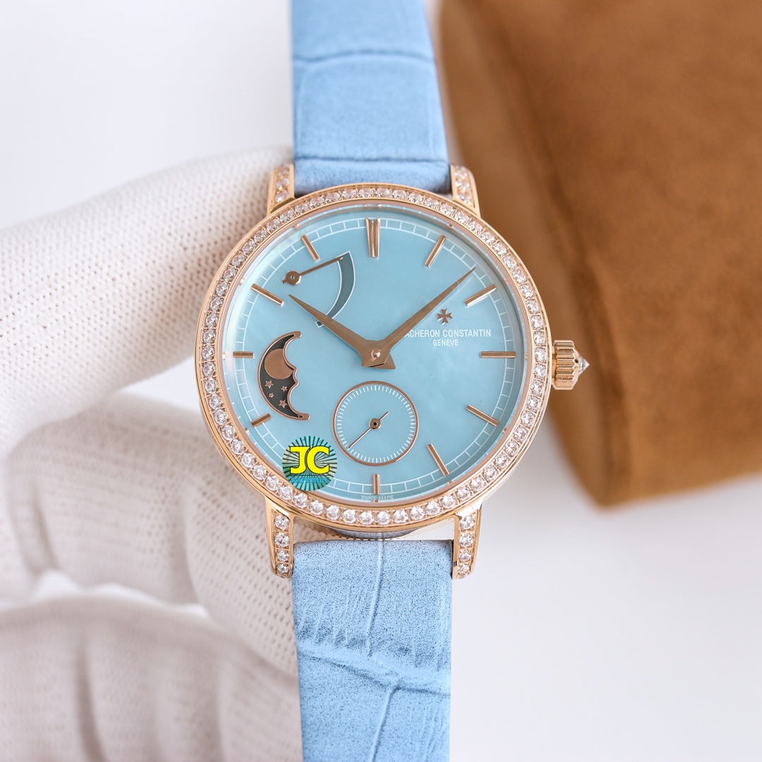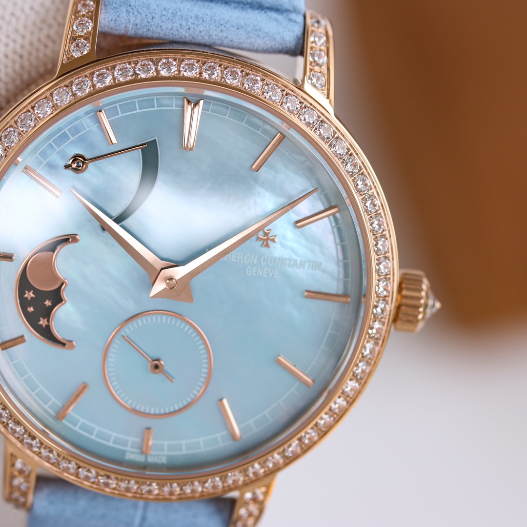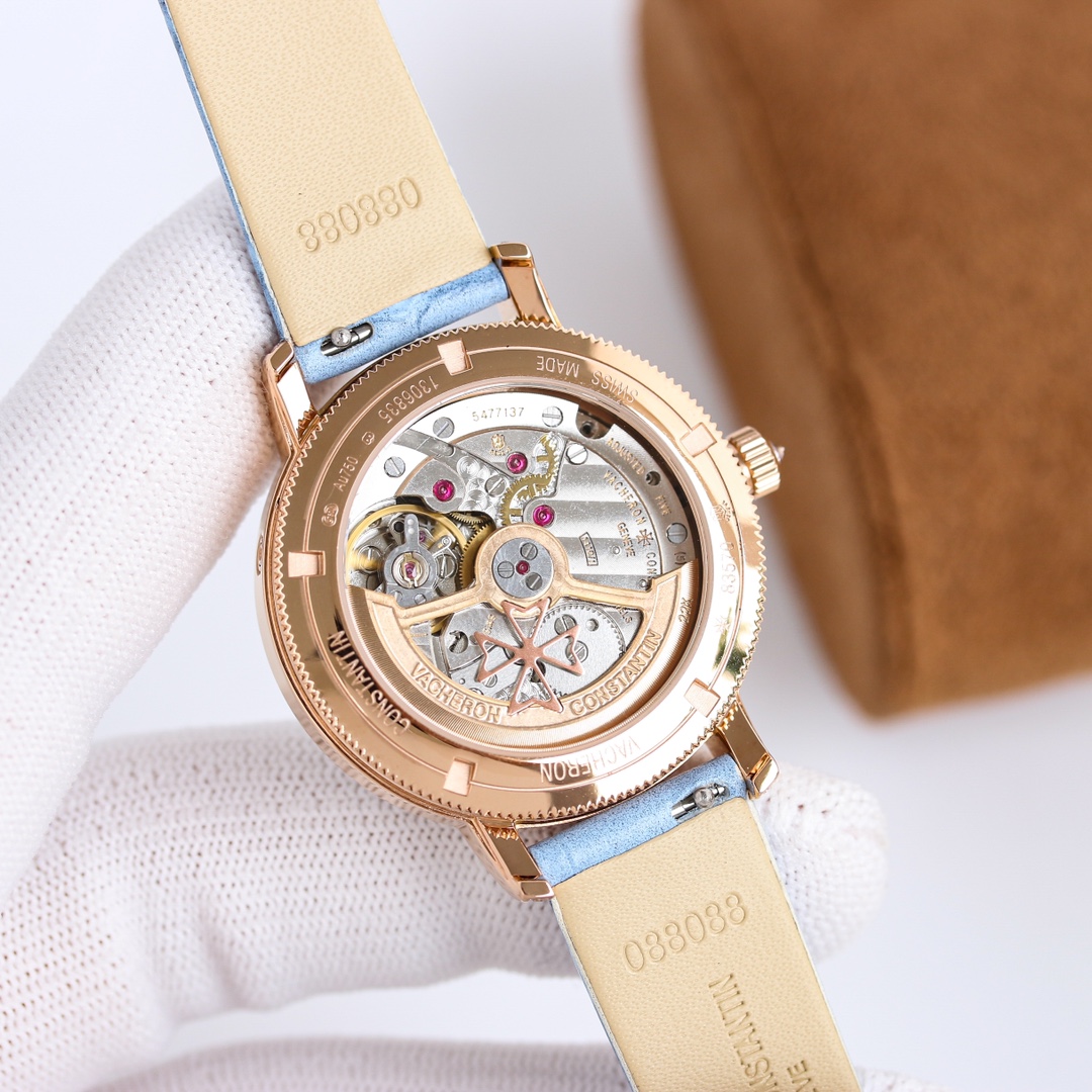 这款手表是AAAAA 1:1 质量 (非常棒). 使用了和原版一模一样的材料. 商标部分也保持了和江诗丹顿/Vacheron Constantin一样. 图片拍摄是实物手表拍摄, 您所收到的实物保证和我们图片一模一样.