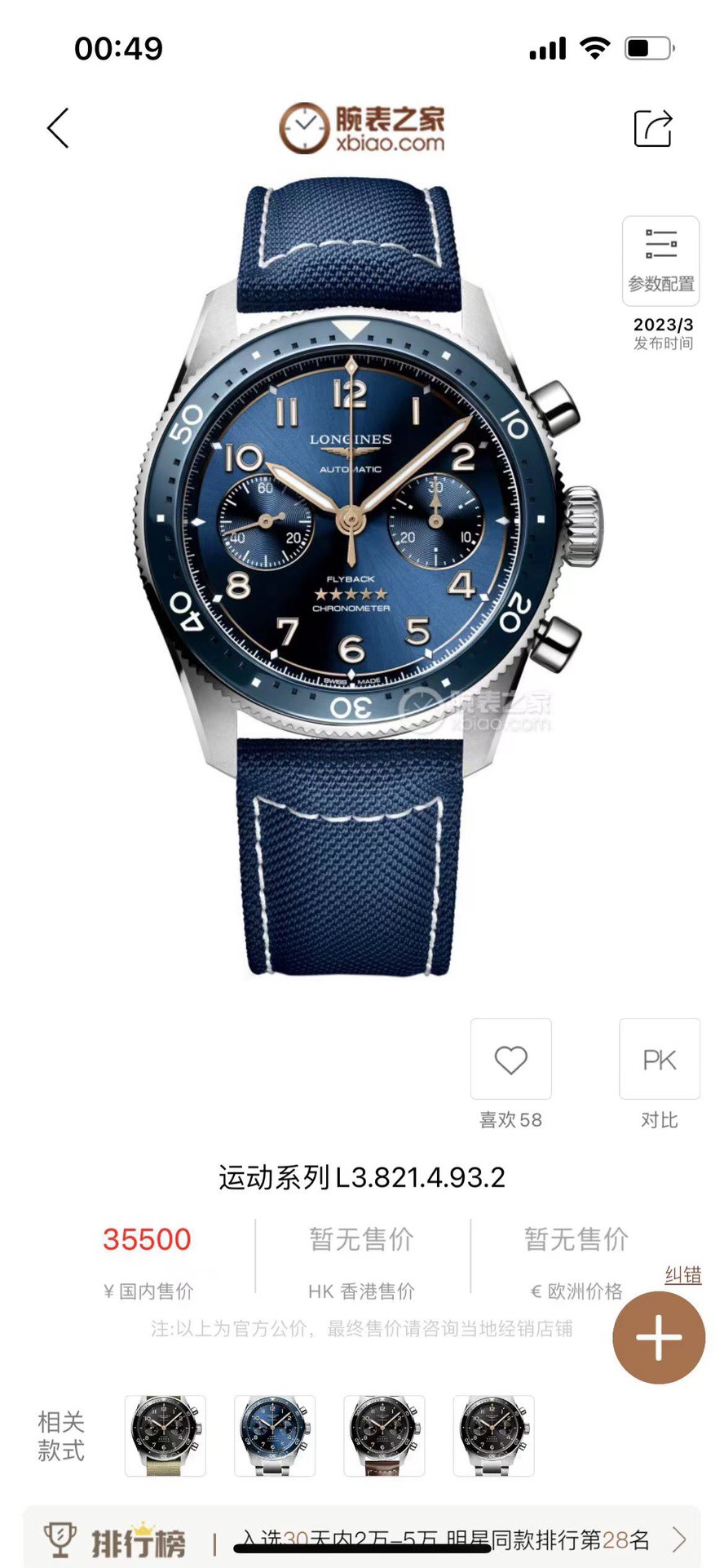 这款手表是AAAAA 1:1 质量 (非常棒). 使用了和原版一模一样的材料. 商标部分也保持了和浪琴/Longines一样. 图片拍摄是实物手表拍摄, 您所收到的实物保证和我们图片一模一样.
