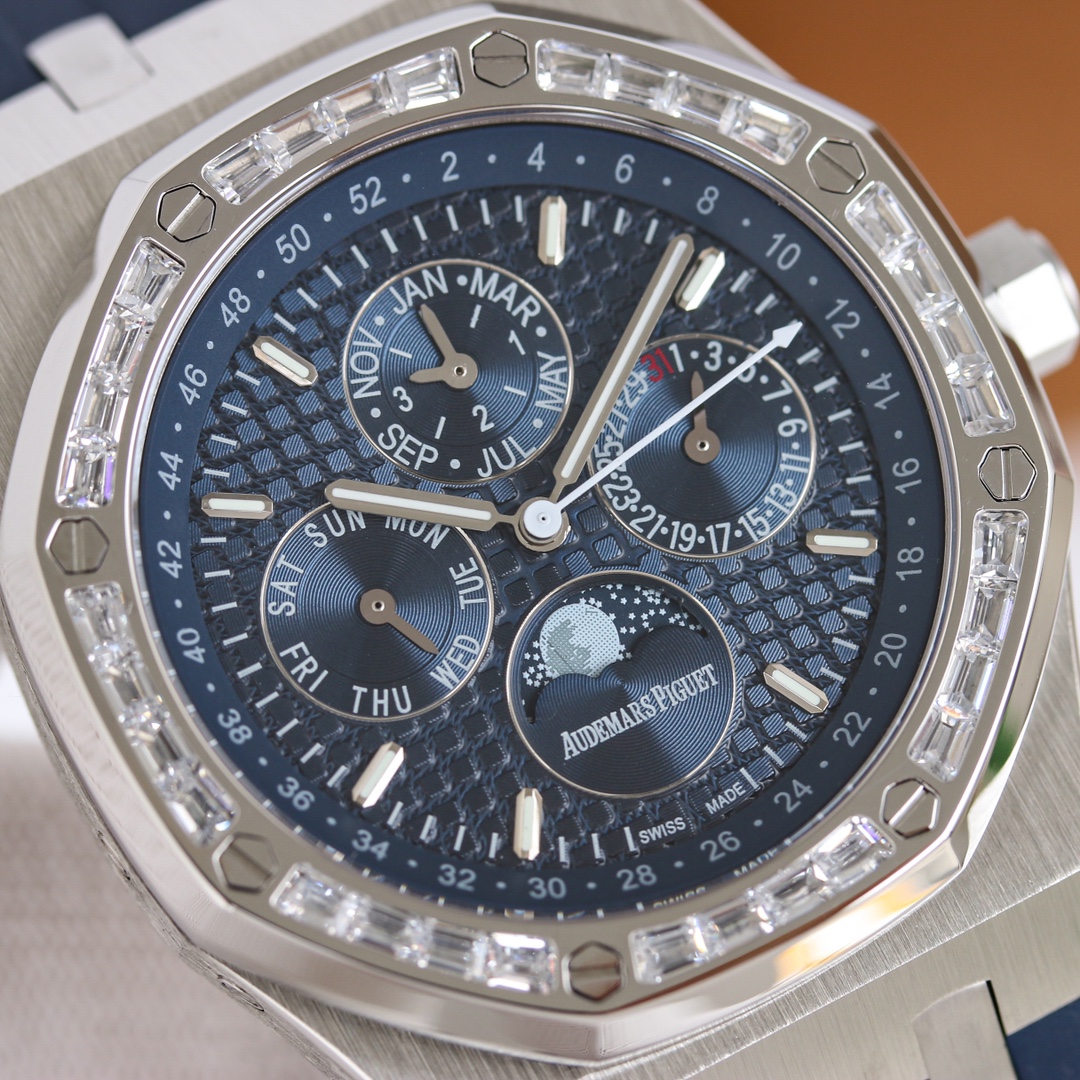 这款手表是AAAAA 1:1 质量 (非常棒). 使用了和原版一模一样的材料. 商标部分也保持了和爱彼/Audemars Piguet一样. 图片拍摄是实物手表拍摄, 您所收到的实物保证和我们图片一模一样.