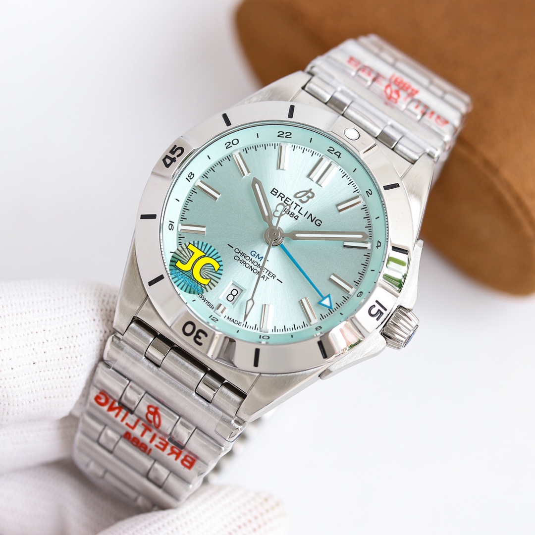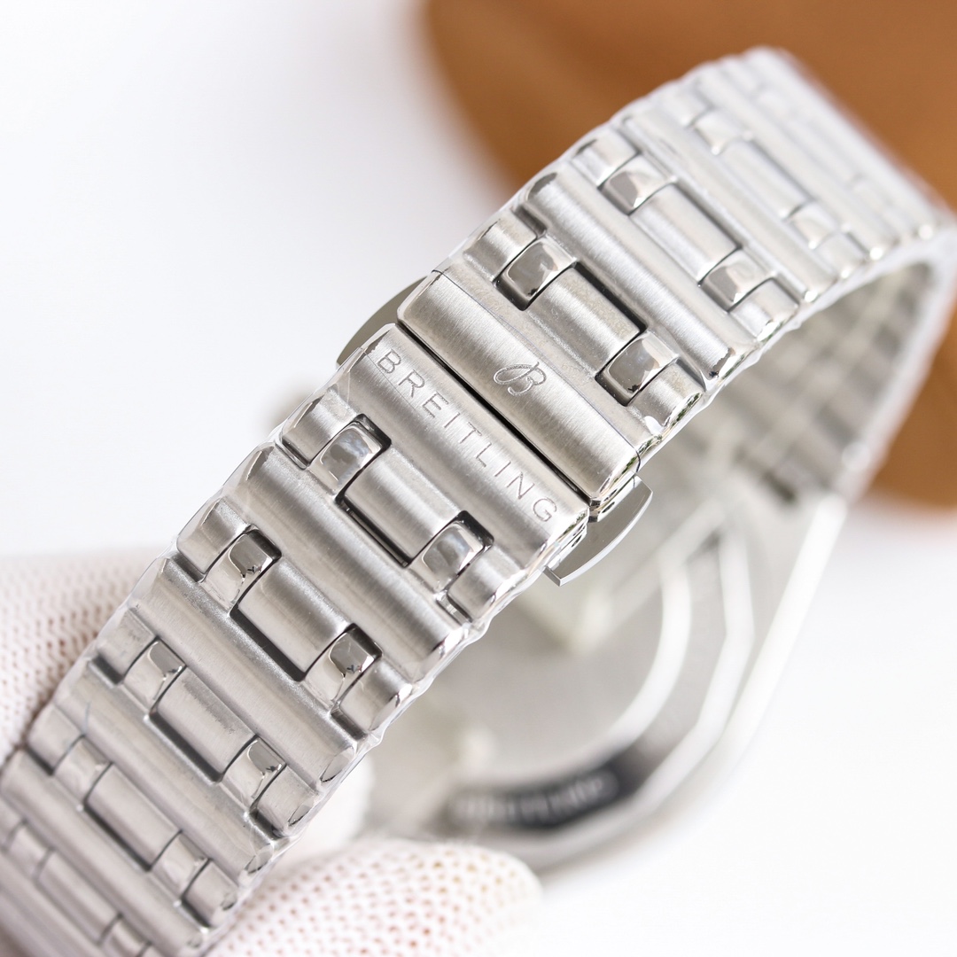 这款手表是AAAAA 1:1 质量 (非常棒). 使用了和原版一模一样的材料. 商标部分也保持了和Breitling一样. 图片拍摄是实物手表拍摄, 您所收到的实物保证和我们图片一模一样.