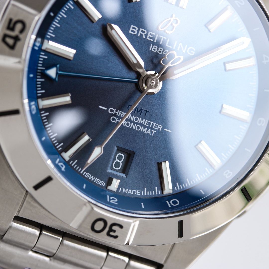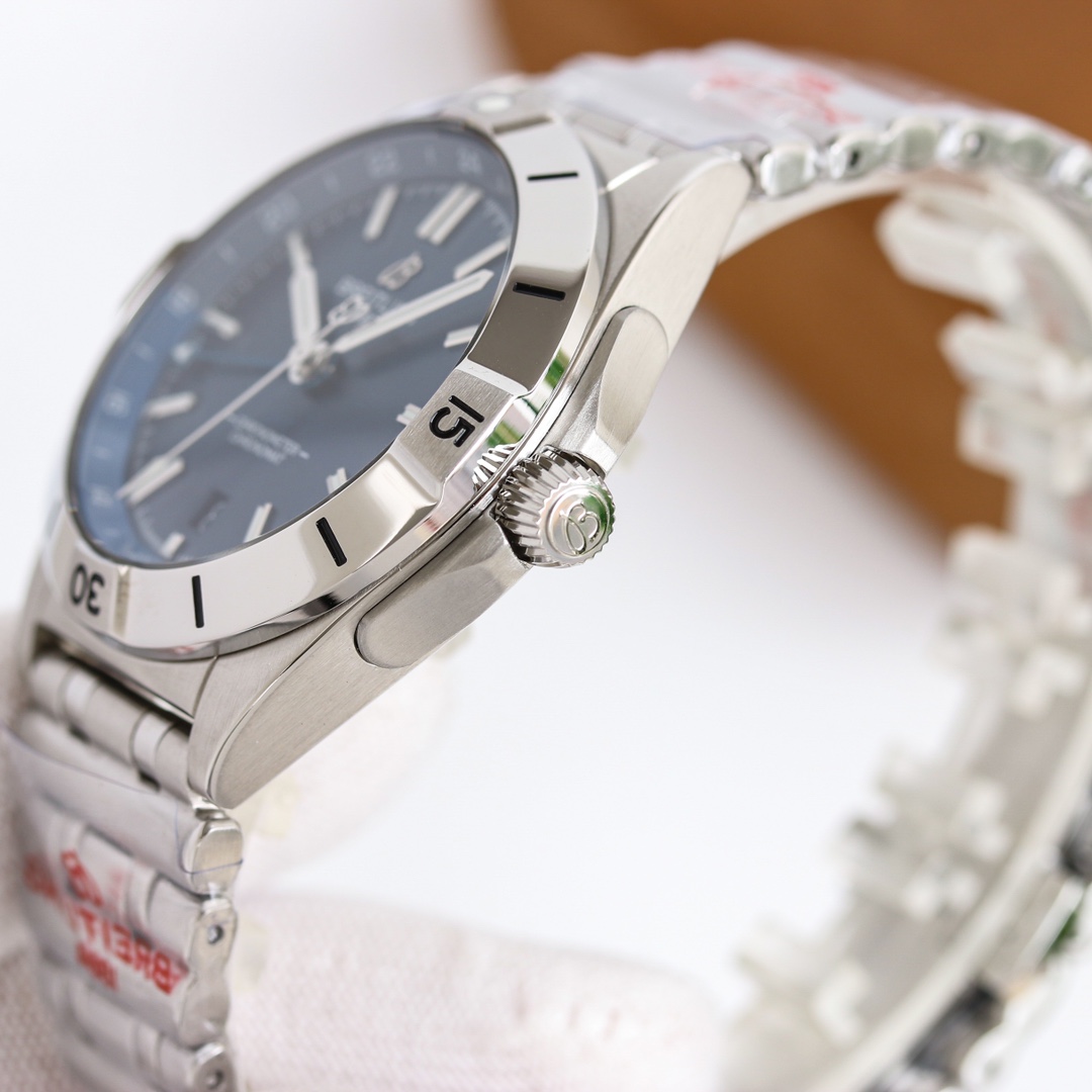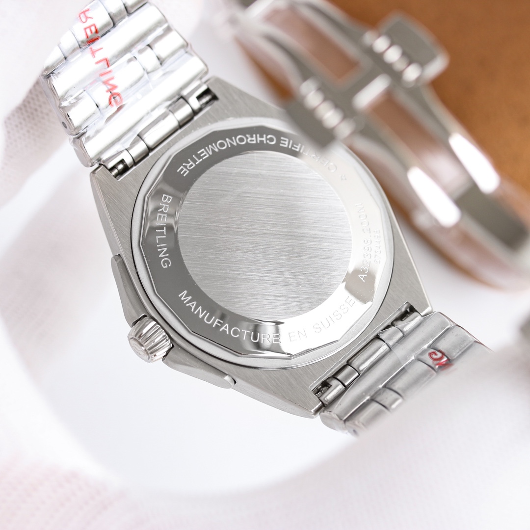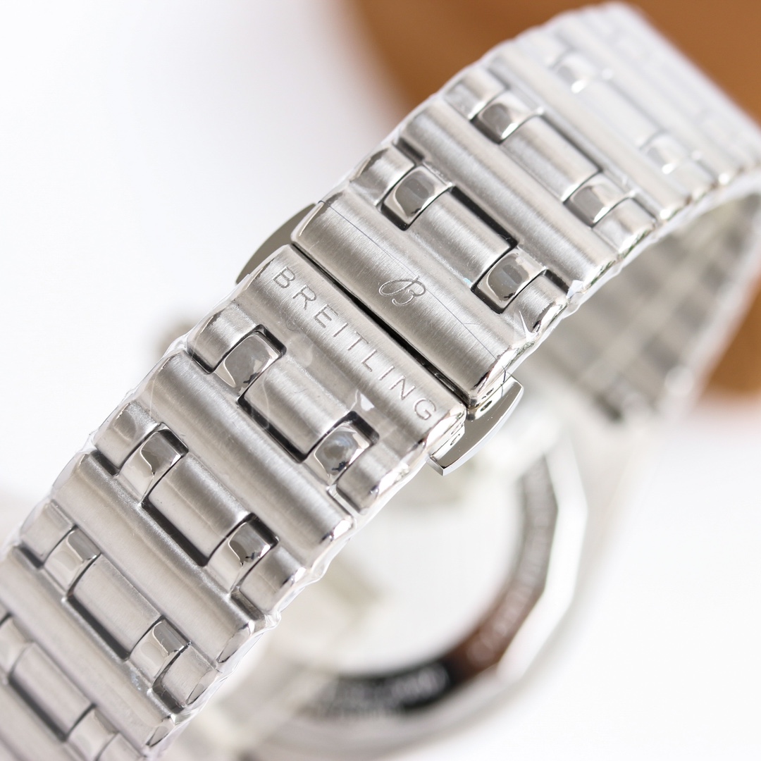 这款手表是AAAAA 1:1 质量 (非常棒). 使用了和原版一模一样的材料. 商标部分也保持了和Breitling一样. 图片拍摄是实物手表拍摄, 您所收到的实物保证和我们图片一模一样.