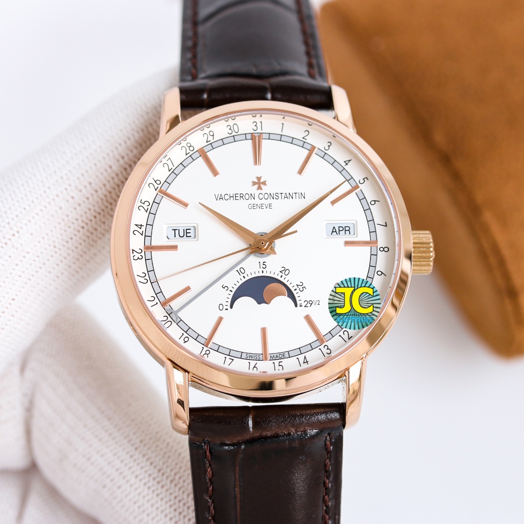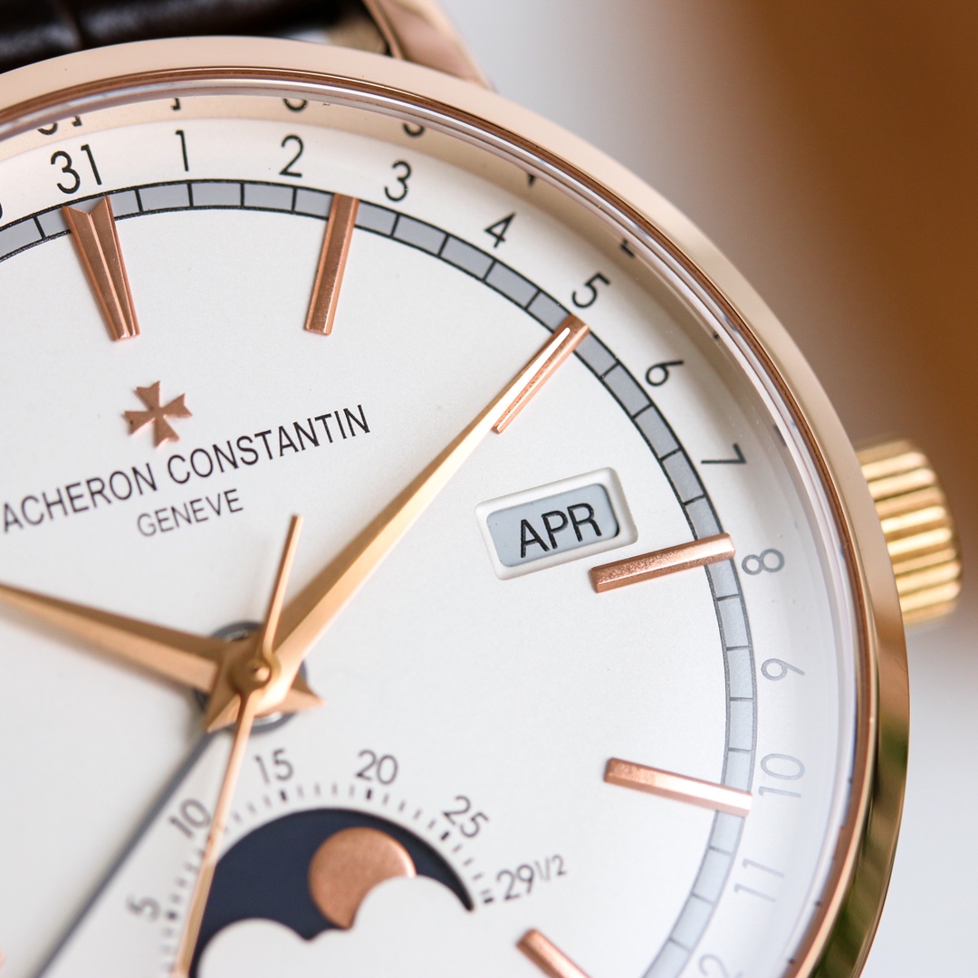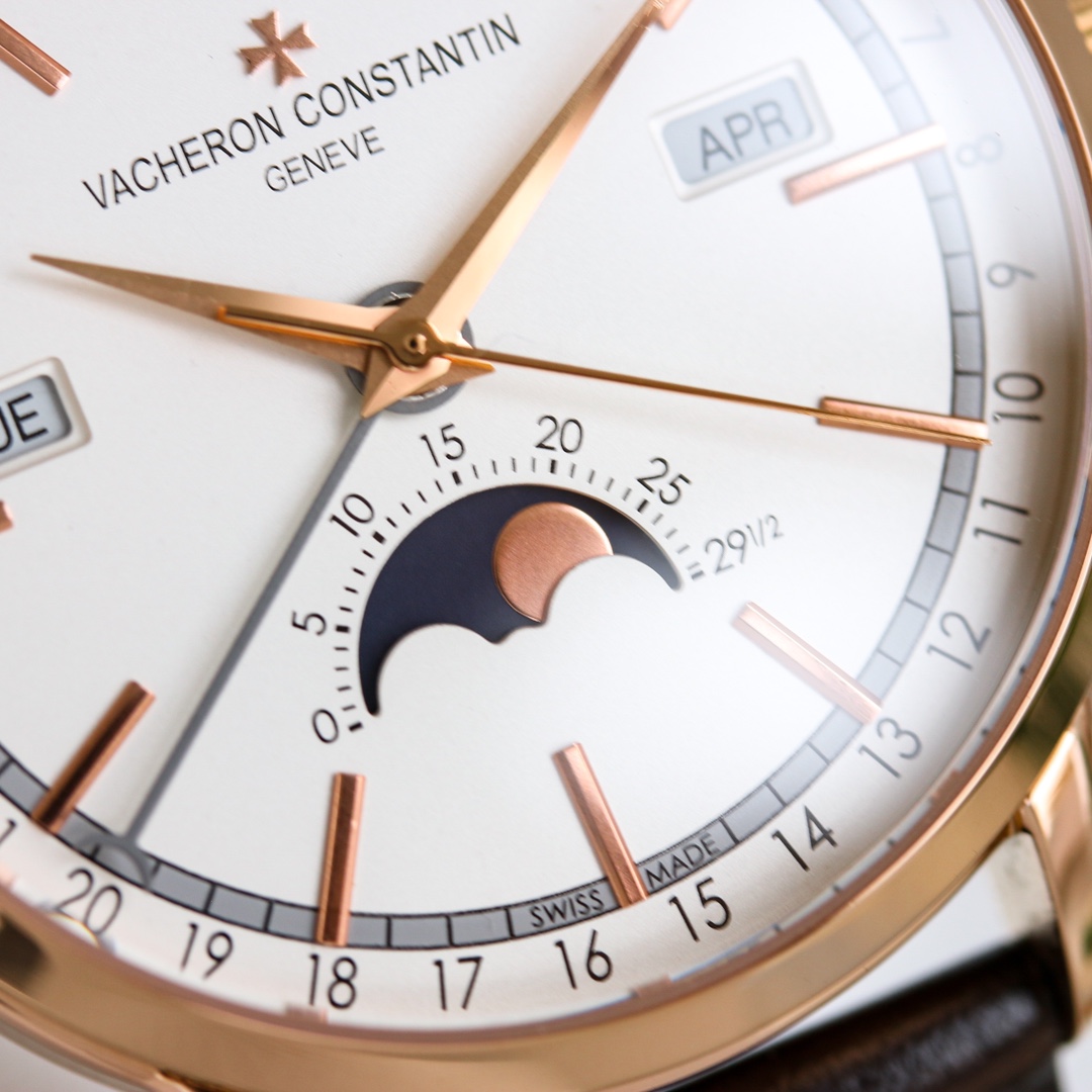 这款手表是AAAAA 1:1 质量 (非常棒). 使用了和原版一模一样的材料. 商标部分也保持了和江诗丹顿/Vacheron Constantin一样. 图片拍摄是实物手表拍摄, 您所收到的实物保证和我们图片一模一样.