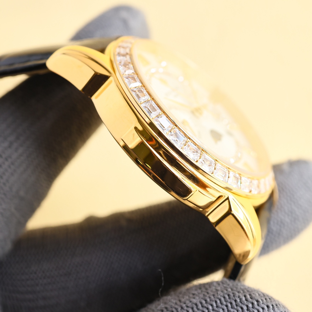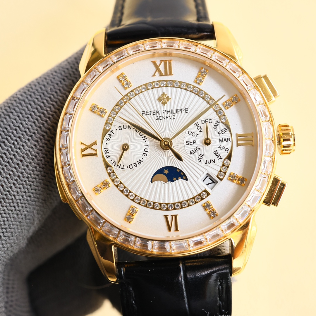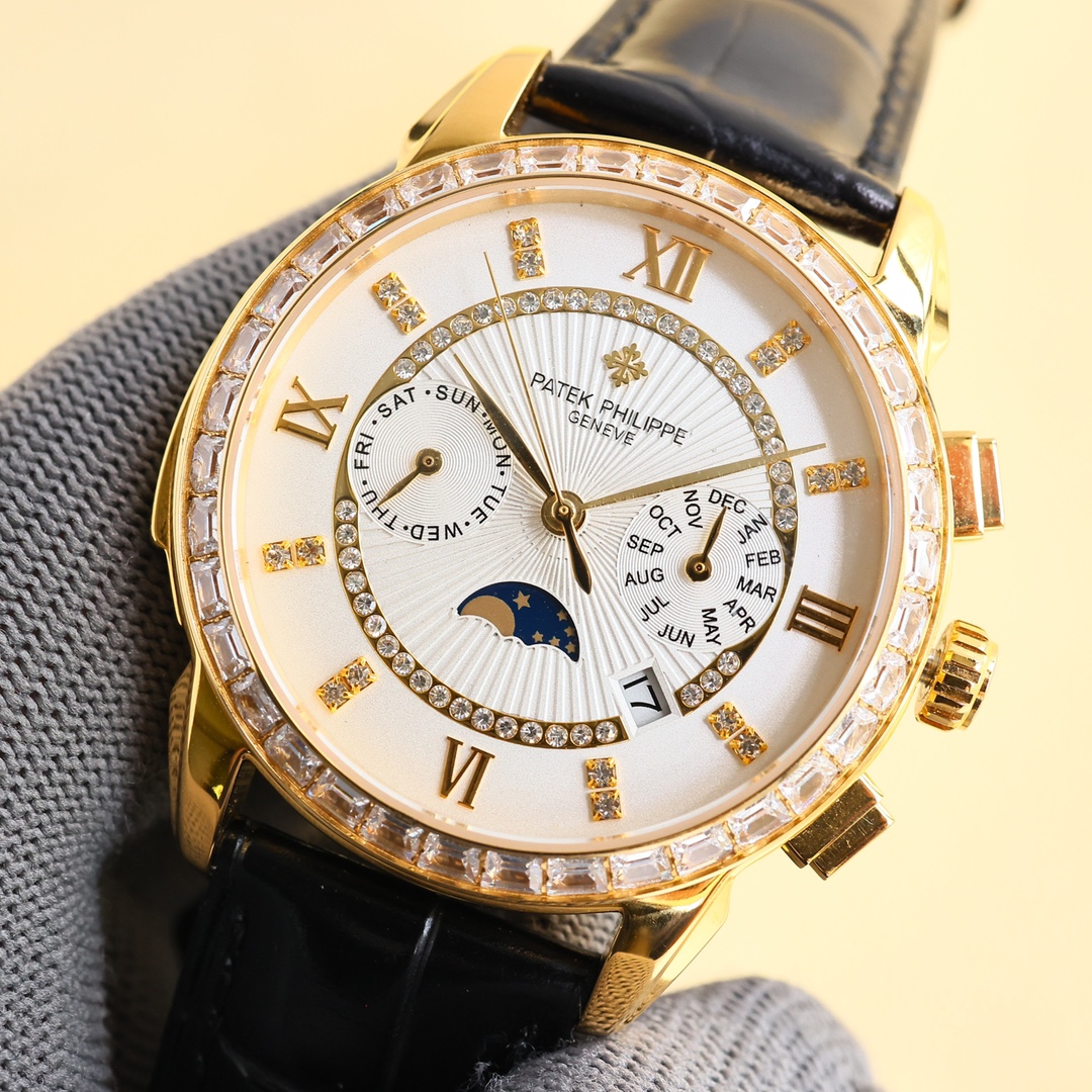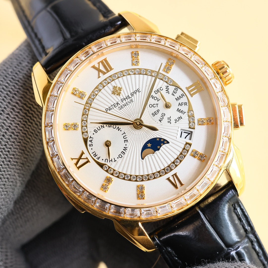 这款手表是AAAAA 1:1 质量 (非常棒). 使用了和原版一模一样的材料. 商标部分也保持了和百达翡丽/Patek Philippe一样. 图片拍摄是实物手表拍摄, 您所收到的实物保证和我们图片一模一样.