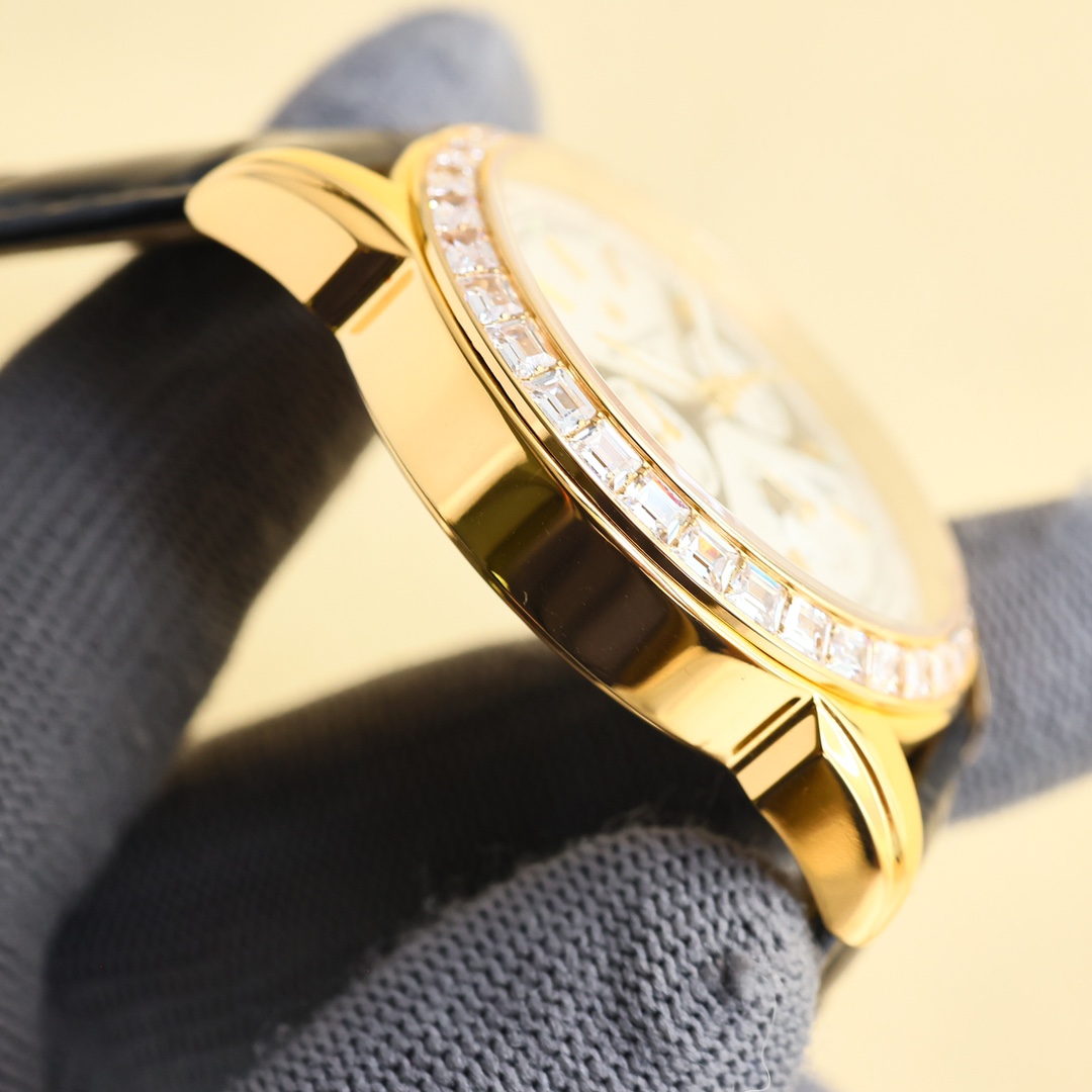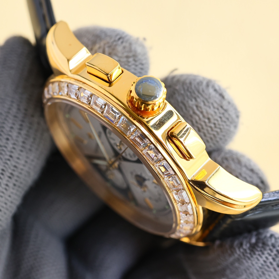 这款手表是AAAAA 1:1 质量 (非常棒). 使用了和原版一模一样的材料. 商标部分也保持了和百达翡丽/Patek Philippe一样. 图片拍摄是实物手表拍摄, 您所收到的实物保证和我们图片一模一样.