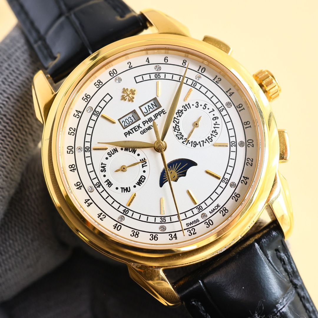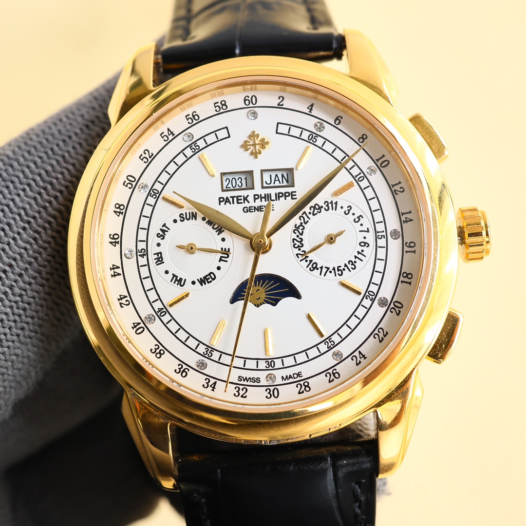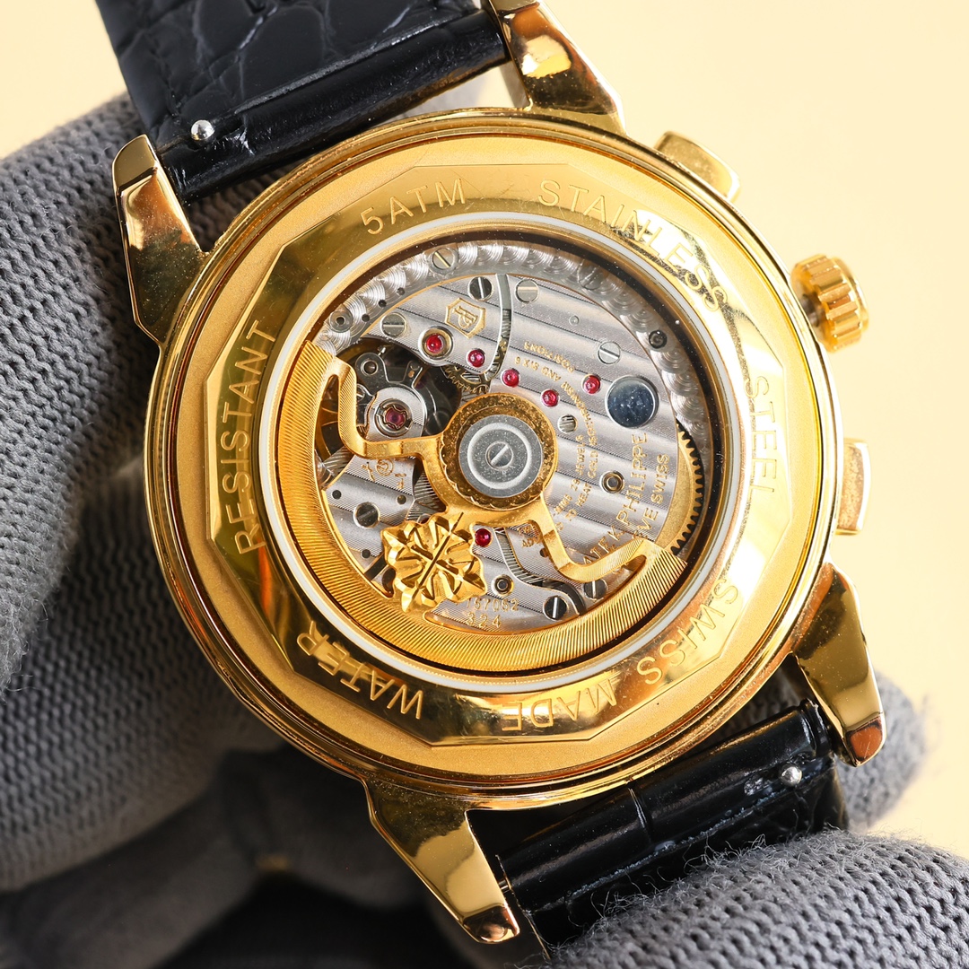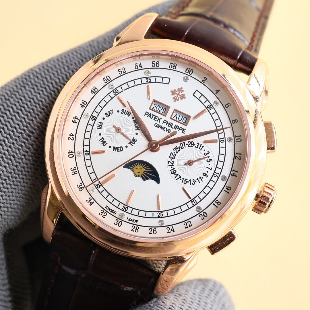 这款手表是AAAAA 1:1 质量 (非常棒). 使用了和原版一模一样的材料. 商标部分也保持了和百达翡丽/Patek Philippe一样. 图片拍摄是实物手表拍摄, 您所收到的实物保证和我们图片一模一样.