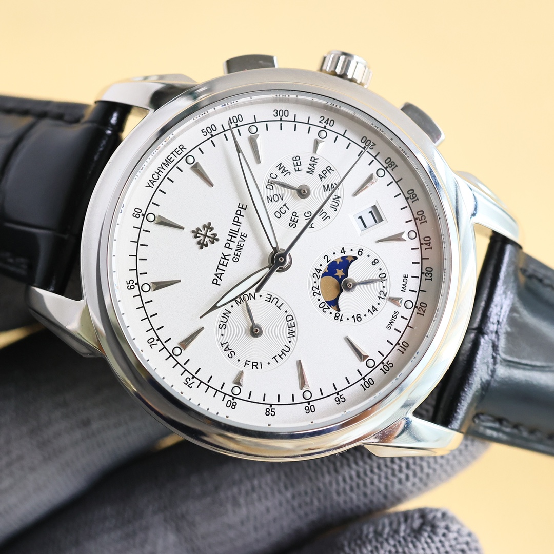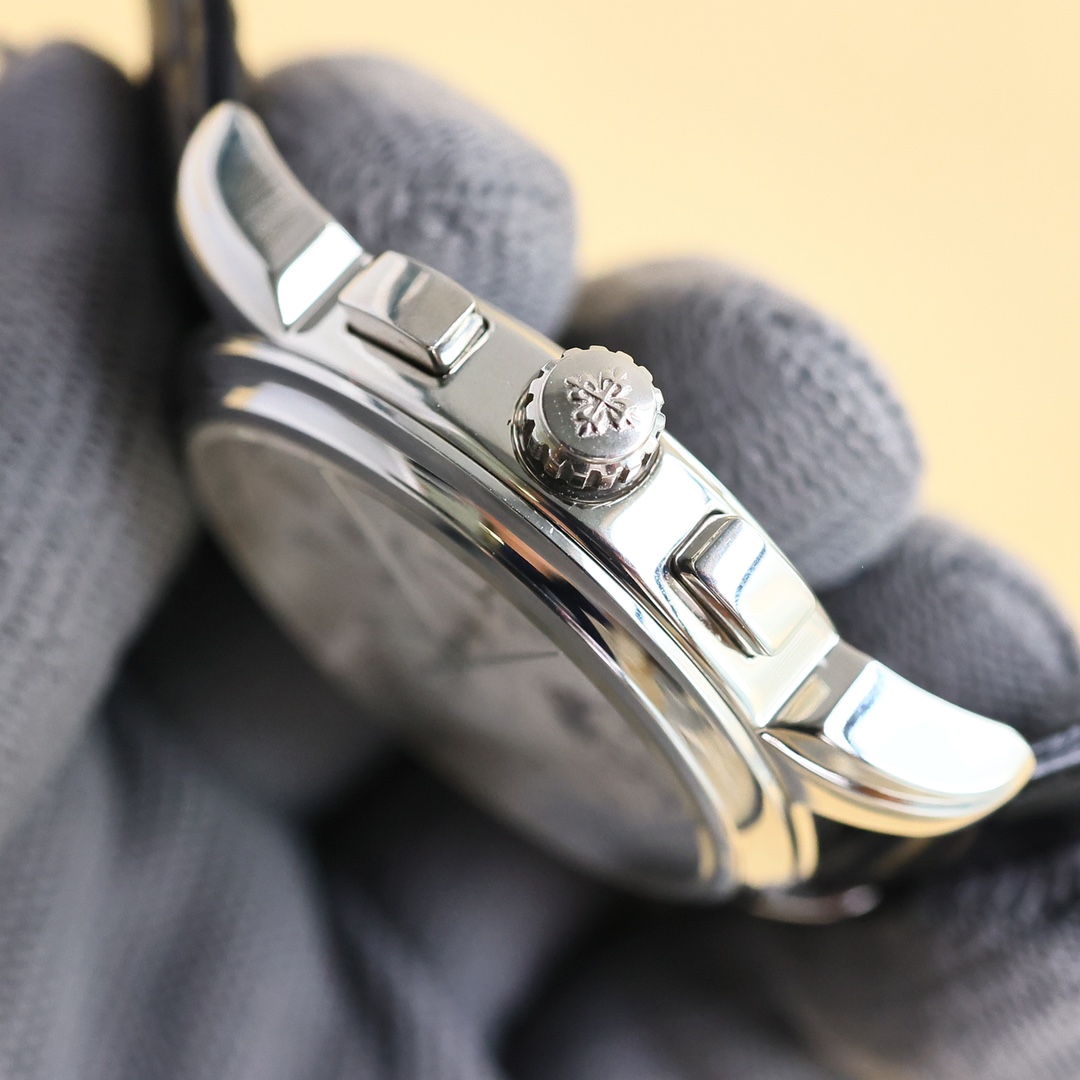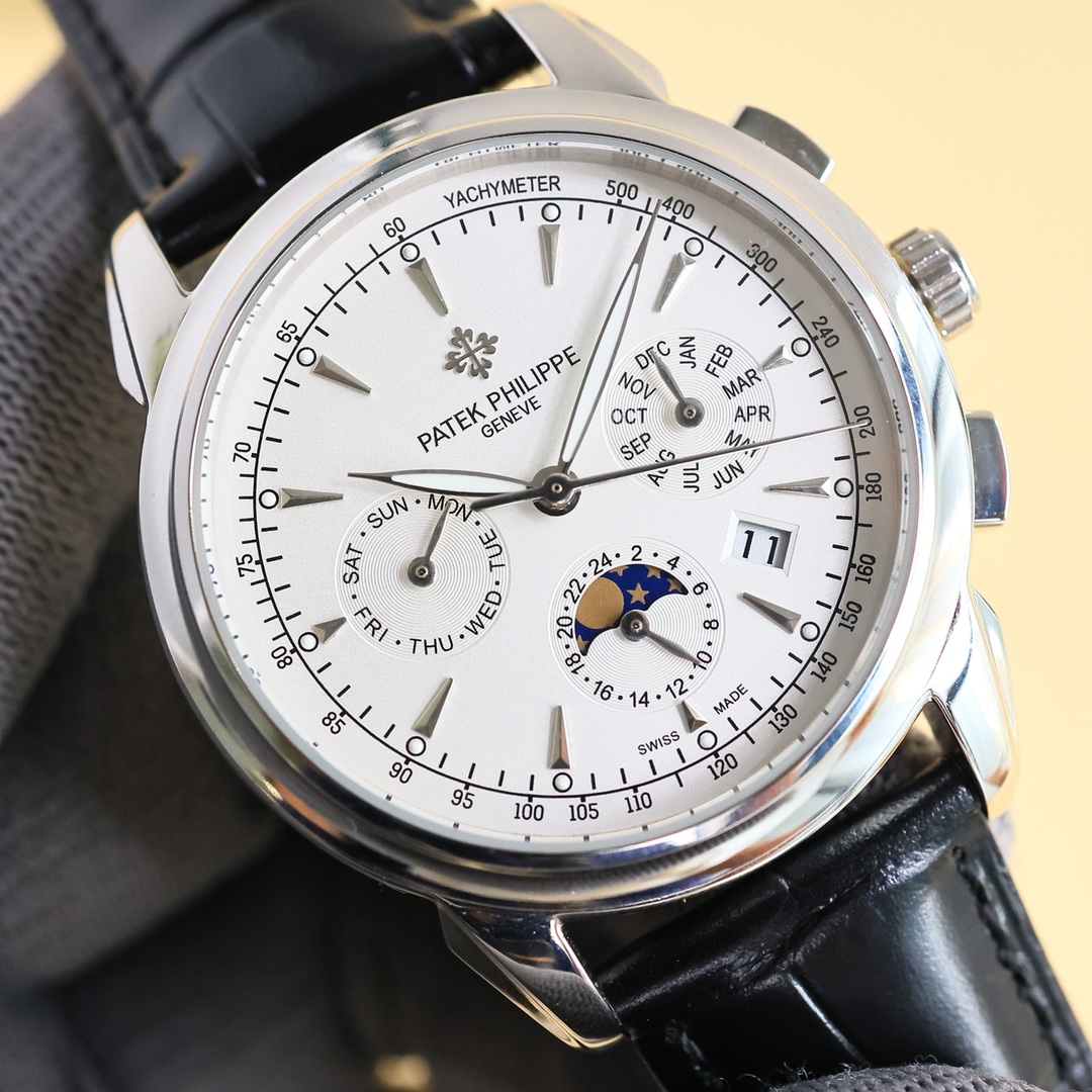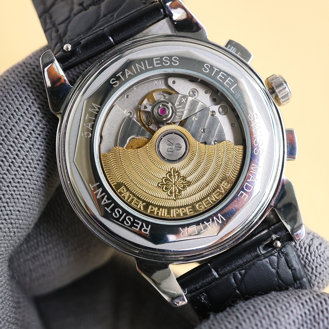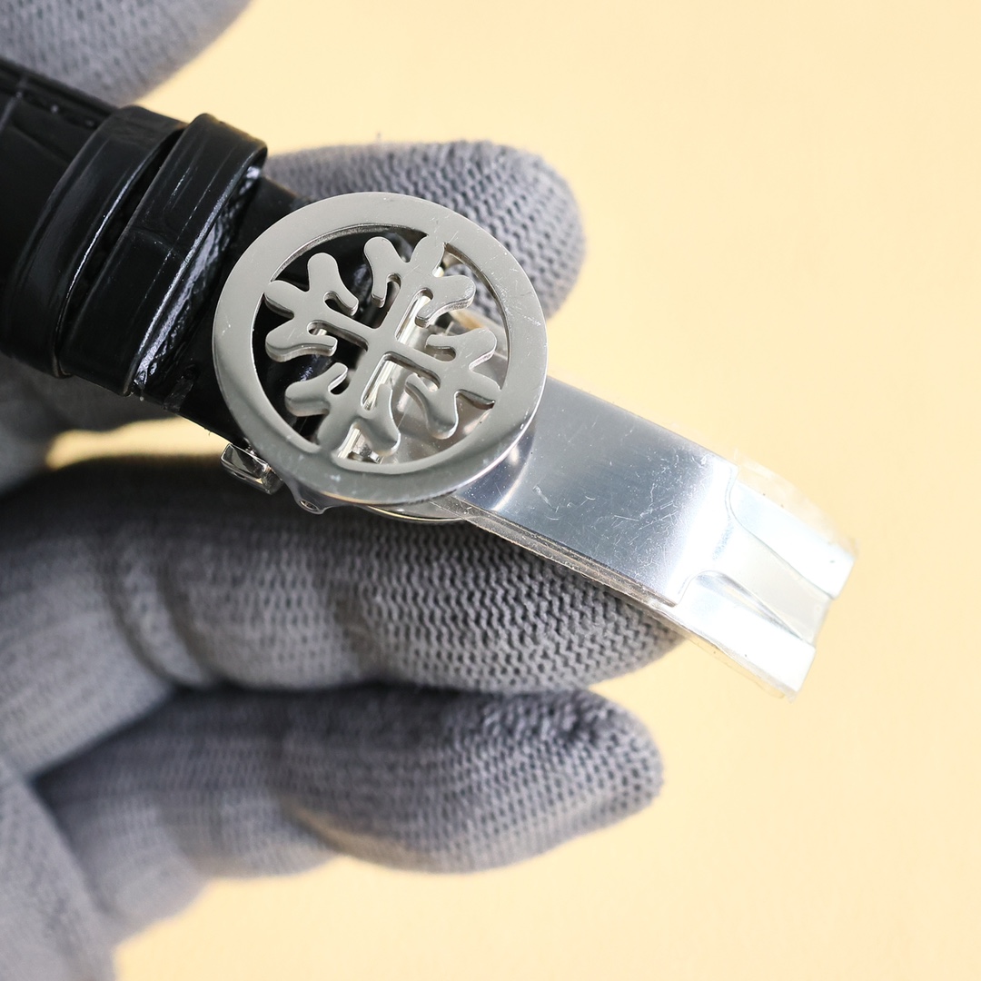 这款手表是AAAAA 1:1 质量 (非常棒). 使用了和原版一模一样的材料. 商标部分也保持了和百达翡丽/Patek Philippe一样. 图片拍摄是实物手表拍摄, 您所收到的实物保证和我们图片一模一样.