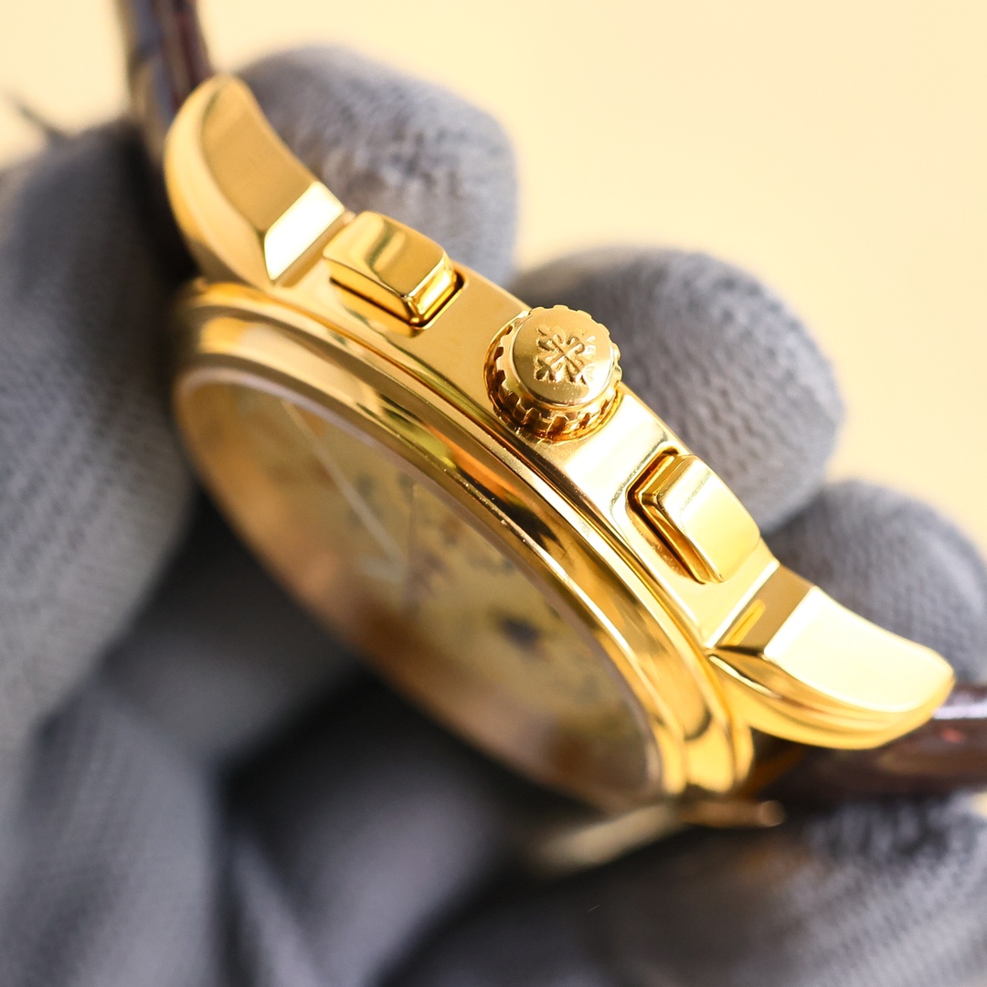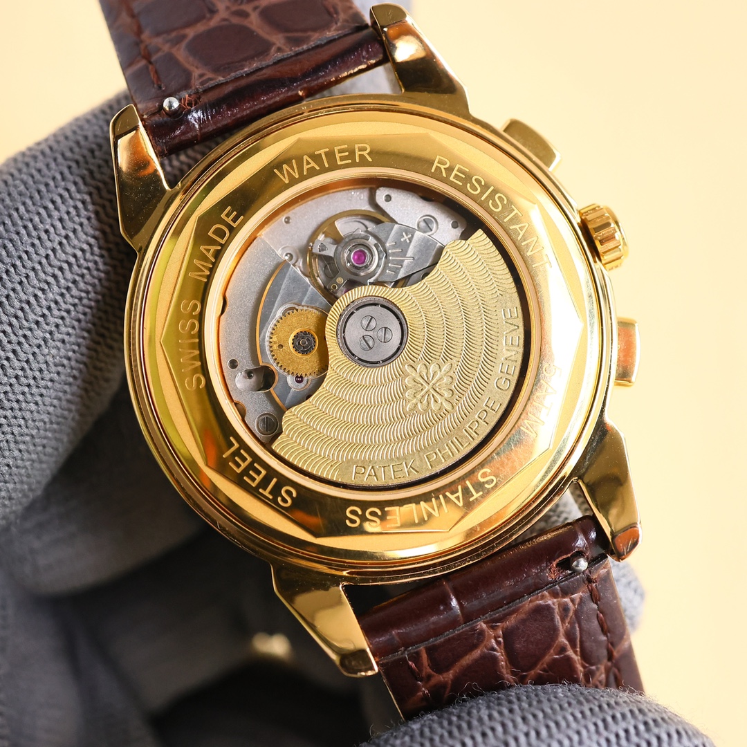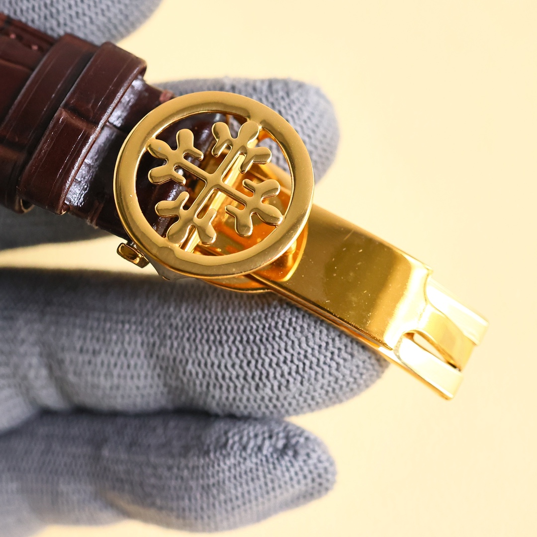 这款手表是AAAAA 1:1 质量 (非常棒). 使用了和原版一模一样的材料. 商标部分也保持了和百达翡丽/Patek Philippe一样. 图片拍摄是实物手表拍摄, 您所收到的实物保证和我们图片一模一样.
