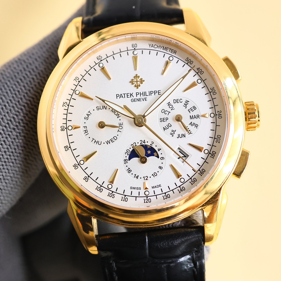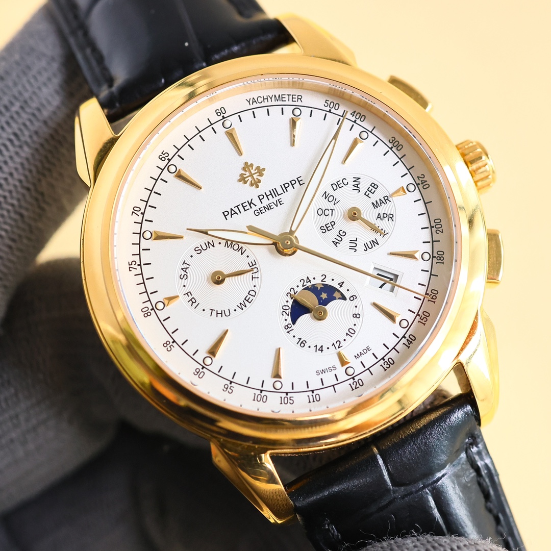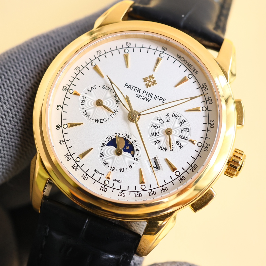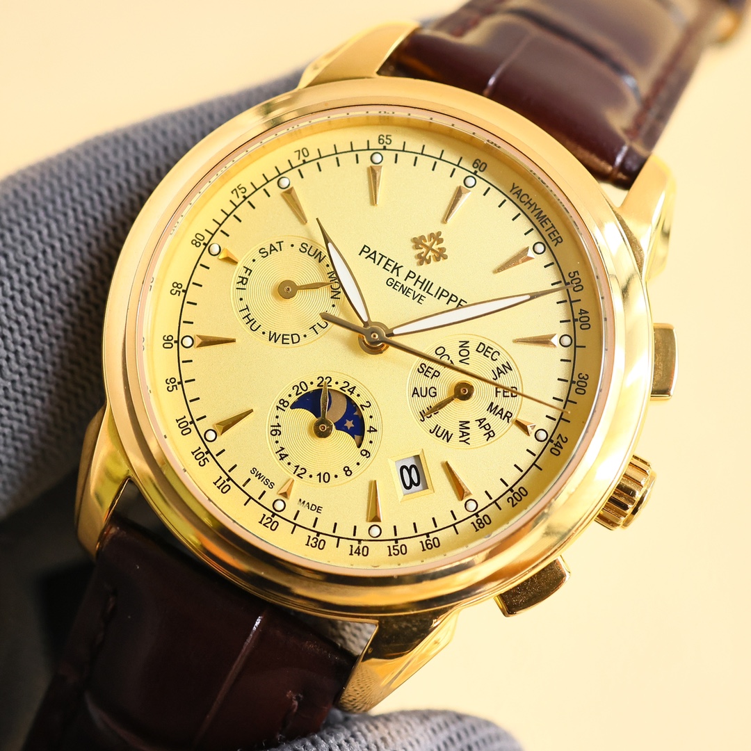 这款手表是AAAAA 1:1 质量 (非常棒). 使用了和原版一模一样的材料. 商标部分也保持了和百达翡丽/Patek Philippe一样. 图片拍摄是实物手表拍摄, 您所收到的实物保证和我们图片一模一样.