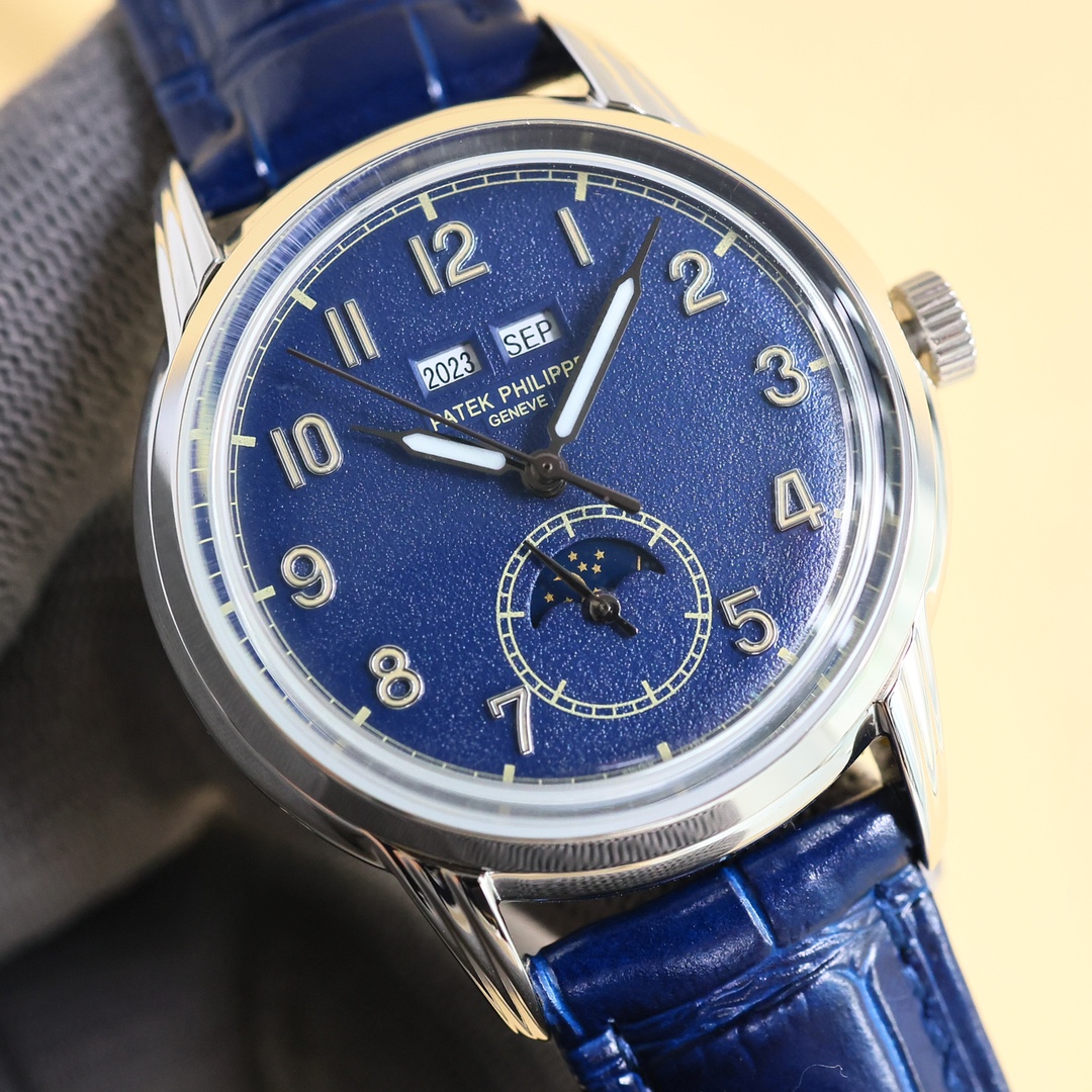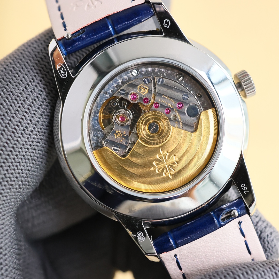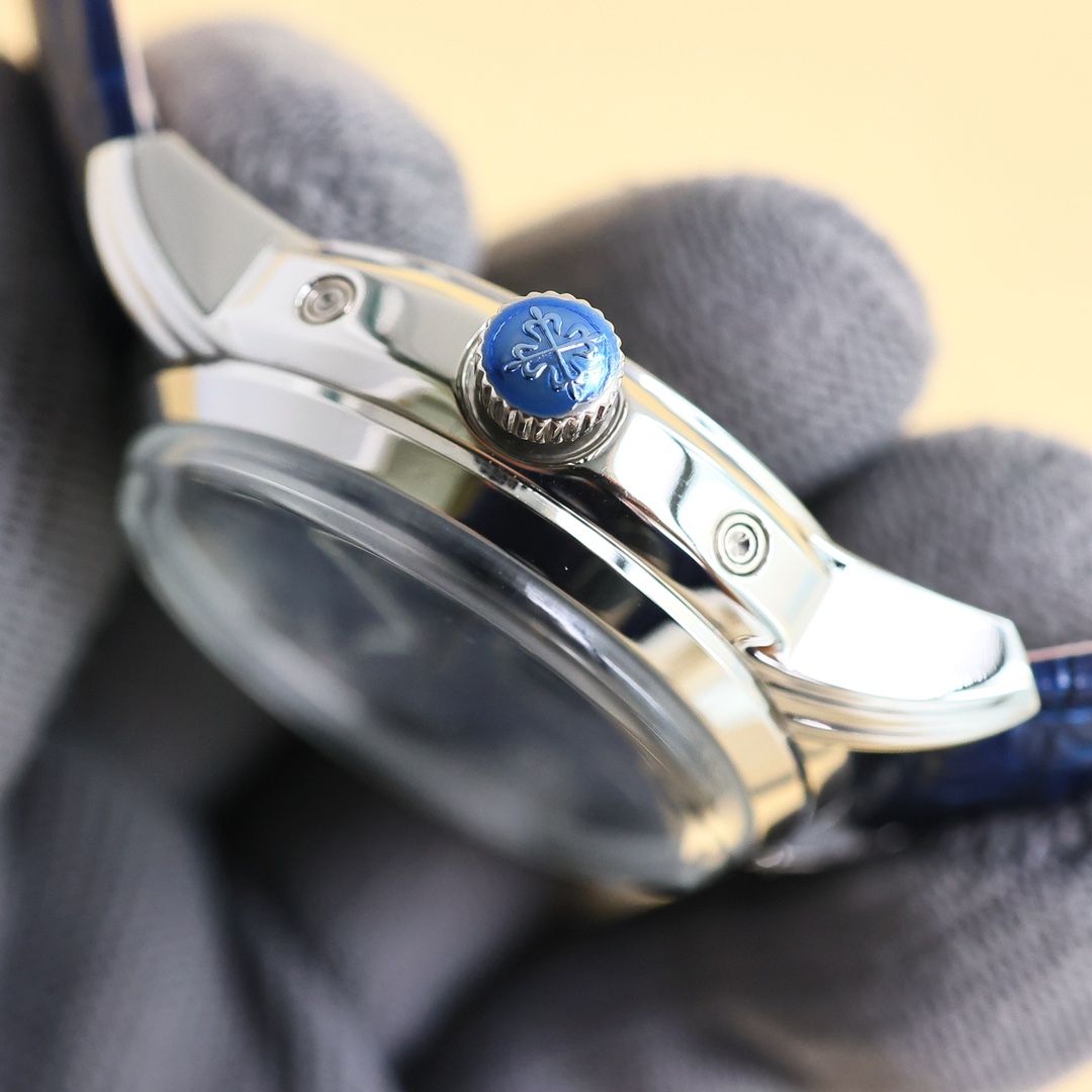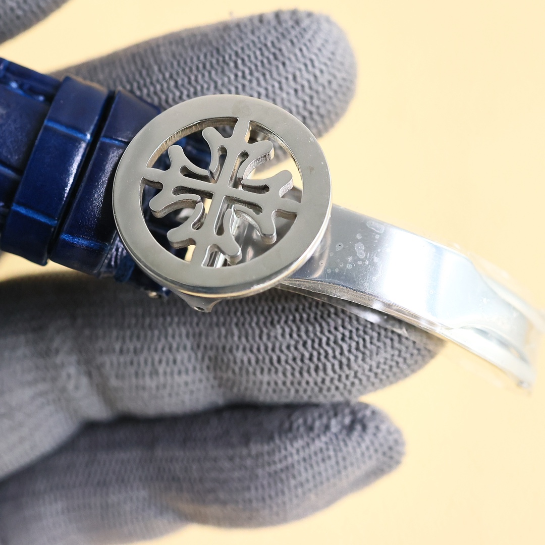 这款手表是AAAAA 1:1 质量 (非常棒). 使用了和原版一模一样的材料. 商标部分也保持了和百达翡丽/Patek Philippe一样. 图片拍摄是实物手表拍摄, 您所收到的实物保证和我们图片一模一样.