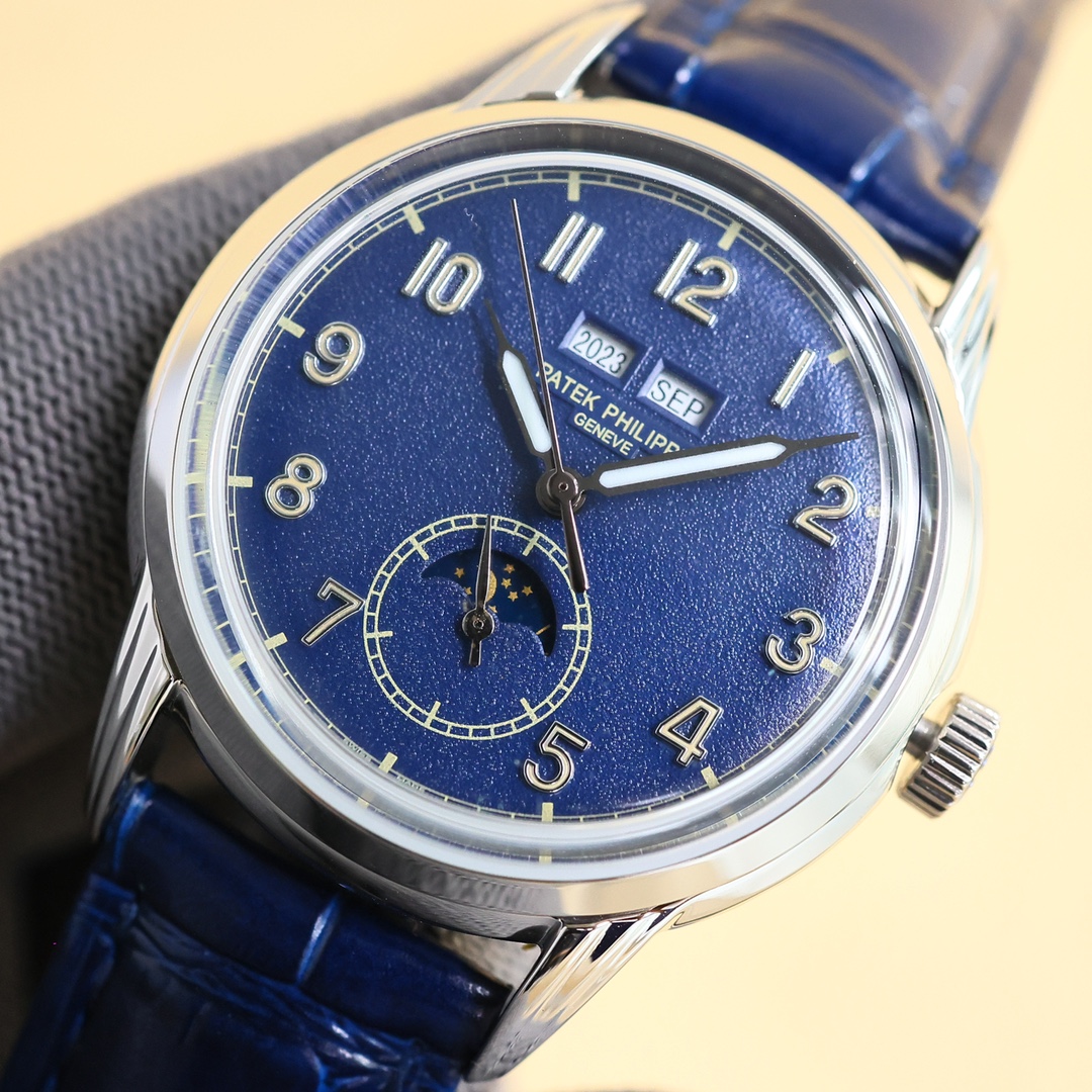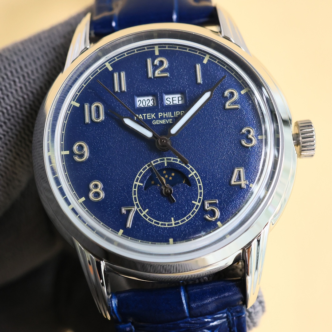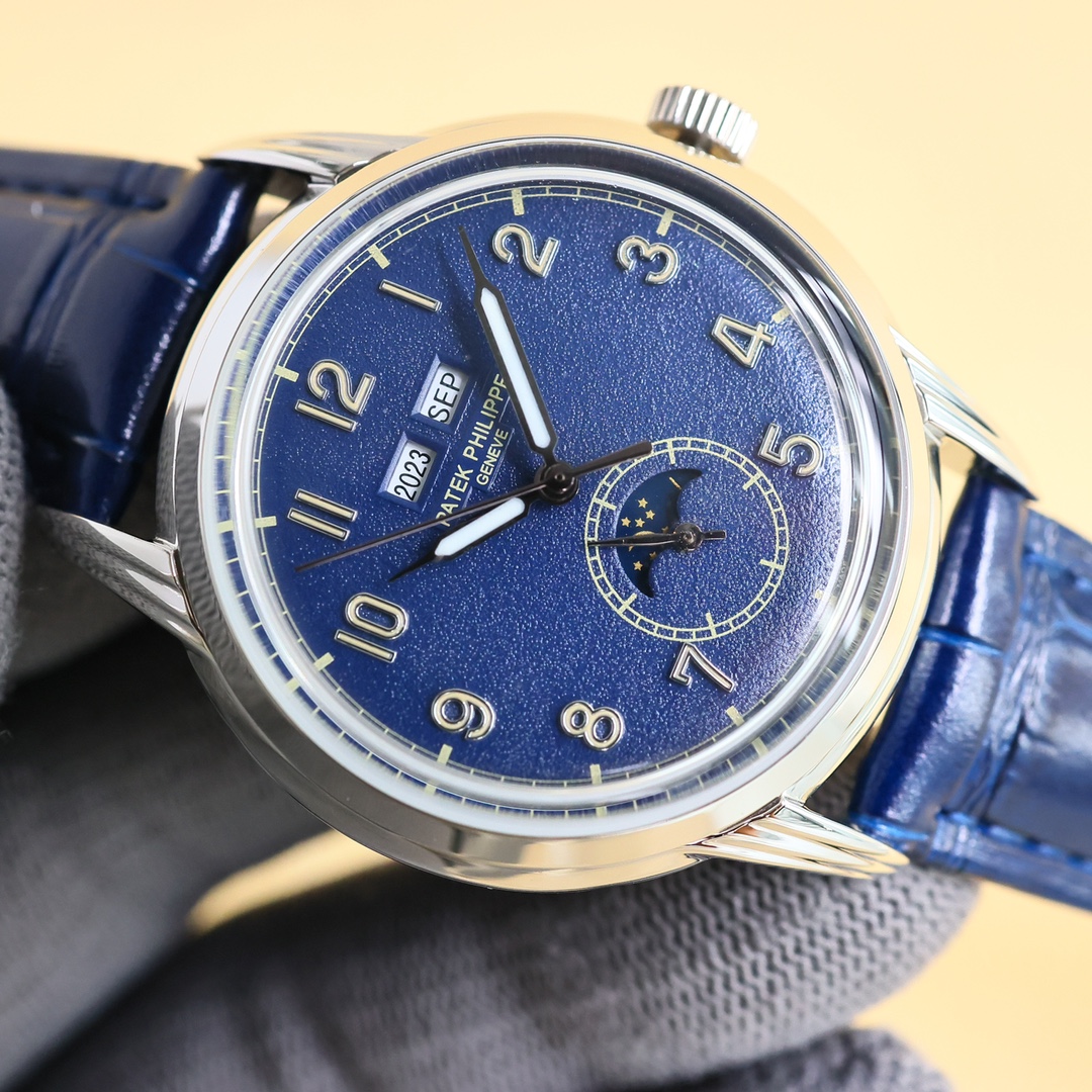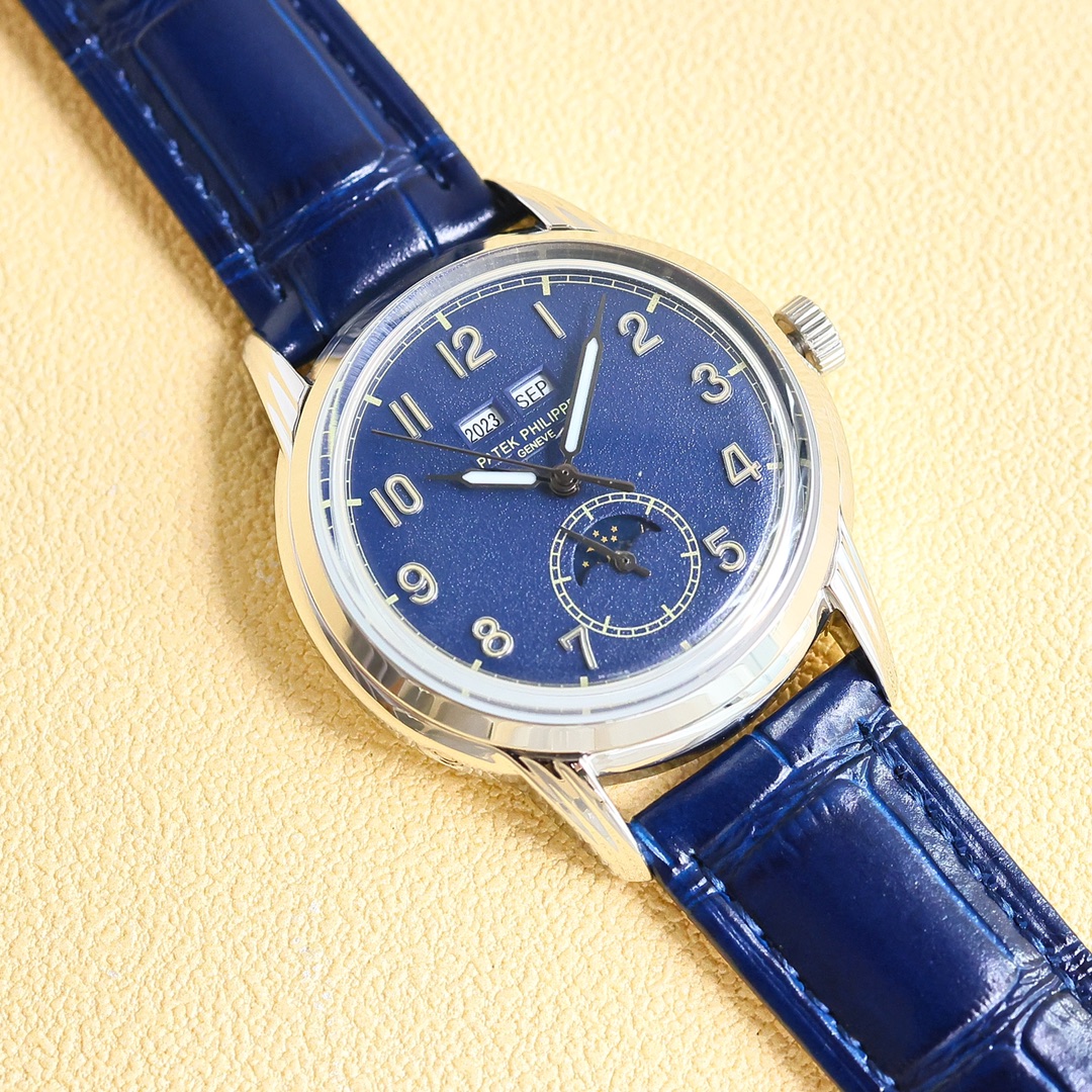 这款手表是AAAAA 1:1 质量 (非常棒). 使用了和原版一模一样的材料. 商标部分也保持了和百达翡丽/Patek Philippe一样. 图片拍摄是实物手表拍摄, 您所收到的实物保证和我们图片一模一样.