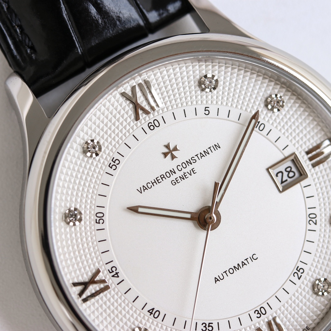 这款手表是AAAAA 1:1 质量 (非常棒). 使用了和原版一模一样的材料. 商标部分也保持了和江诗丹顿/Vacheron Constantin一样. 图片拍摄是实物手表拍摄, 您所收到的实物保证和我们图片一模一样.