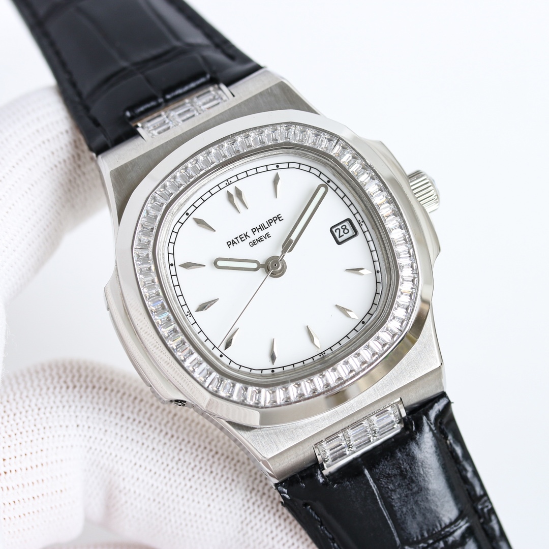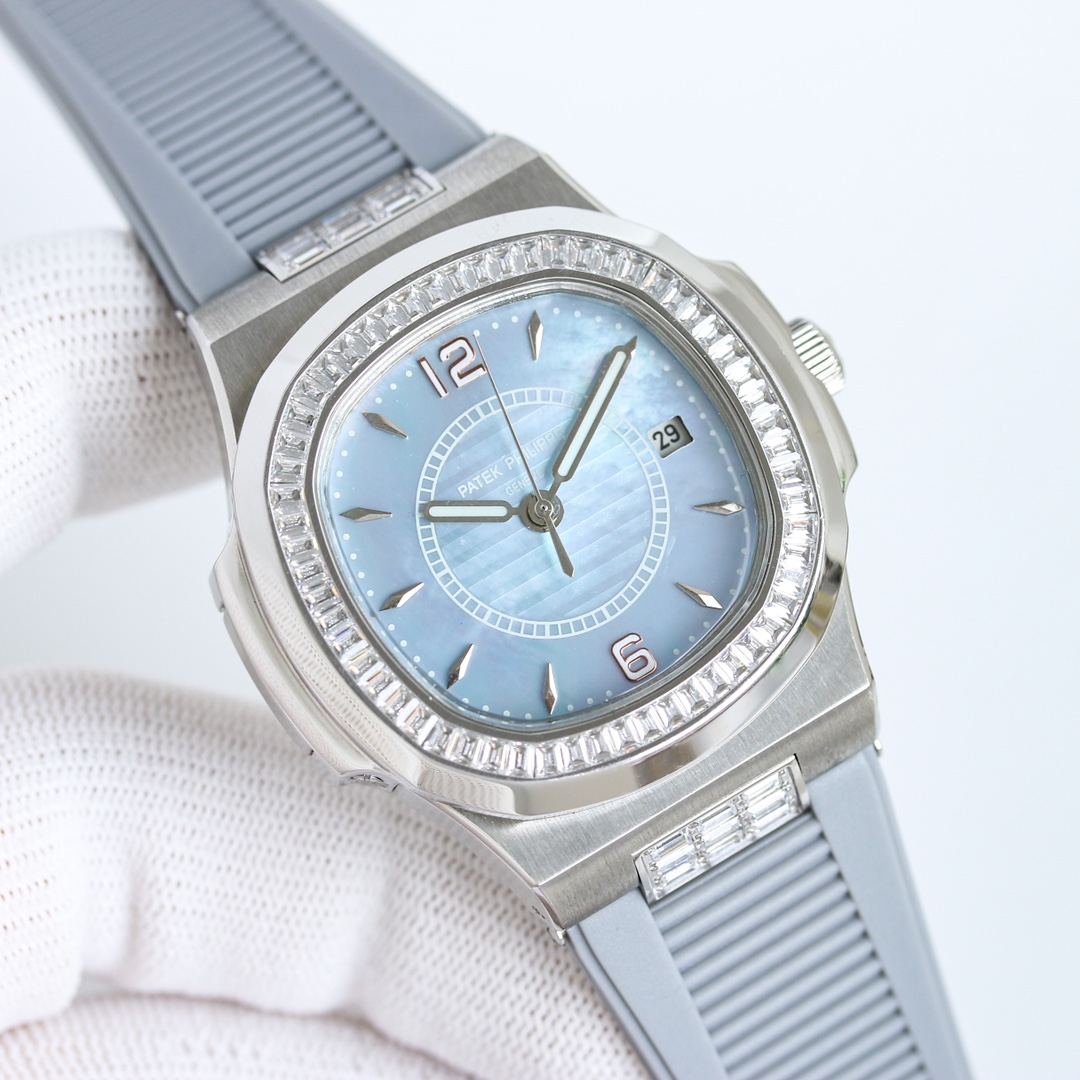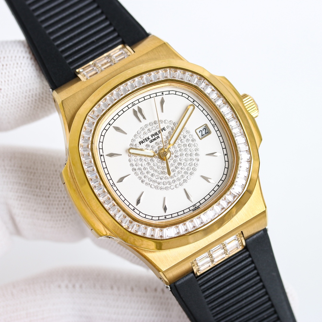 这款手表是AAAAA 1:1 质量 (非常棒). 使用了和原版一模一样的材料. 商标部分也保持了和百达翡丽/Patek Philippe一样. 图片拍摄是实物手表拍摄, 您所收到的实物保证和我们图片一模一样.
