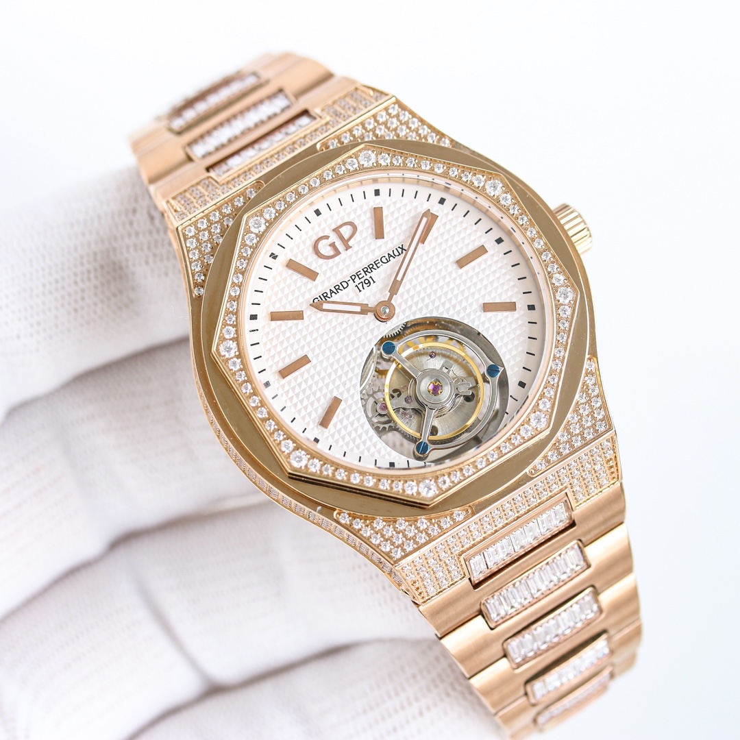 这款手表是AAAAA 1:1 质量 (非常棒). 使用了和原版一模一样的材料. 商标部分也保持了和Girard Perregaux一样. 图片拍摄是实物手表拍摄, 您所收到的实物保证和我们图片一模一样.
