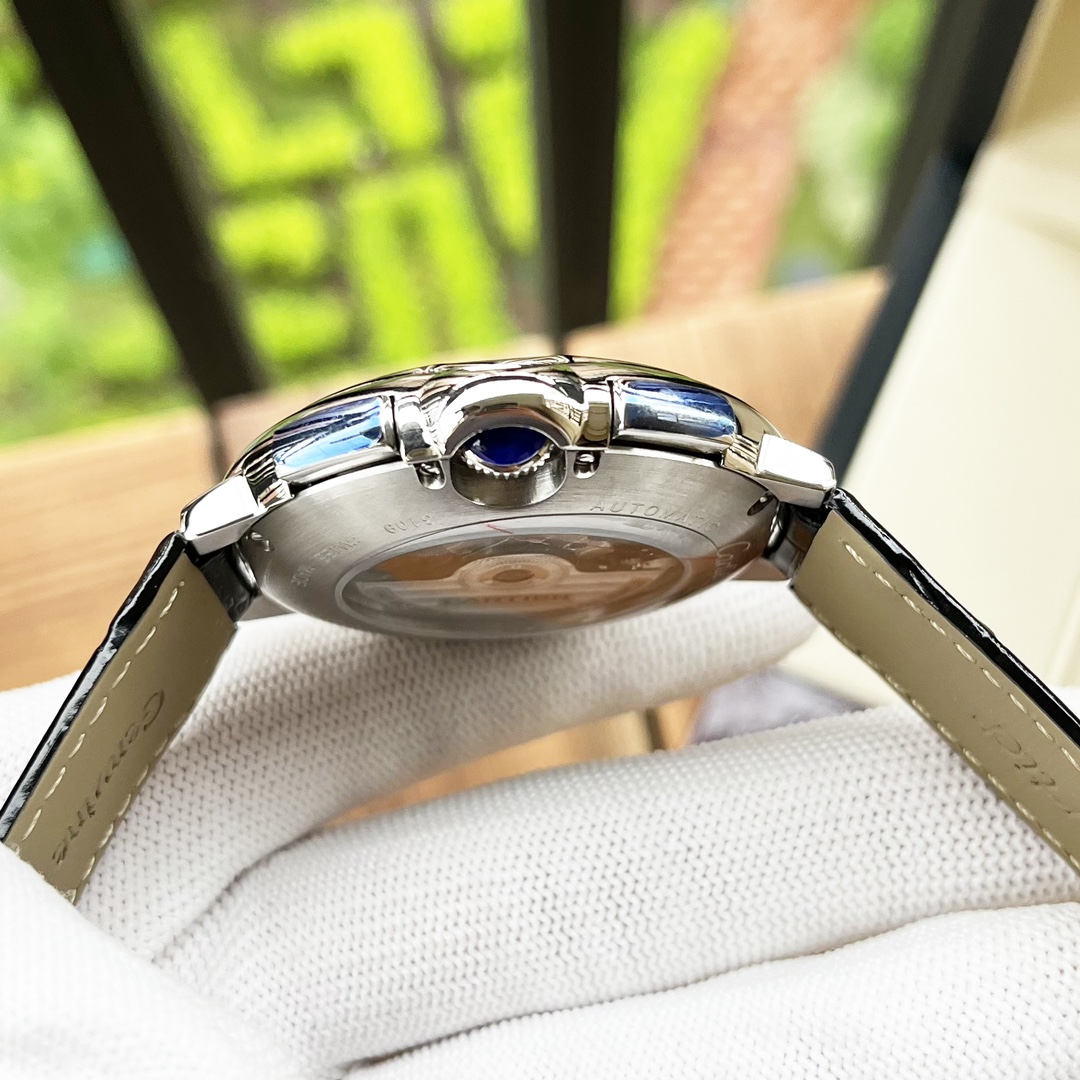 这款手表是AAAAA 1:1 质量 (非常棒). 使用了和原版一模一样的材料. 商标部分也保持了和卡地亚/Cartier一样. 图片拍摄是实物手表拍摄, 您所收到的实物保证和我们图片一模一样.