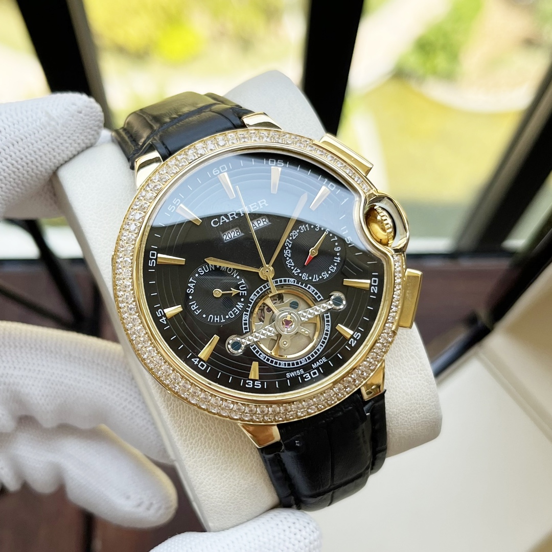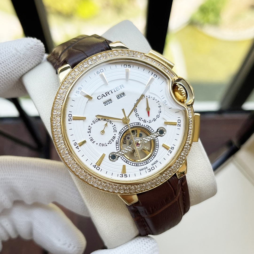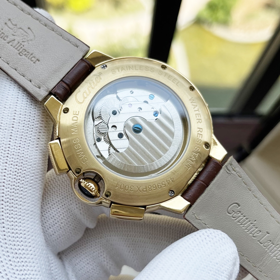 这款手表是AAAAA 1:1 质量 (非常棒). 使用了和原版一模一样的材料. 商标部分也保持了和卡地亚/Cartier一样. 图片拍摄是实物手表拍摄, 您所收到的实物保证和我们图片一模一样.
