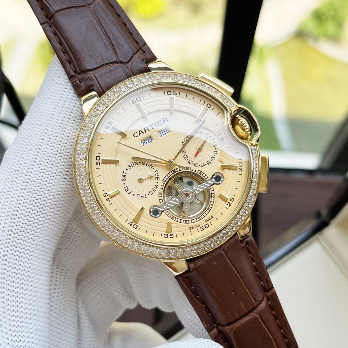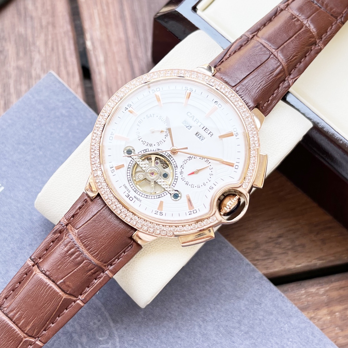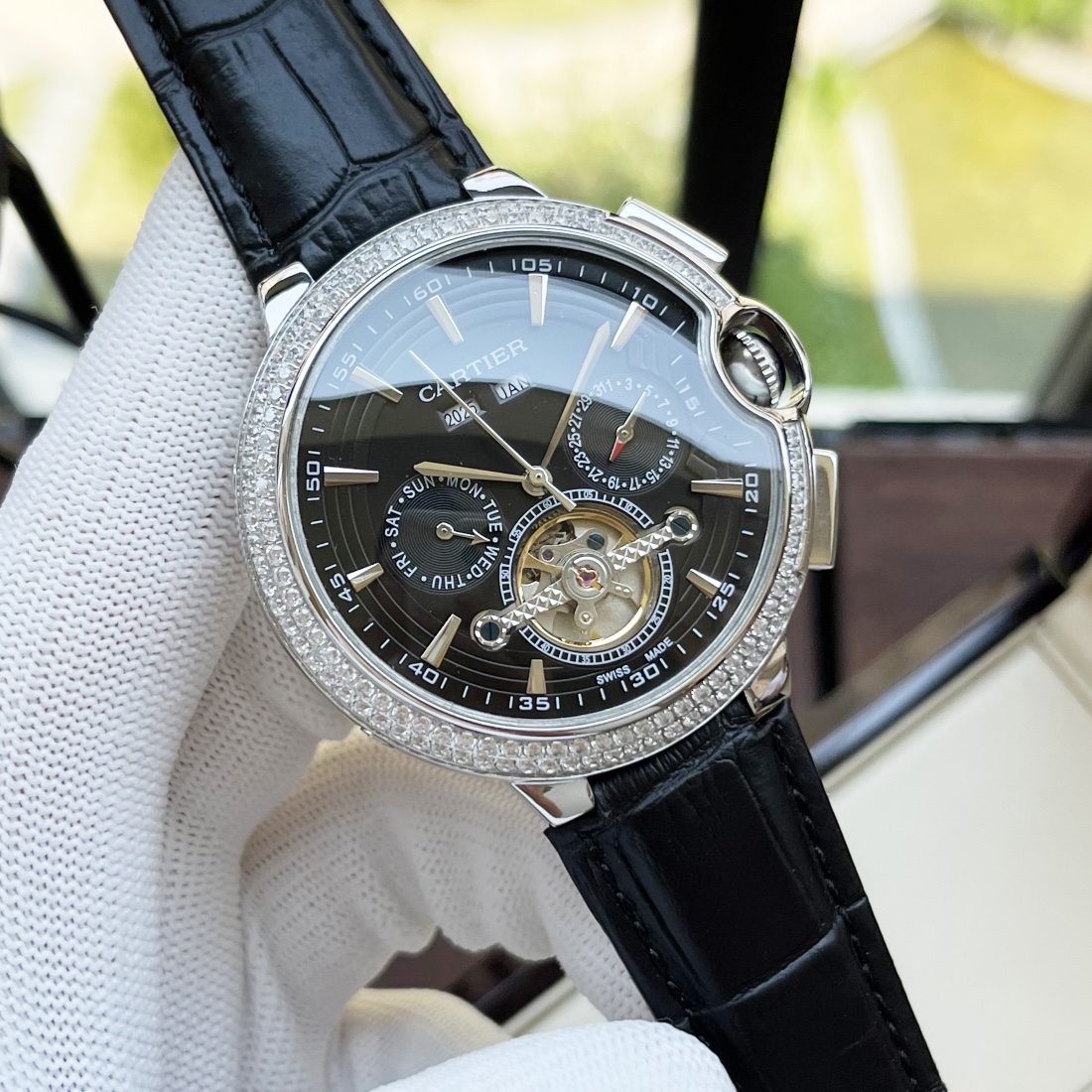 这款手表是AAAAA 1:1 质量 (非常棒). 使用了和原版一模一样的材料. 商标部分也保持了和卡地亚/Cartier一样. 图片拍摄是实物手表拍摄, 您所收到的实物保证和我们图片一模一样.