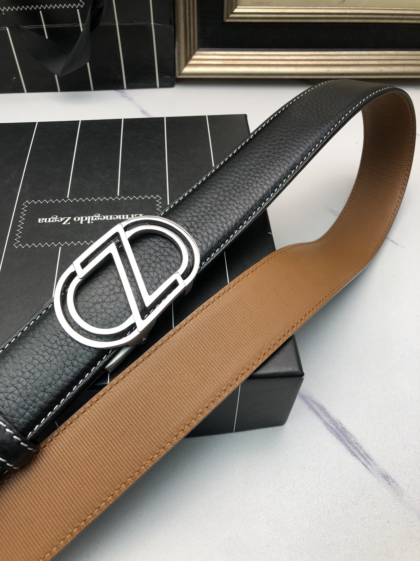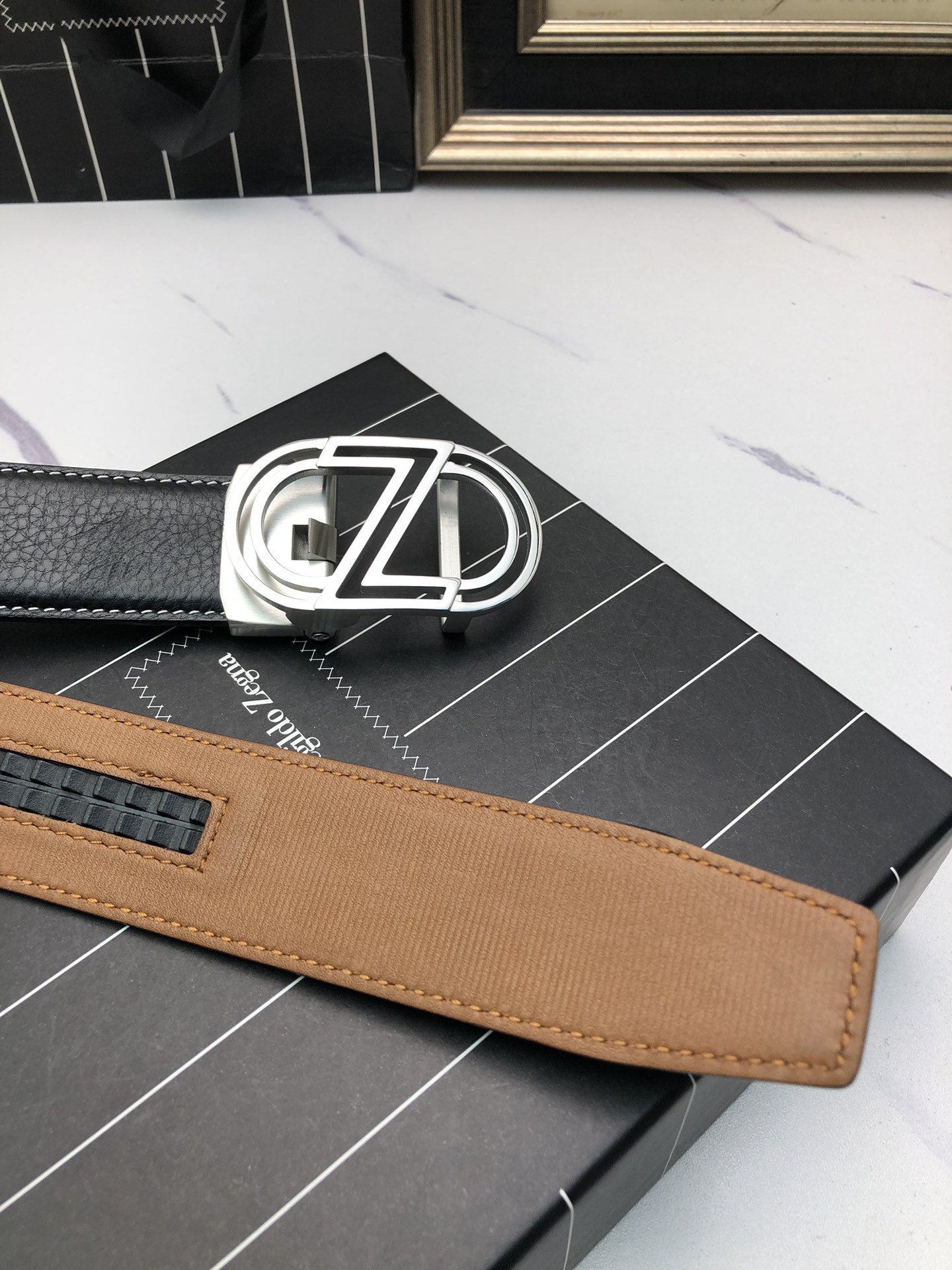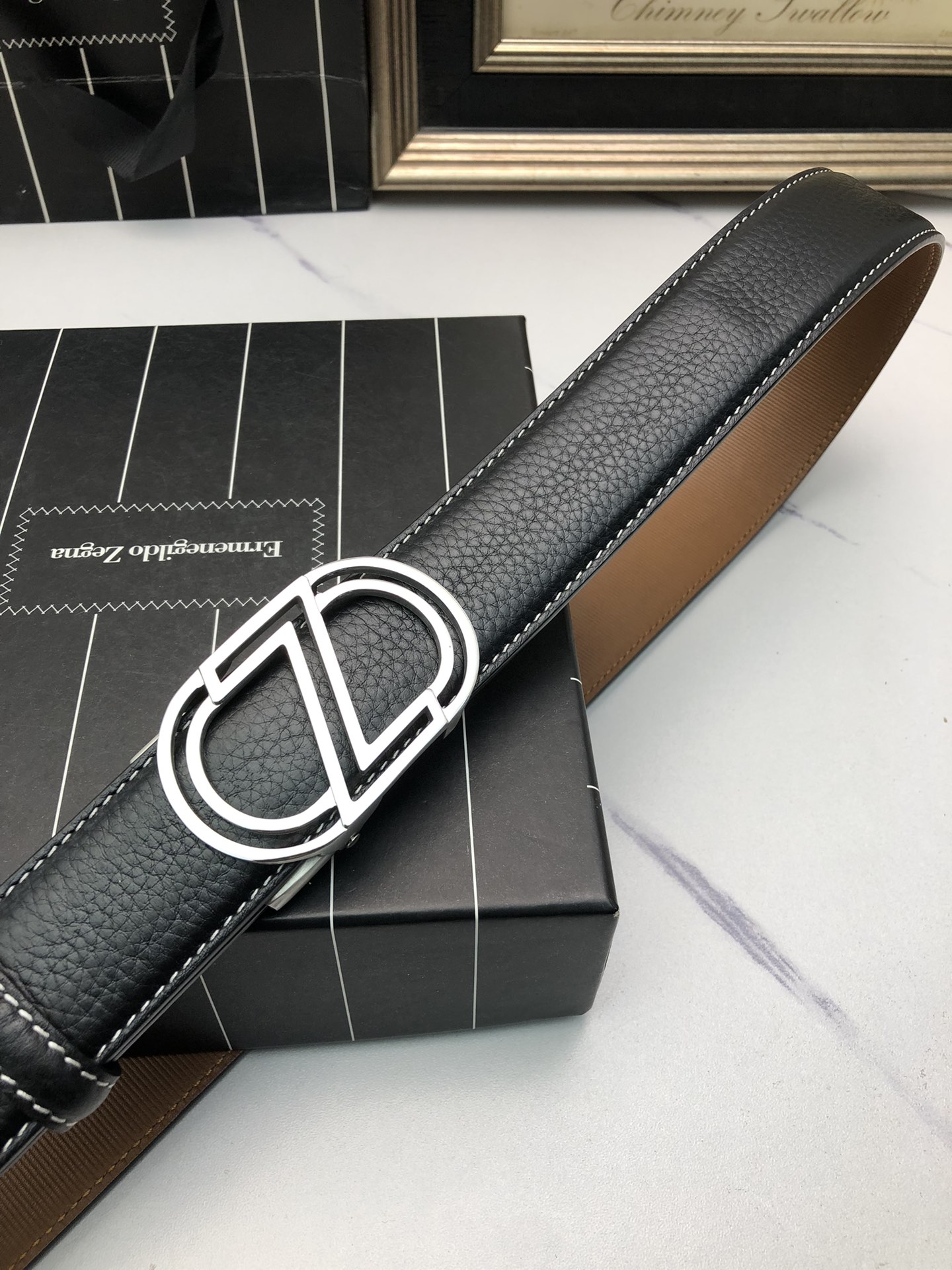 这款皮带是AAAAA 1:1 质量 (非常棒). 使用了和原版一模一样的材料. 商标部分也保持了和杰尼亚/Zegna一样. 图片拍摄是实物皮带拍摄, 您所收到的实物保证和我们图片一模一样.
