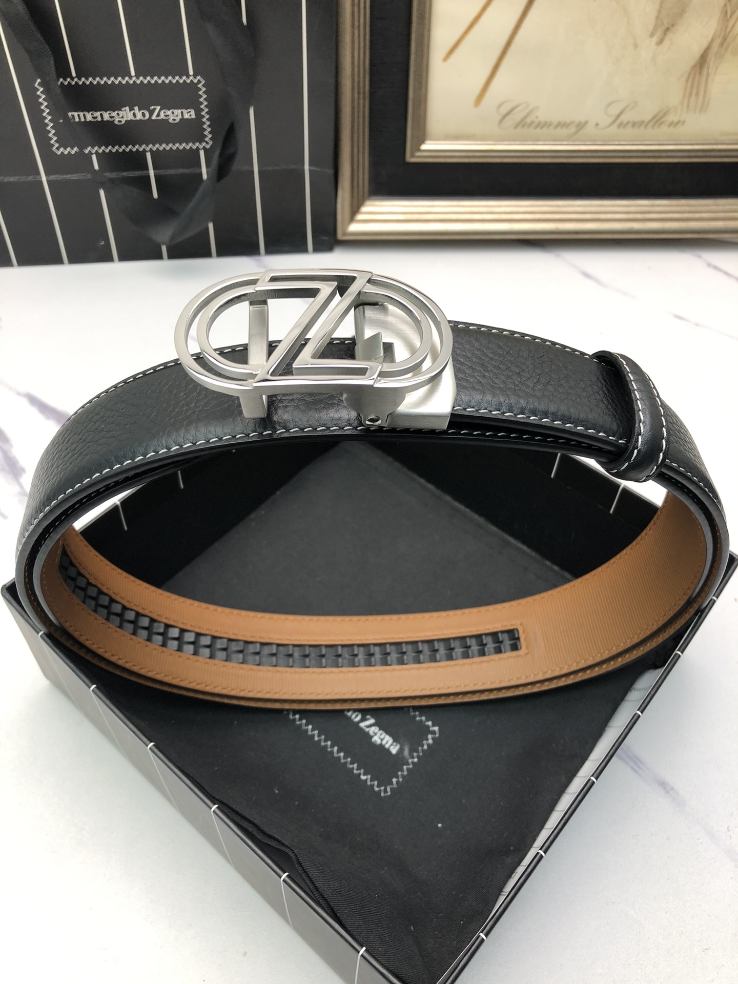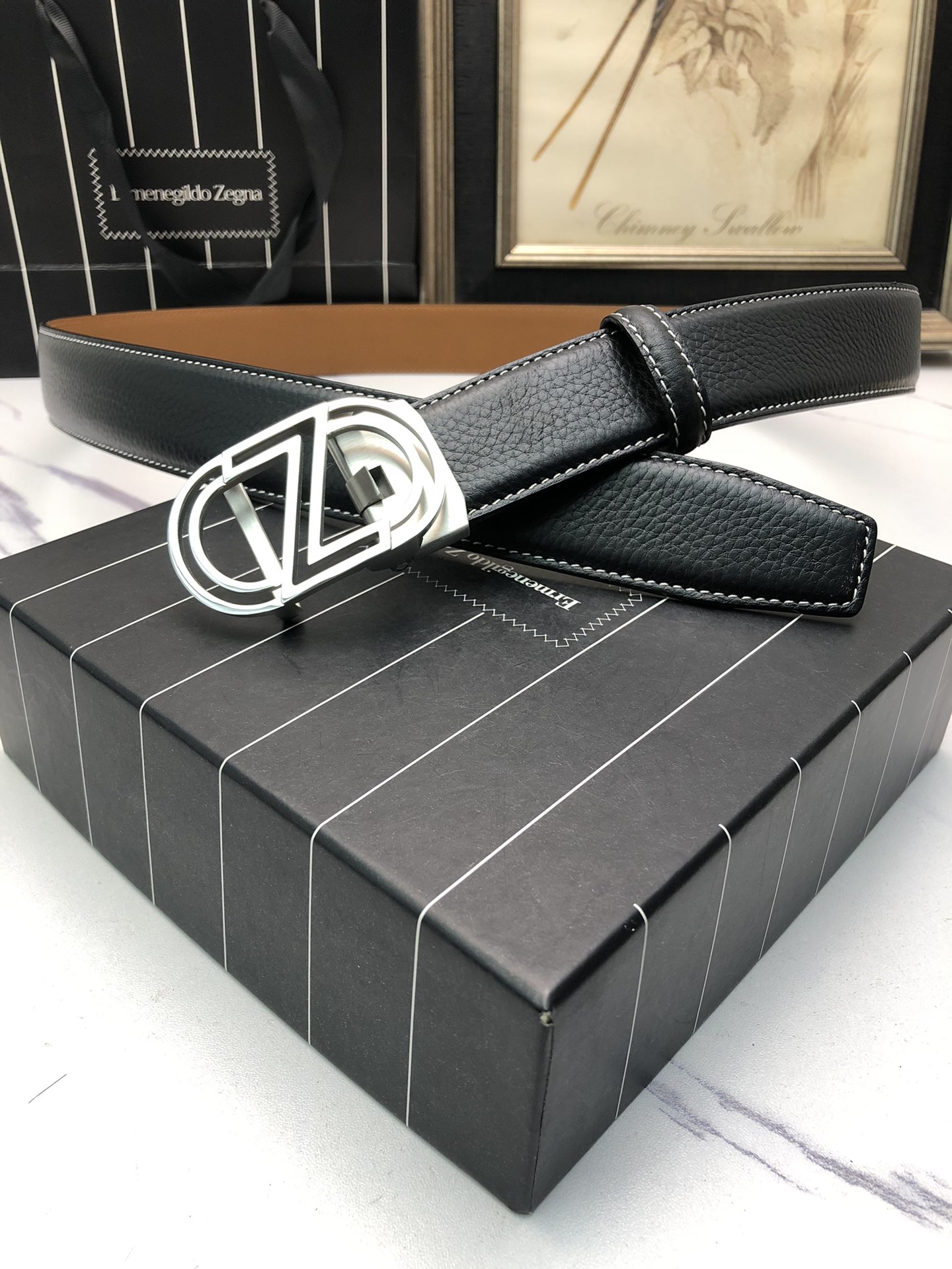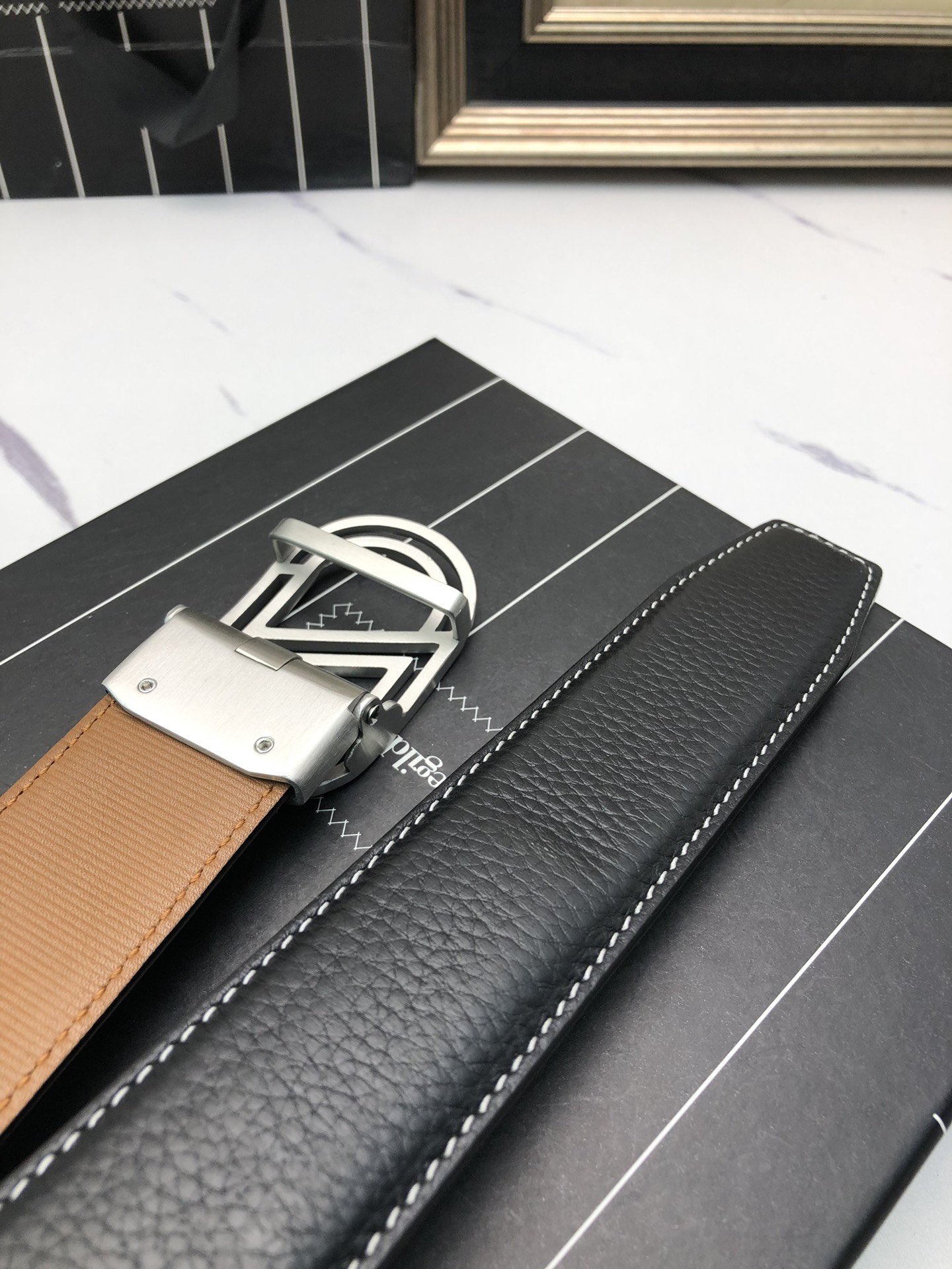 这款皮带是AAAAA 1:1 质量 (非常棒). 使用了和原版一模一样的材料. 商标部分也保持了和杰尼亚/Zegna一样. 图片拍摄是实物皮带拍摄, 您所收到的实物保证和我们图片一模一样.