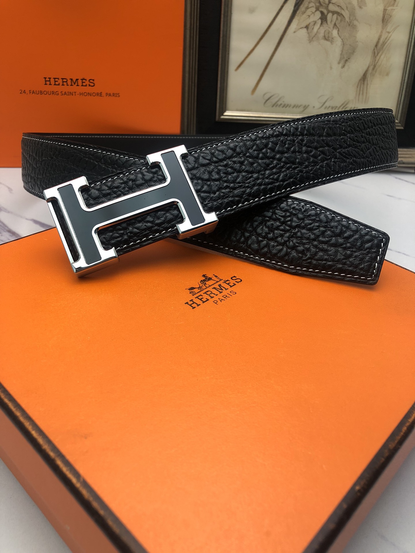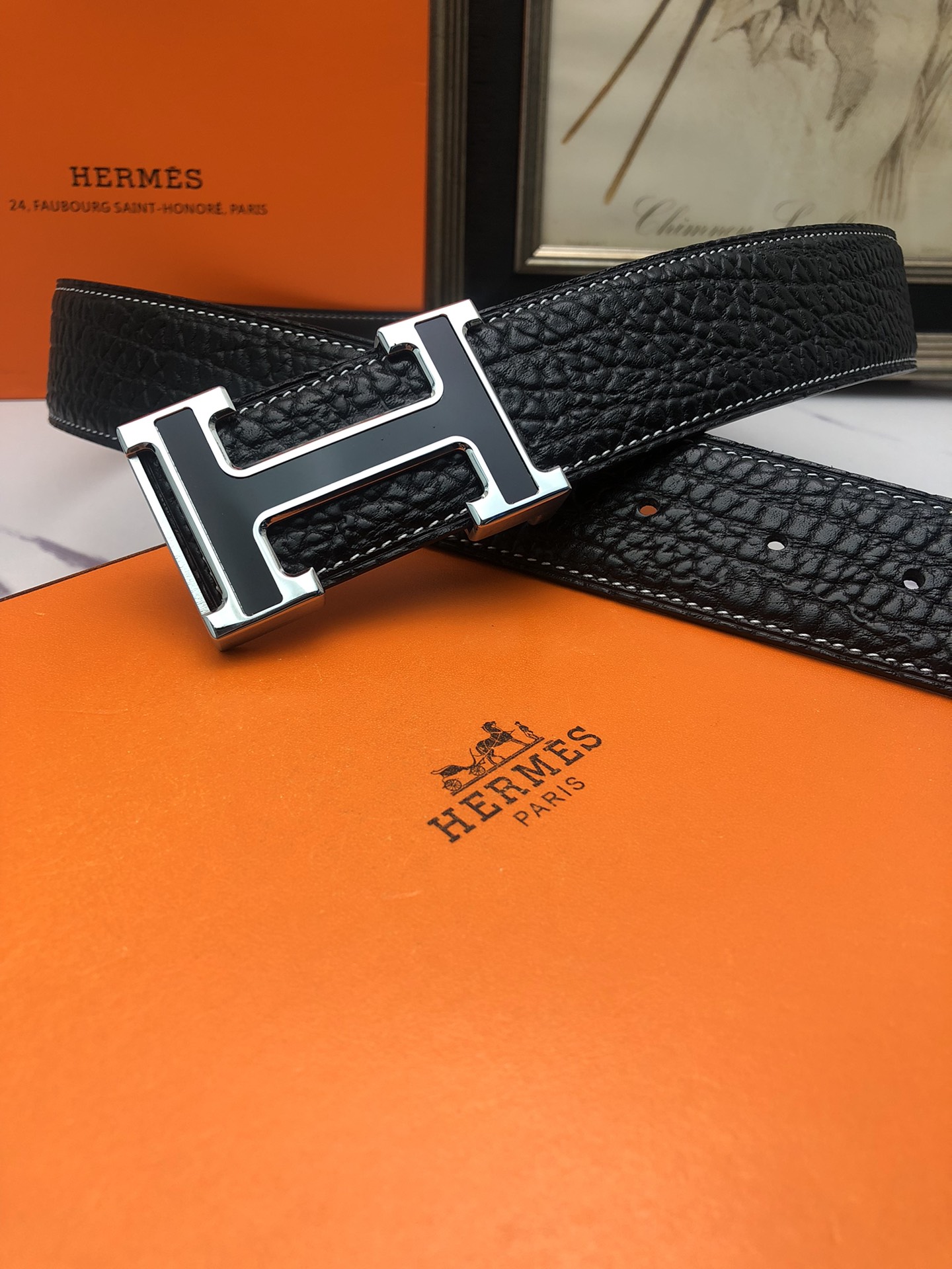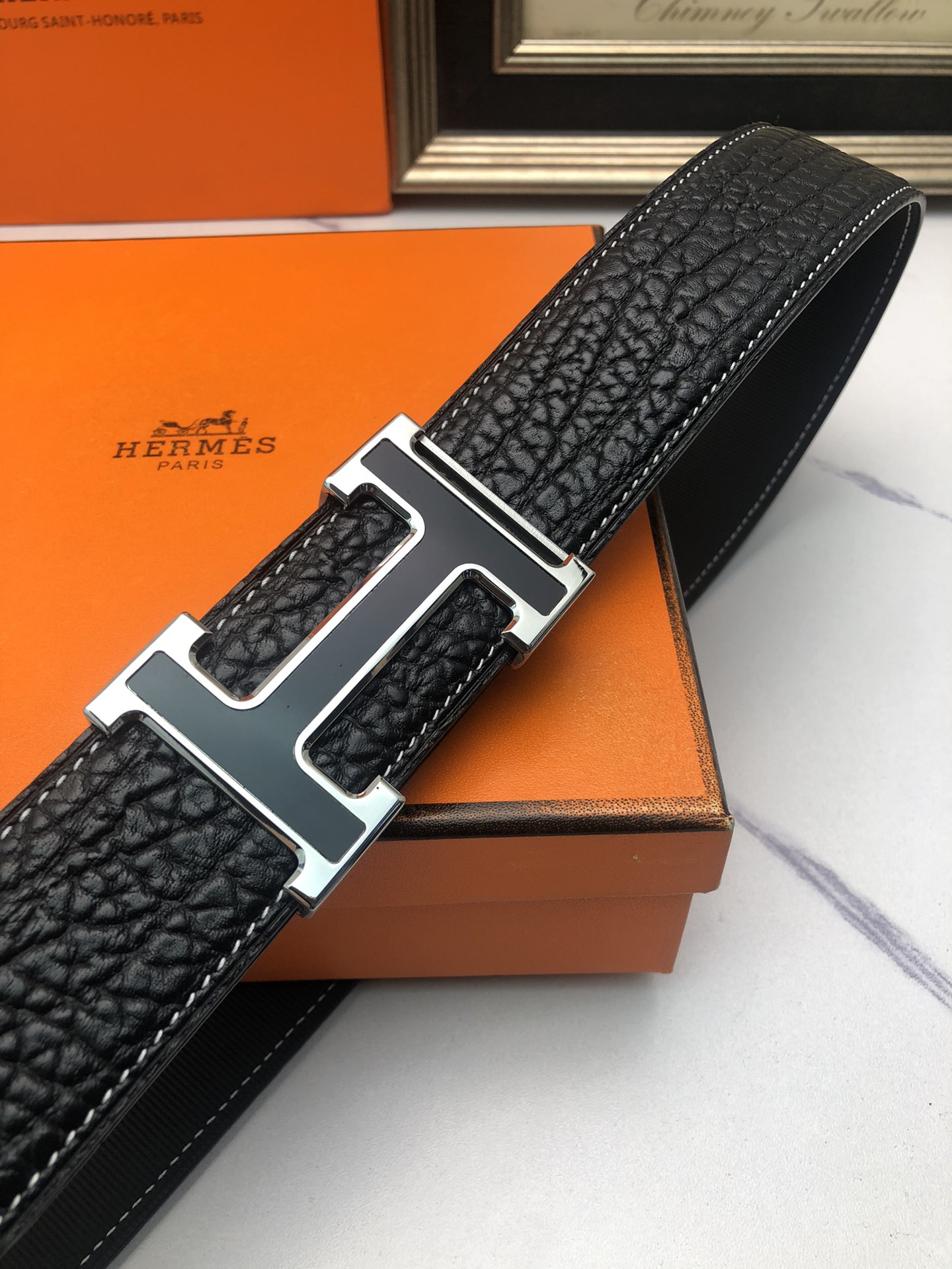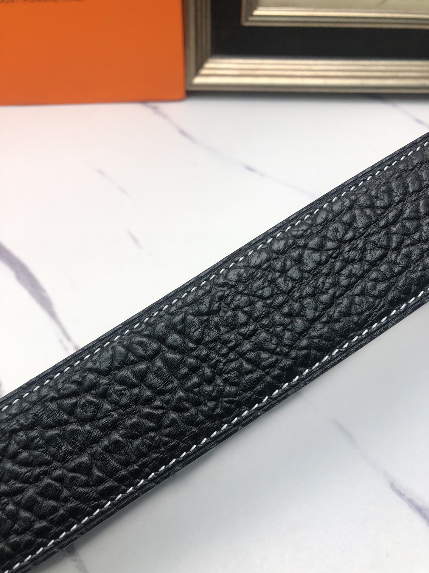 这款皮带是AAAAA 1:1 质量 (非常棒). 使用了和原版一模一样的材料. 商标部分也保持了和爱马仕/Hermes一样. 图片拍摄是实物皮带拍摄, 您所收到的实物保证和我们图片一模一样.