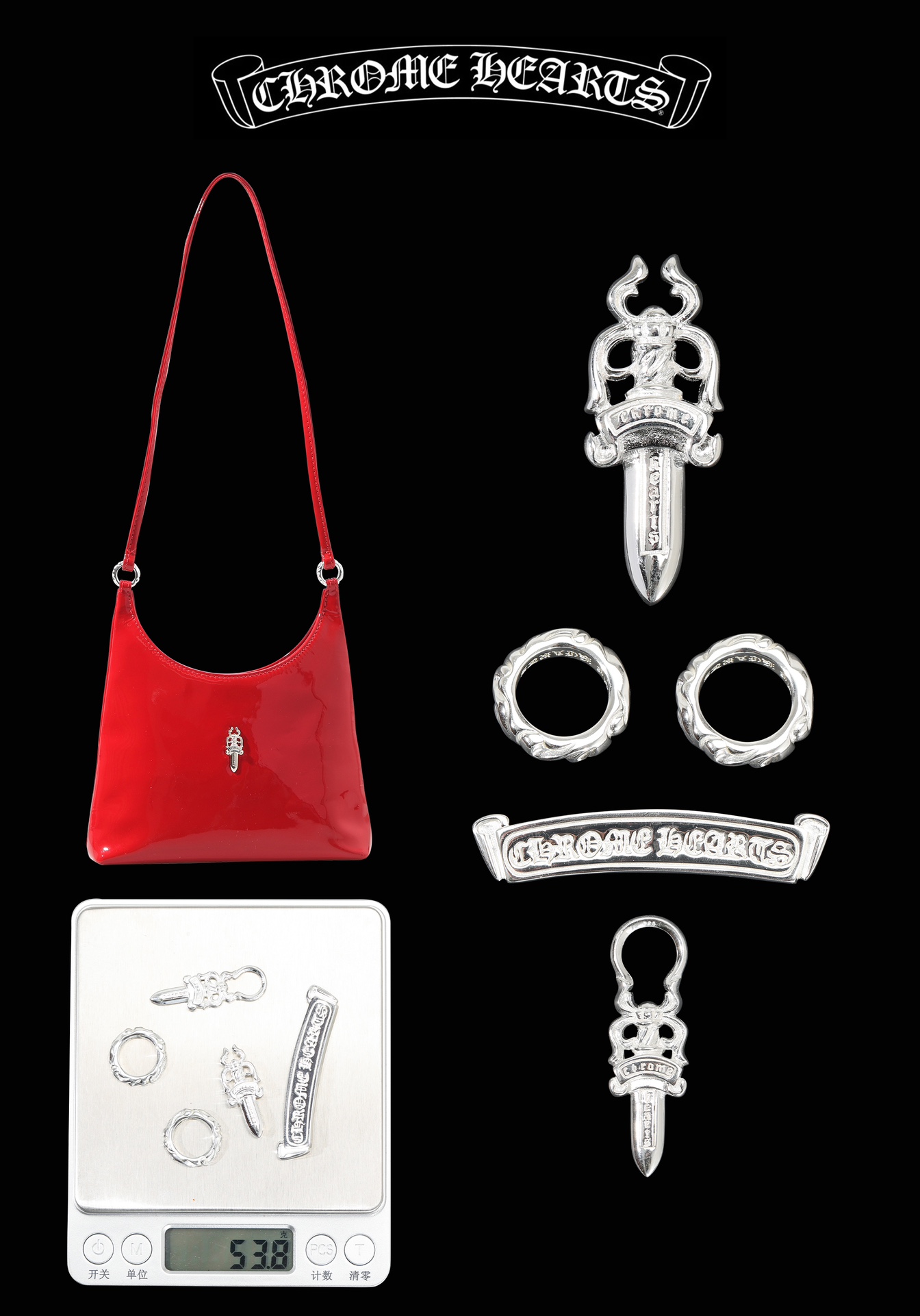 这款包包是AAAAA 1:1 质量 (非常棒). 使用了和原版一模一样的材料. 商标部分也保持了和克罗心/Chrome Hearts一样. 图片拍摄是实物包包拍摄, 您所收到的实物保证和我们图片一模一样.
