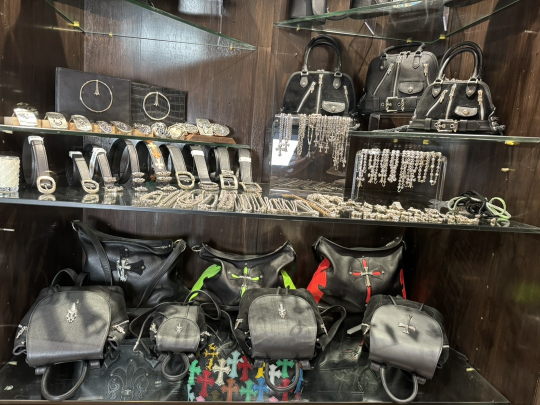这款包包是AAAAA 1:1 质量 (非常棒). 使用了和原版一模一样的材料. 商标部分也保持了和克罗心/Chrome Hearts一样. 图片拍摄是实物包包拍摄, 您所收到的实物保证和我们图片一模一样.