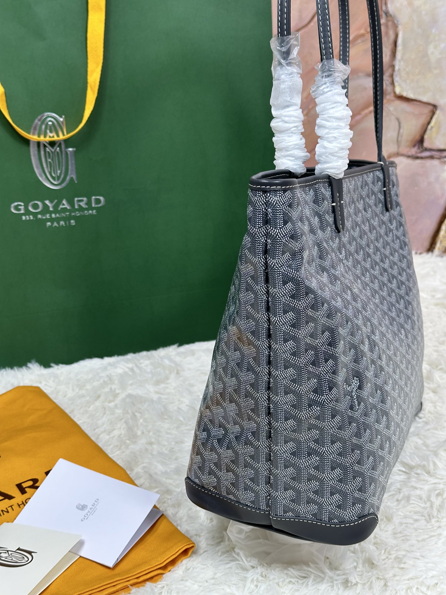 这款包包是AAAAA 1:1 质量 (非常棒). 使用了和原版一模一样的材料. 商标部分也保持了和Goyard一样. 图片拍摄是实物包包拍摄, 您所收到的实物保证和我们图片一模一样.