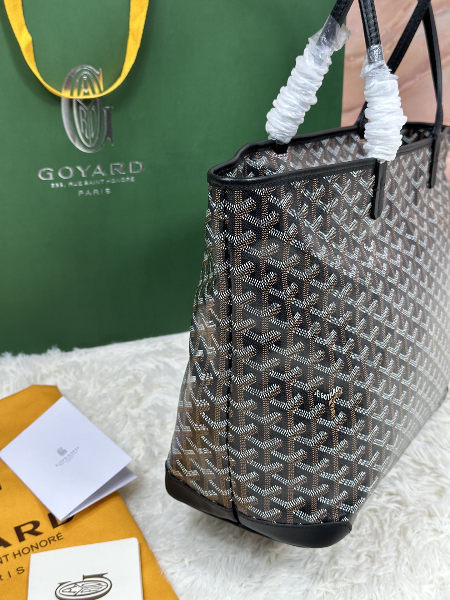 这款包包是AAAAA 1:1 质量 (非常棒). 使用了和原版一模一样的材料. 商标部分也保持了和Goyard一样. 图片拍摄是实物包包拍摄, 您所收到的实物保证和我们图片一模一样.