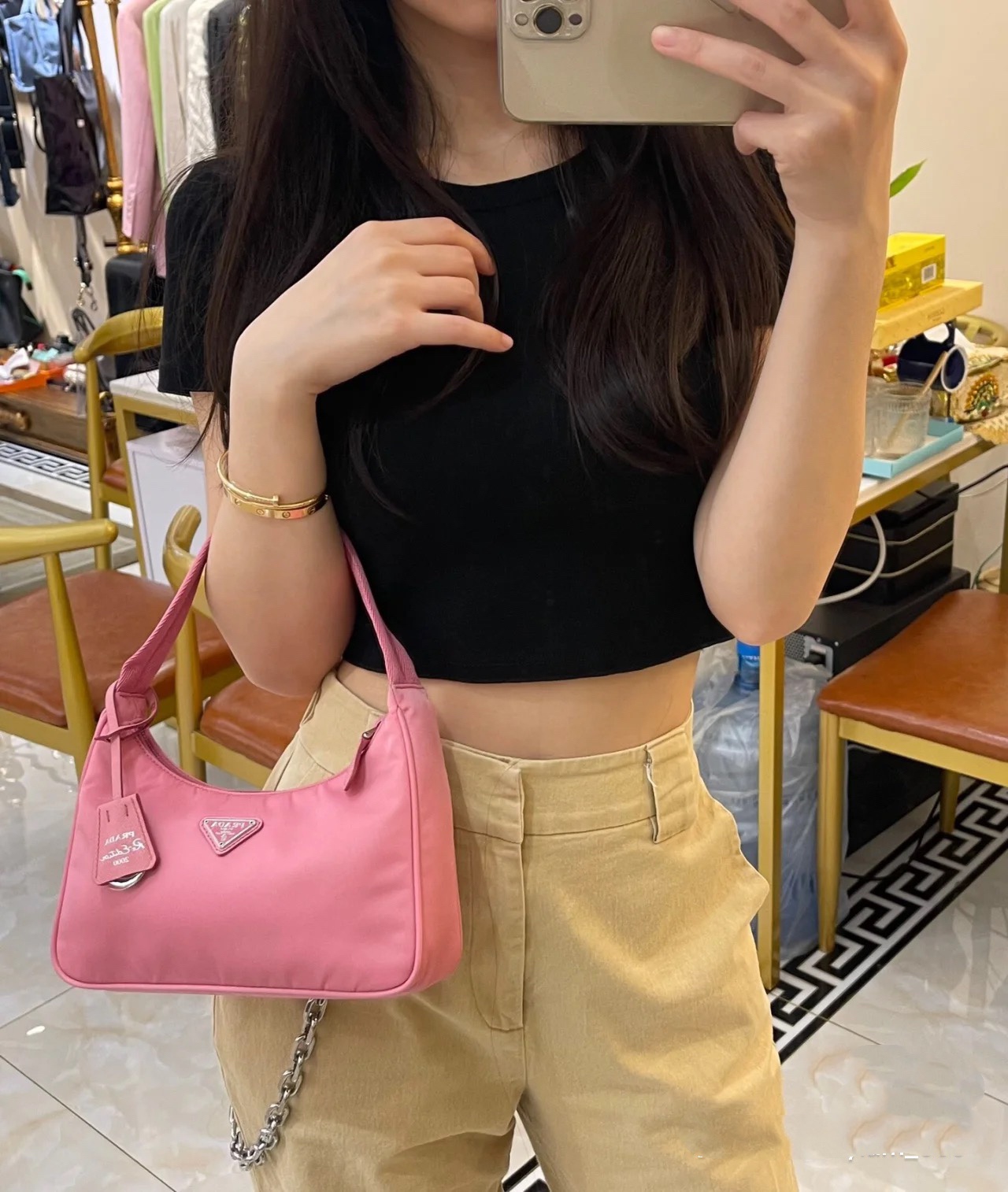 这款包包是AAAAA 1:1 质量 (非常棒). 使用了和原版一模一样的材料. 商标部分也保持了和普拉达/Prada一样. 图片拍摄是实物包包拍摄, 您所收到的实物保证和我们图片一模一样.