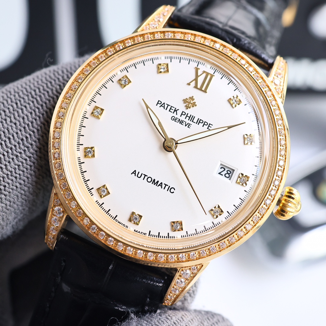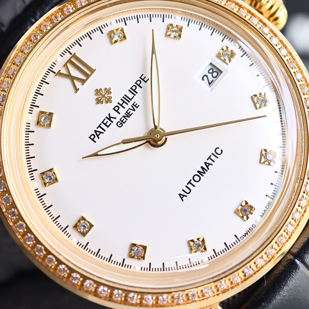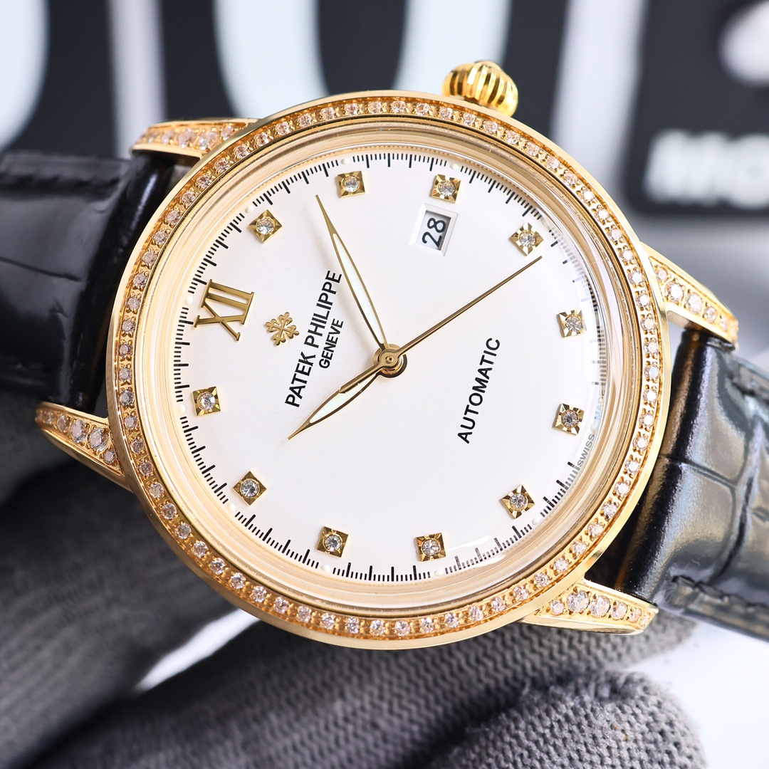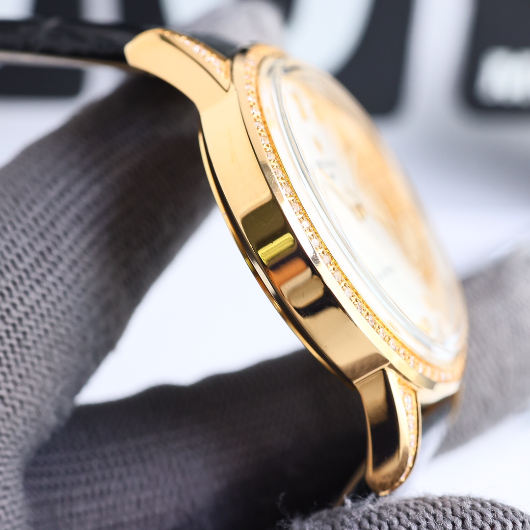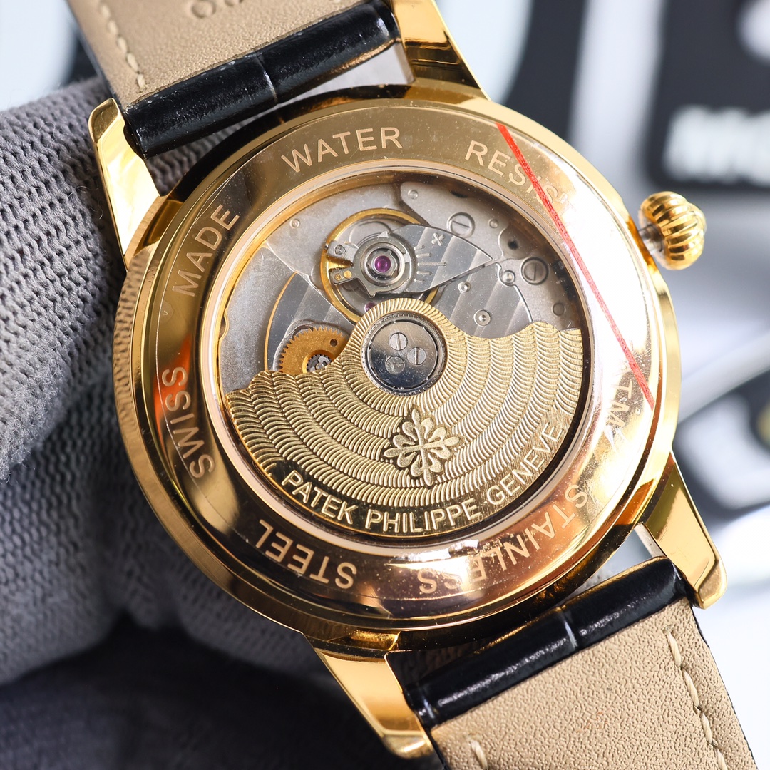 这款手表是AAAAA 1:1 质量 (非常棒). 使用了和原版一模一样的材料. 商标部分也保持了和百达翡丽/Patek Philippe一样. 图片拍摄是实物手表拍摄, 您所收到的实物保证和我们图片一模一样.